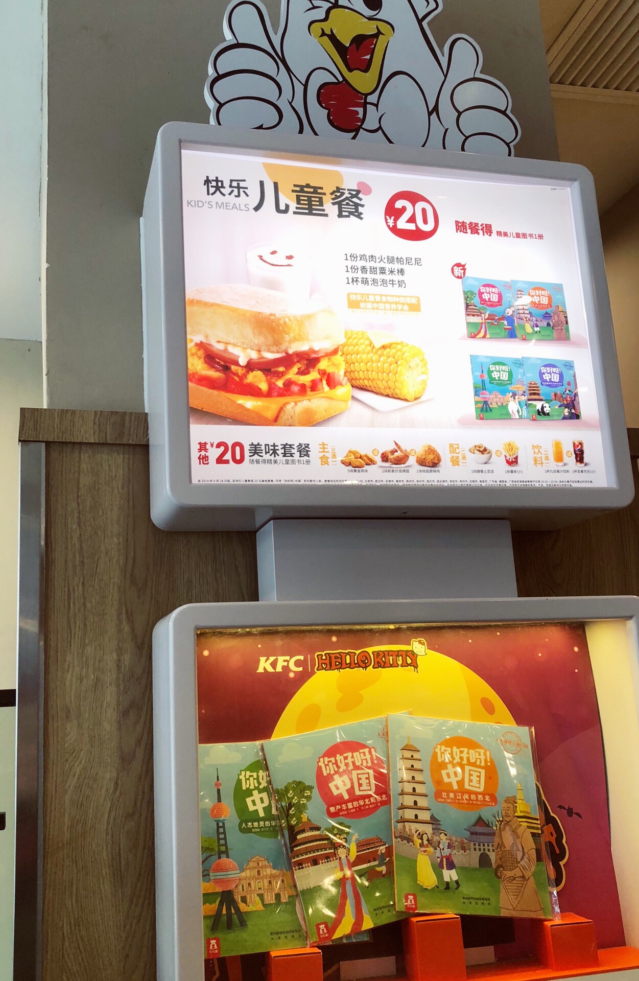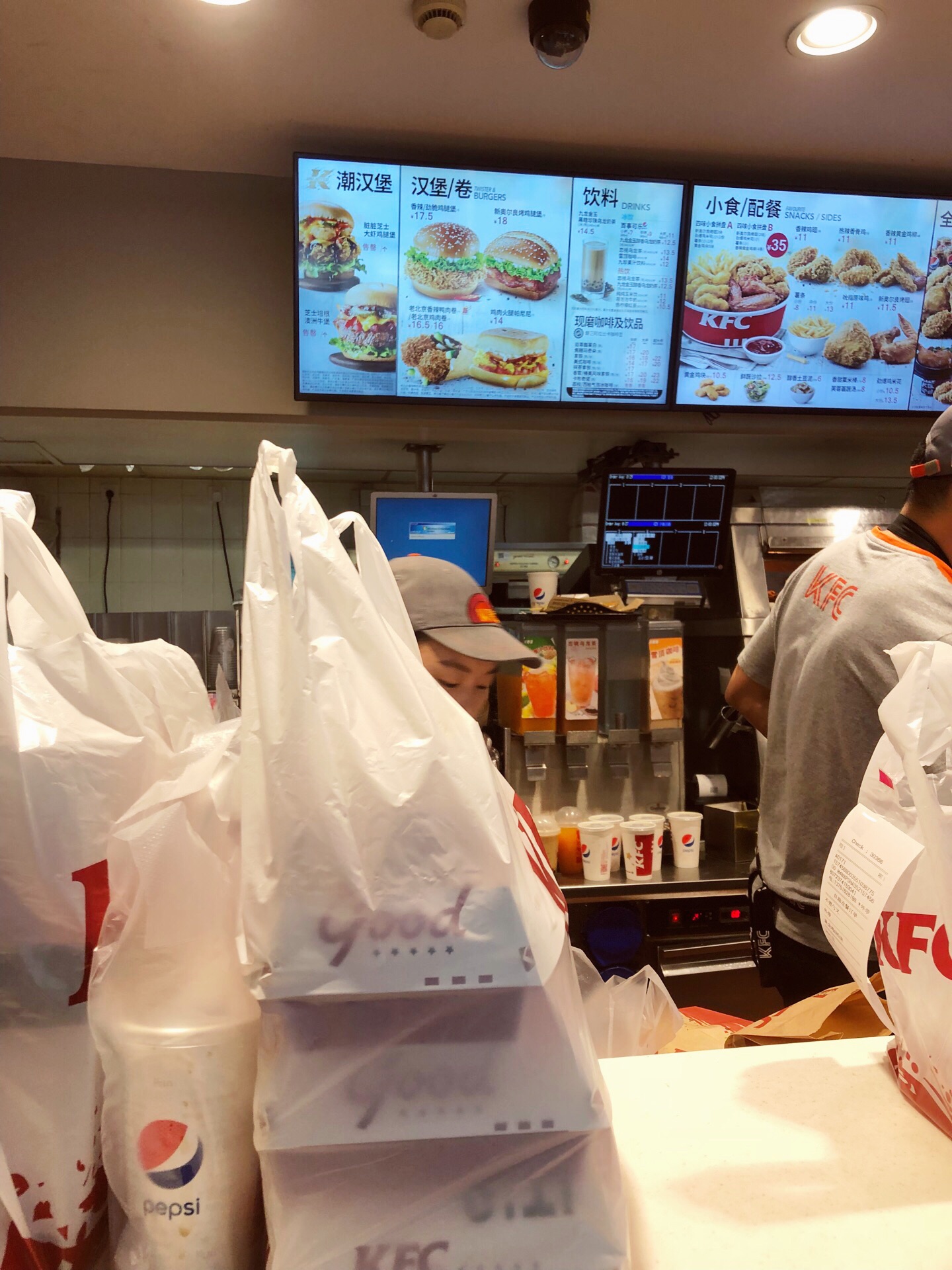 昌平路上的肯德基实在生意火爆,可能由于周边都是学校的缘故,中午吃饭根本没有座位,午饭时间有限,等位基本也是不可能的,只能自助点餐,套餐36元起随心配,劲脆鸡腿堡+鸡柳条+蛋挞+可乐,小朋友爱吃就行了。