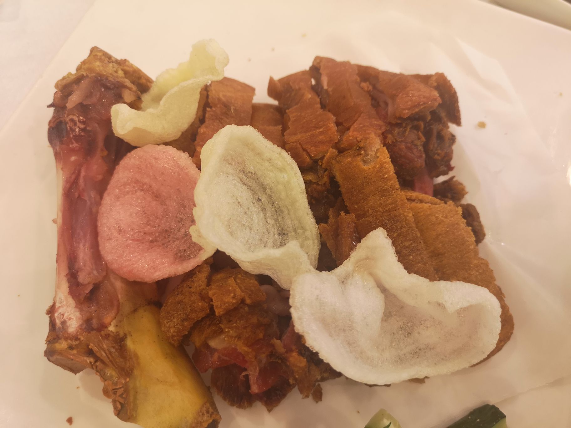 网友2019-11-24...,烧鹅皮算比较脆,肉质还算可以,胡椒虾我觉得不错,胡椒味道比较浓郁,酸菜鱼份量比较少味道一般般朱仔记算是比较老牌的粤菜餐厅,以前一直吃的是礼岗那边的店,这次换去革新路这家。一般我都爱吃招牌咸猪手,烧鹅皮算比较脆,肉质还算可以,胡椒虾我觉得不错,胡椒味道比较浓郁,酸菜鱼份量比较少味道一般般。