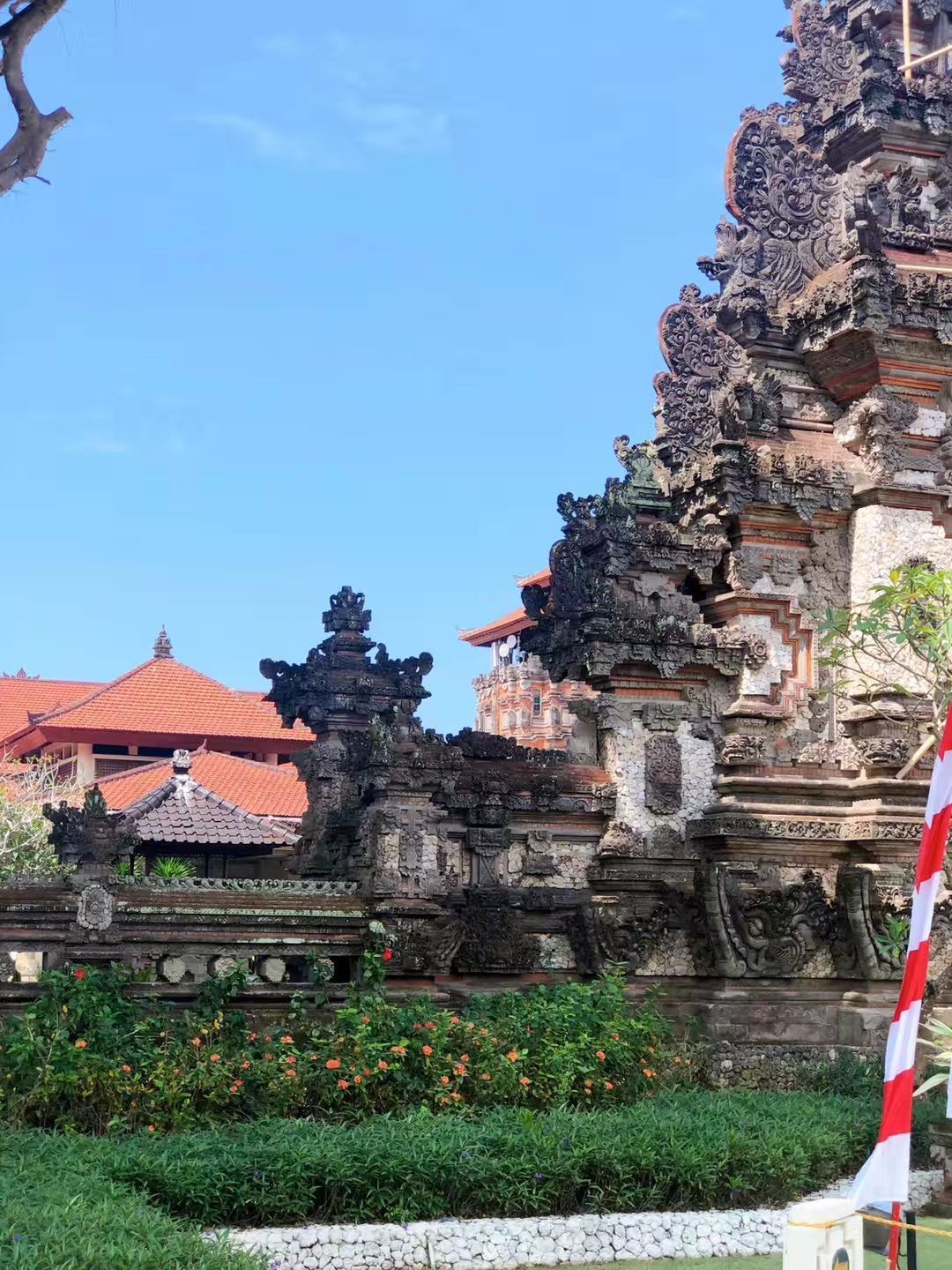 第二次到巴厘岛,一共住了4家酒店,这个是第三家,从旁边的Inaya hotel搬到这家Nusa Dua Beach Hotel。同样的,也是在海边,出来就是沙滩,酒店的东南亚风情更浓厚一些,工作人员都非常细心,每天下午在泳池边上喝杯酒,感觉非常的爽。