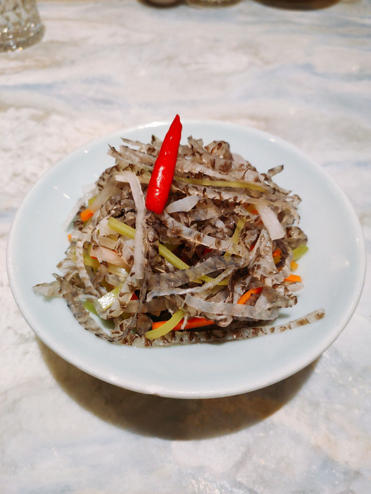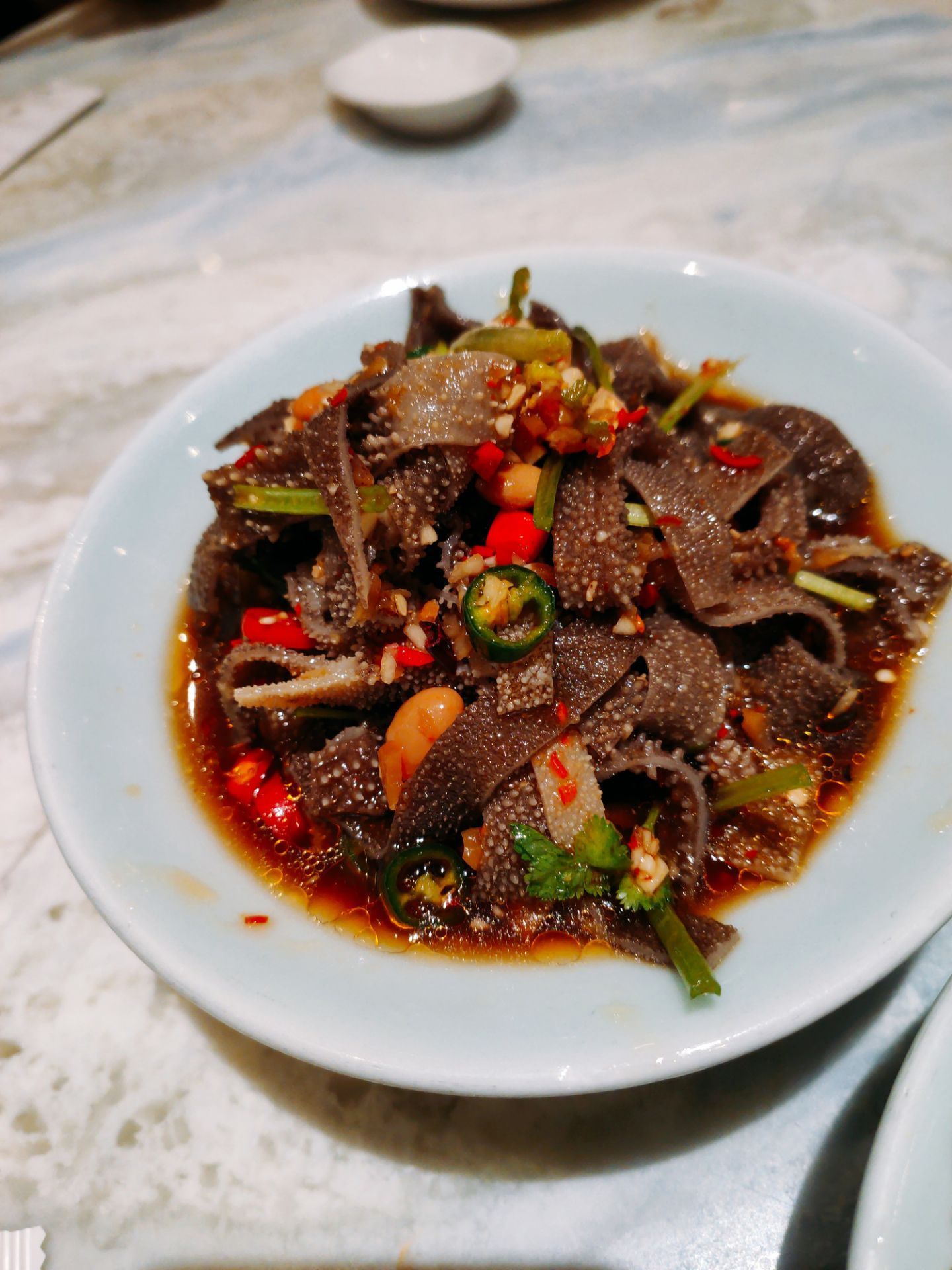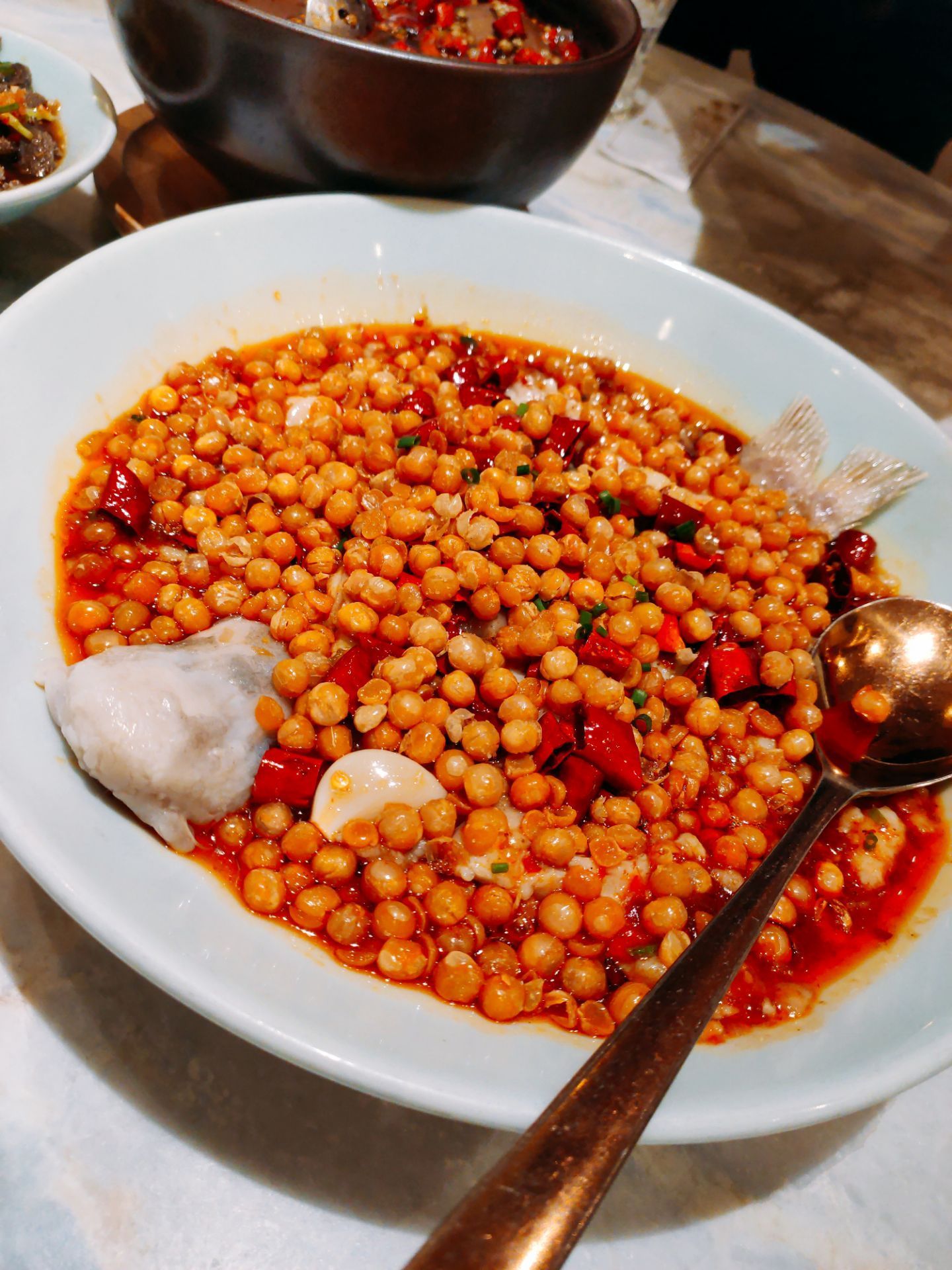 气温高台跳水的日子里,川菜是一种很好的选择。位于国金的这家金孔雀川菜环境高雅,白色与金色为主色调的装潢改变了我脑中对川菜馆的印象。重庆飘香豌豆江团是他家的招牌之一。鲜嫩的江团隐藏在金黄酥脆的黄豆之下,鱼肉很入味,也不会散开,没有刺。吃一口鱼肉,嚼几颗黄豆,不失为下班后的一种享受。腊八豆荷包蛋,看似家常,但还真没吃过。荷包蛋被切成一块块,配以腊八豆,别有一番风味。这家的菜还有个特点就是量都很足。比如毛血旺,大大的一碗,里面有鳝背,腰花,鱿鱼等等,底下是血,午餐肉,莴笋,全都是实实在在的食材,味道鲜香浓郁。另外点的几个菜也都不错,无一踩雷,吃完整个人热乎乎的,带着满足回家了。