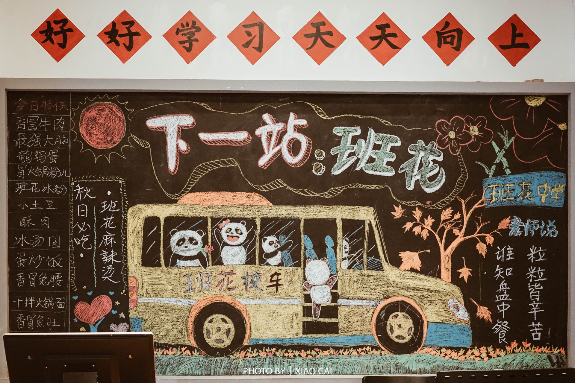 班花麻辣烫|成都最逼真校园风麻辣烫 成都今年似乎特别流行复古风,但把春夏记忆装扮还原的如此逼真的,班花是第一家。 店名:班花麻辣烫(太古里总店) 人均:65/人 位置:东大街下东大街段41号 交通:地铁2/3号线春熙路站E2口步行约600m 营业时间:11:00-次日2:00 店内的陈设满满都是学生时代的记忆:教室、新华字典、黑板报、小卖部、图书馆、宿舍...每个场景都还原的非常生动,就连服务员全都是穿得校服…吃个麻辣烫的时间,感觉硬是吧青春都重走了一遍。 【推荐菜】 1⃣️特色牛肉。首推,他们家牛肉的品种太多了!建议都可以试试,个人最喜欢的是薄荷和苹果口味的。 2⃣️班花酸奶。口感很棒,在一个奶瓶里,真的太可爱!麻辣烫后,来一瓶酸奶养养胃再适合不过。 还有特色脑花、麻辣兔头、冰汤圆、黄辣丁全都是心头爱。 【排队】正饭点的一一定记得提前排号! 【服务】服务员态度都非常好,进门还会喊“欢迎新同学”太有意思了! 【适合】适合朋友三五人聚餐 【✨对比】和春熙路这边其他火锅店比起来,环境和口味都是亮点 【优惠】记得提前团代金券会更划算呀!!