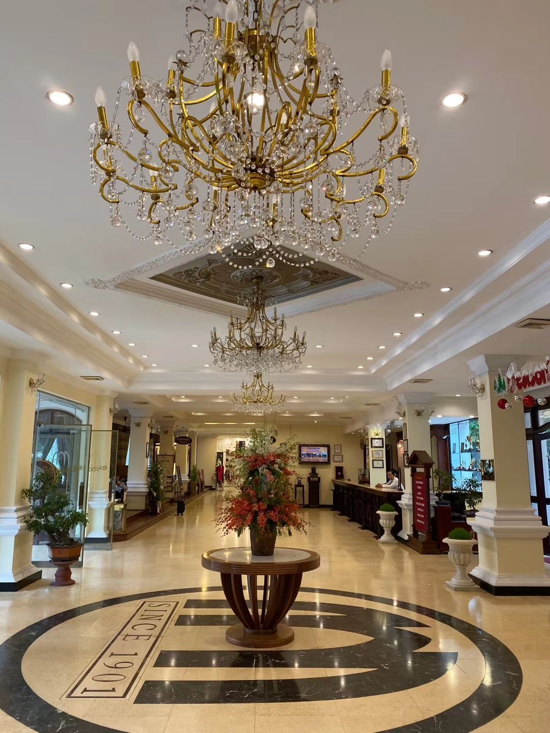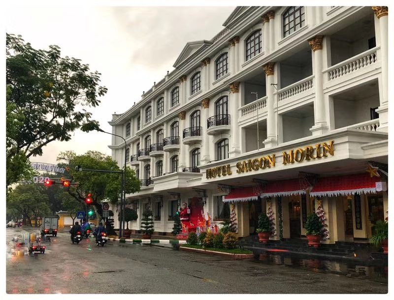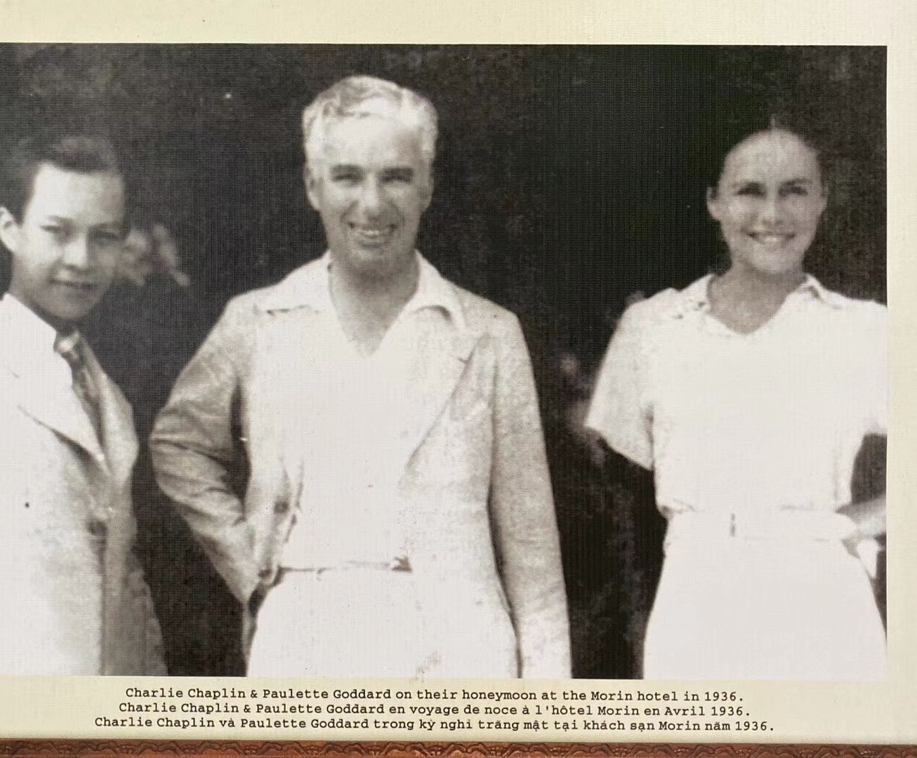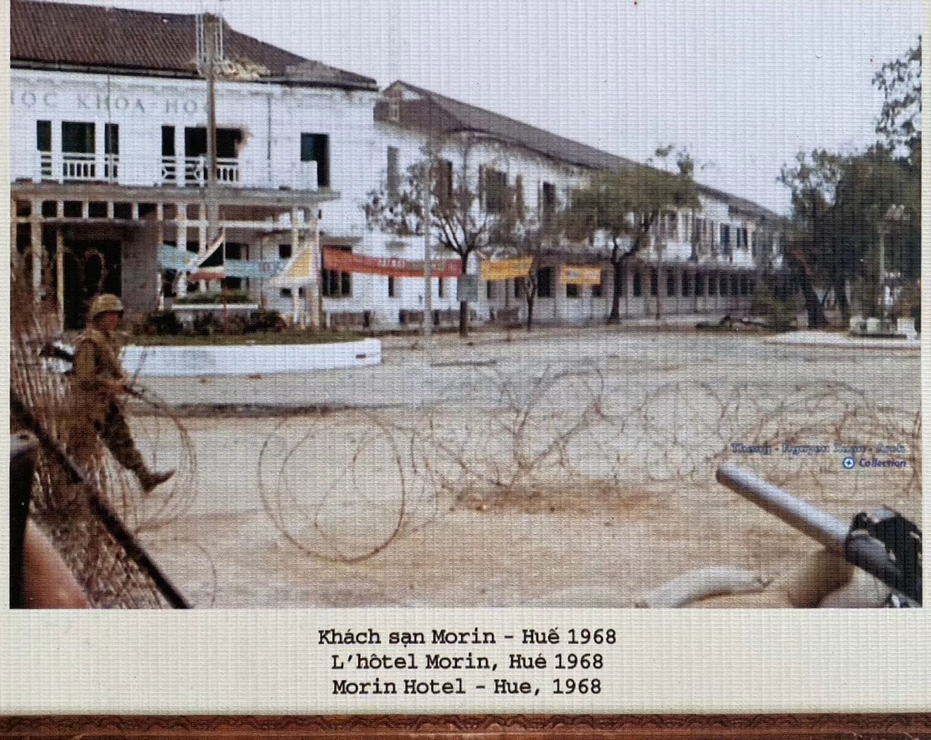 酒店历史:图1:酒店第一和第二主人和酒店竣工时1901年的照片图2:酒店第三主人Morin,也是酒店名字至今的由来,图3:Morin家族5个孩子,图4:1936年卓别林跟新婚太太来顺化度蜜月住在这里的照片,图5-6:战争期间酒店前成为战场,图7-8:刚拍摄的酒店外景和大堂