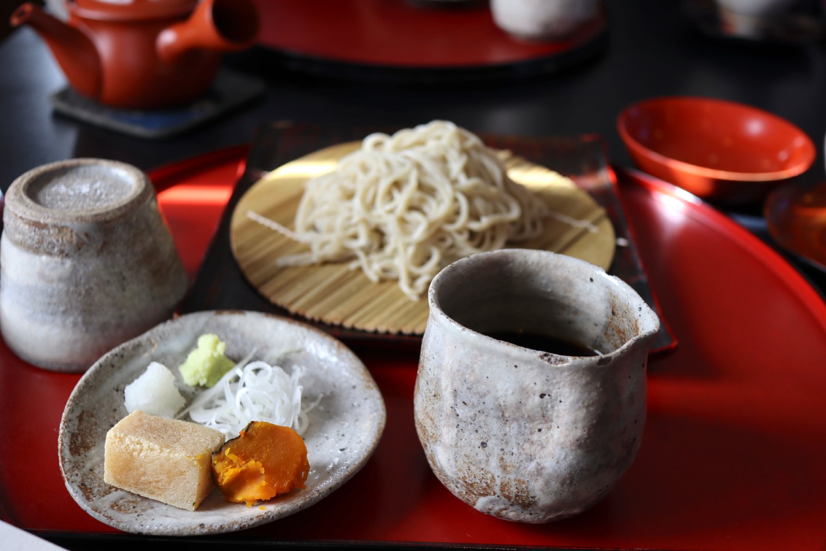 にしむら的小店,很有风情的两层小木屋,屋里有壁炉,小火苗烧得很欢实。 这家的荞麦是很素朴的好吃。滑溜溜的,不割喉咙,荞麦的香气非常真实。 餐前上了一道荞麦团子,糯糯的,一碾碎成渣渣。老社长说,诹访的山顶,一年四季都冷,种不了大米,以前人们以荞麦为食,会吃这样的荞麦团子。……很忆苦思甜了。 之后又上了一小碗蘑菇饭,和一碟小咸菜,米饭温温润润的,裹着蘑菇的酱汁,很香甜。然后是甜品,有栗子蛋糕,草莓蛋糕,布朗尼可以选,——这家的餐后甜点可太好吃了!用料扎实,栗子甜美又大颗,味道浓郁,甜度又恰到好处。 总之堪称完美的一家乡下小店!除了我没有看到价格是多少以外……想来应该不贵吧。