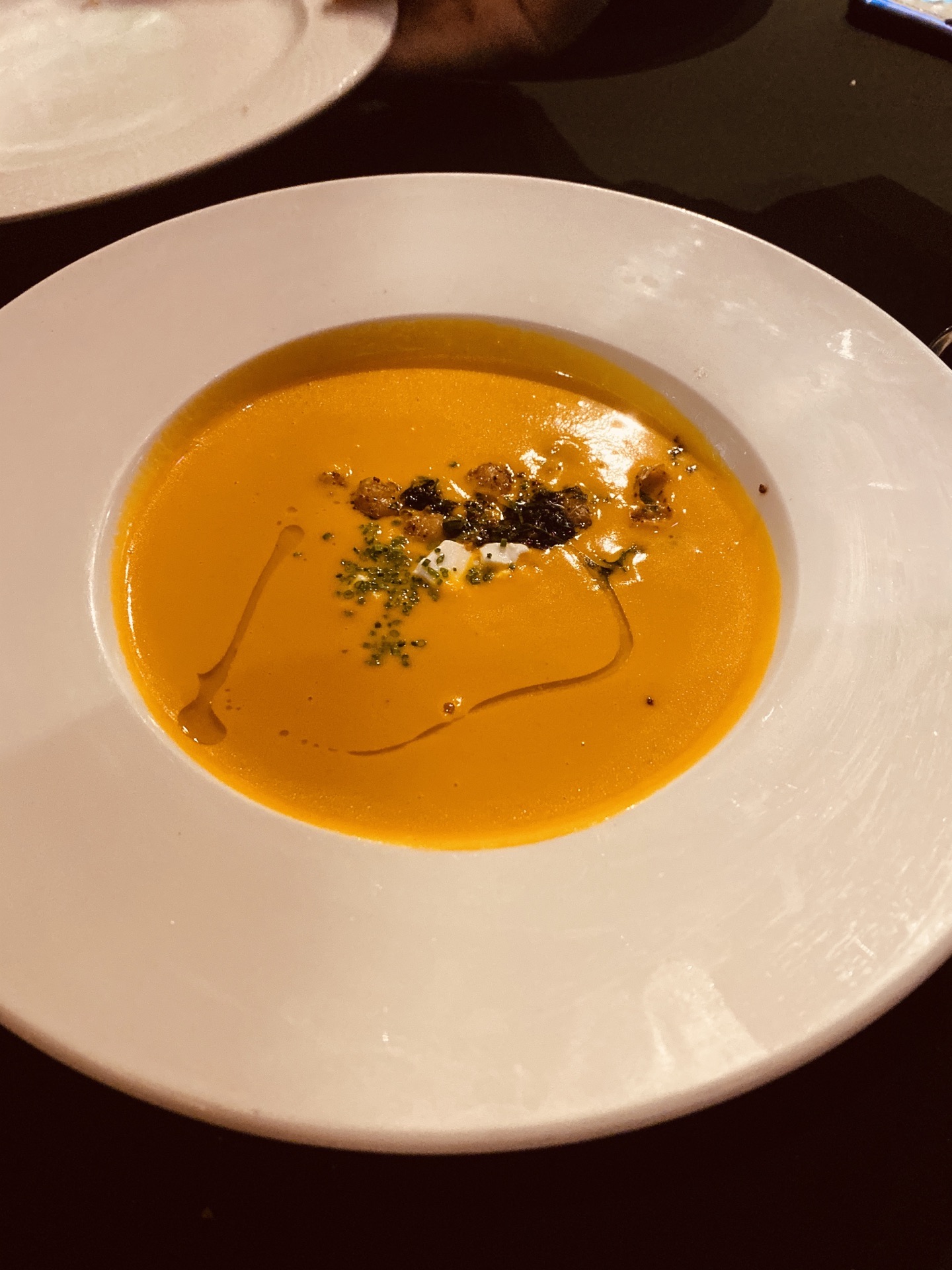 网友2019-11-27...的菜单,特别喜欢他们家的南瓜汤,小小的一碗,但是味道实在是太好吃了,奶油味很香甜,最好再来一份服务员很热情,有中文和英文的菜单,特别喜欢他们家的南瓜汤,小小的一碗,但是味道实在是太好吃了,奶油味很香甜,最好再来一份。