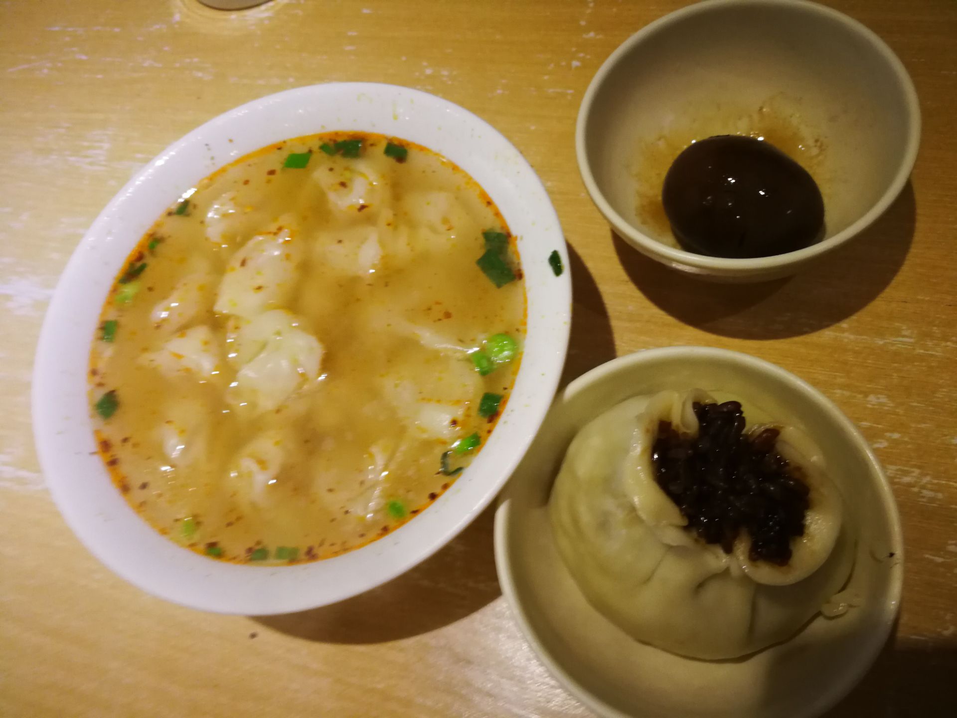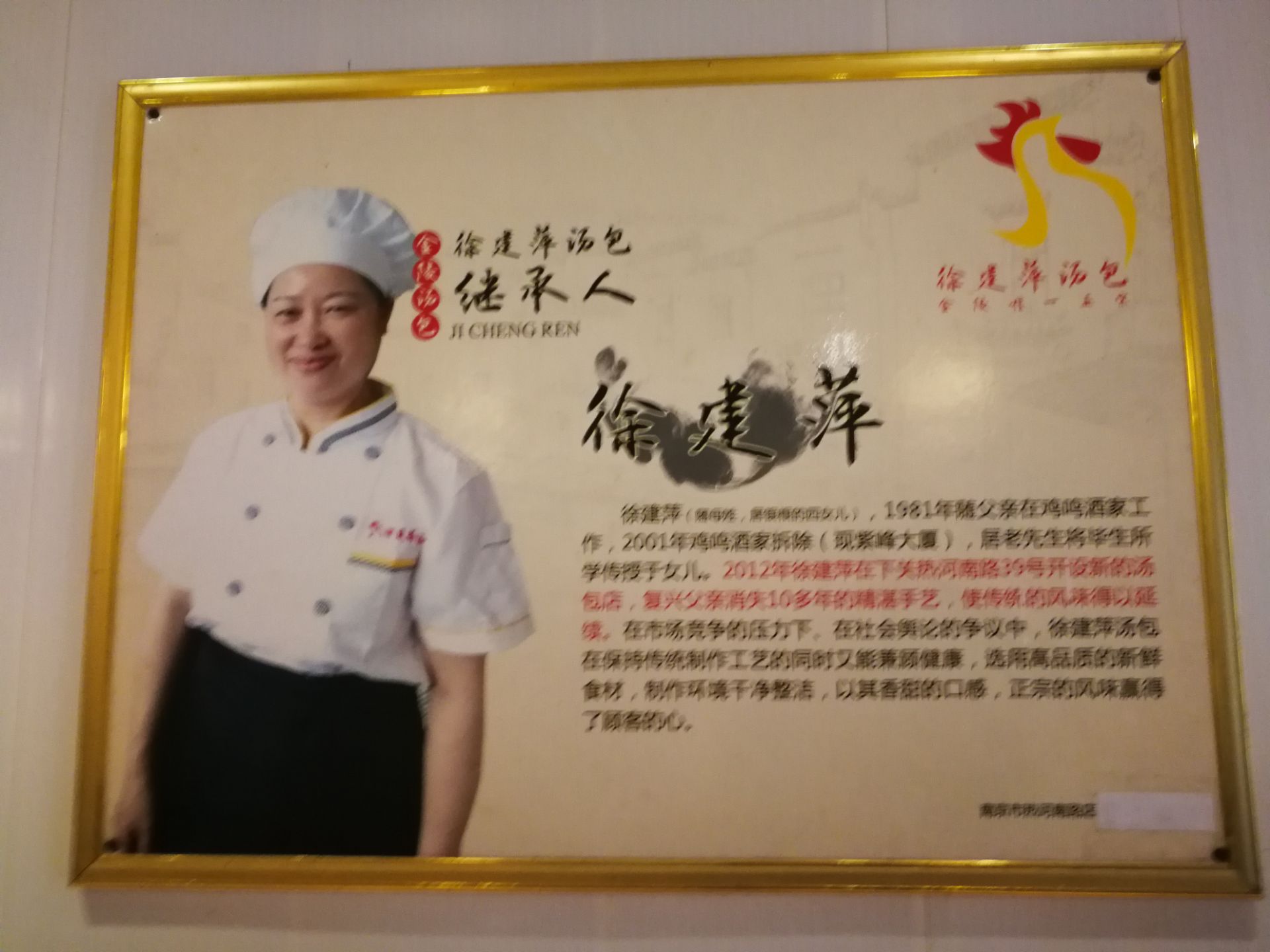 徐建萍汤包店的确是个老店,名气不小可是生意清淡不怎么好,非常出乎意料啊,于是我每个品种都买来尝尝,小笼汤包偏甜属于姑苏无锡口味,估计很多南京人吃不惯,其实江南小笼和老阳春的汤包就很好吃。他家烧卖4元一个,有肉末没肉丁,和善园烧卖2元一个每个都有一颗大肉丁。他家茶叶蛋2元一个口味一般,馄饨6元一碗正常。总体上来说没有特别亮眼吸引人的地方,难怪早上来没人。另外位置也很不好找,在一个菜场巷子里,所以只能做家门口生意。就餐位的排列也不舒服,都是面壁形式吃东西,看来守着老人的名气也必须动脑筋创新才行,否则不容易抓住食客的胃。慢慢就凋零啦。