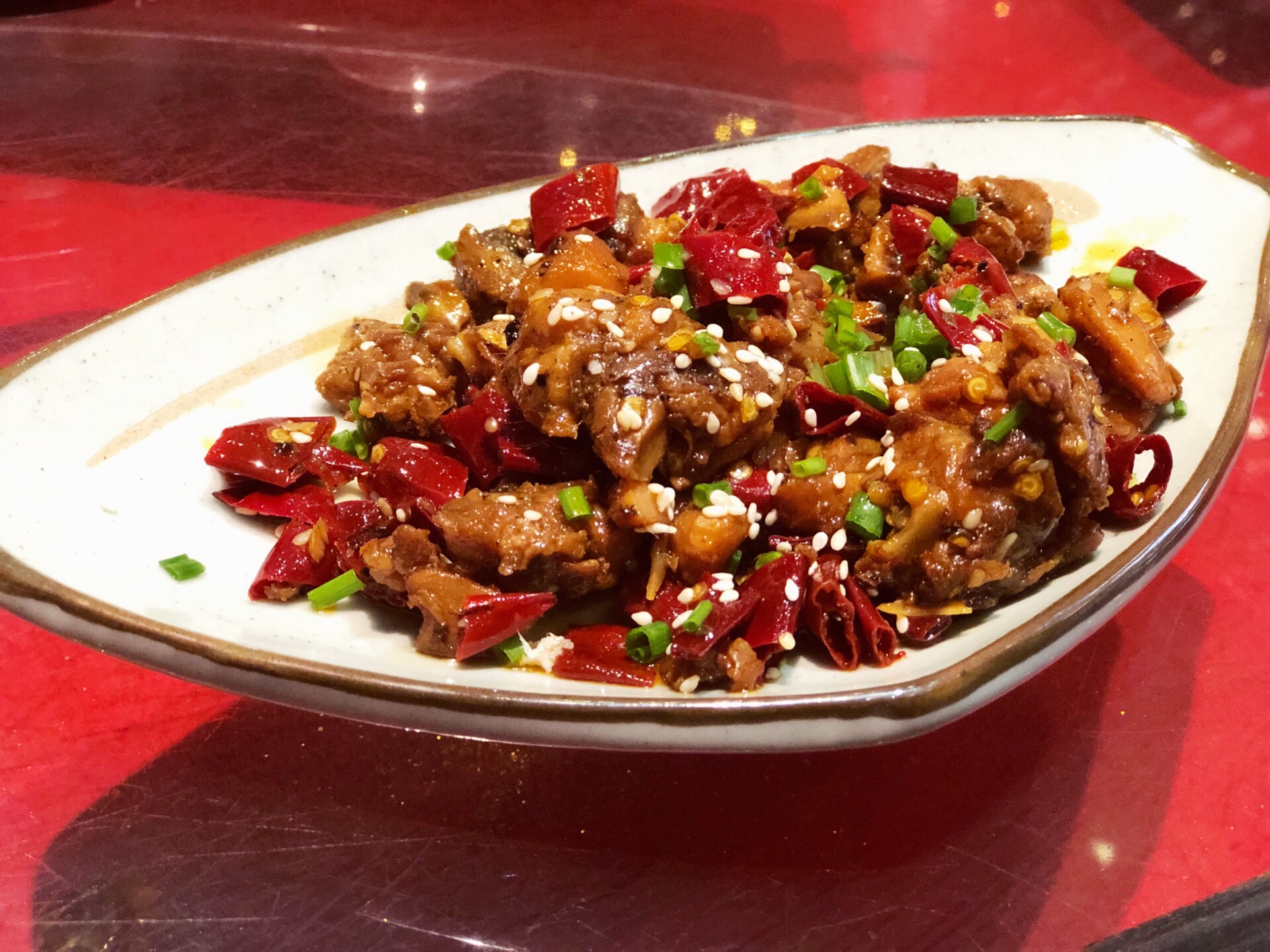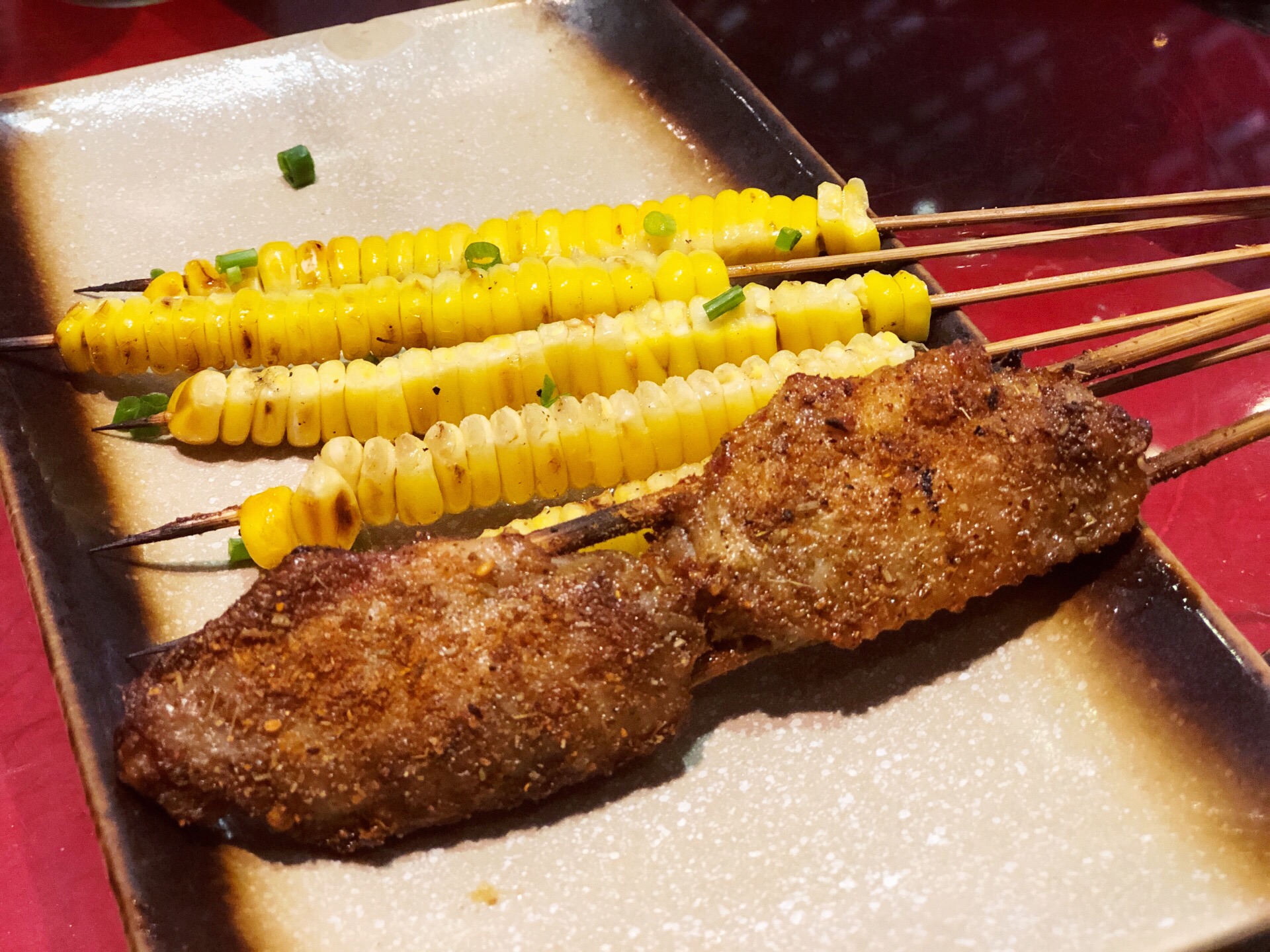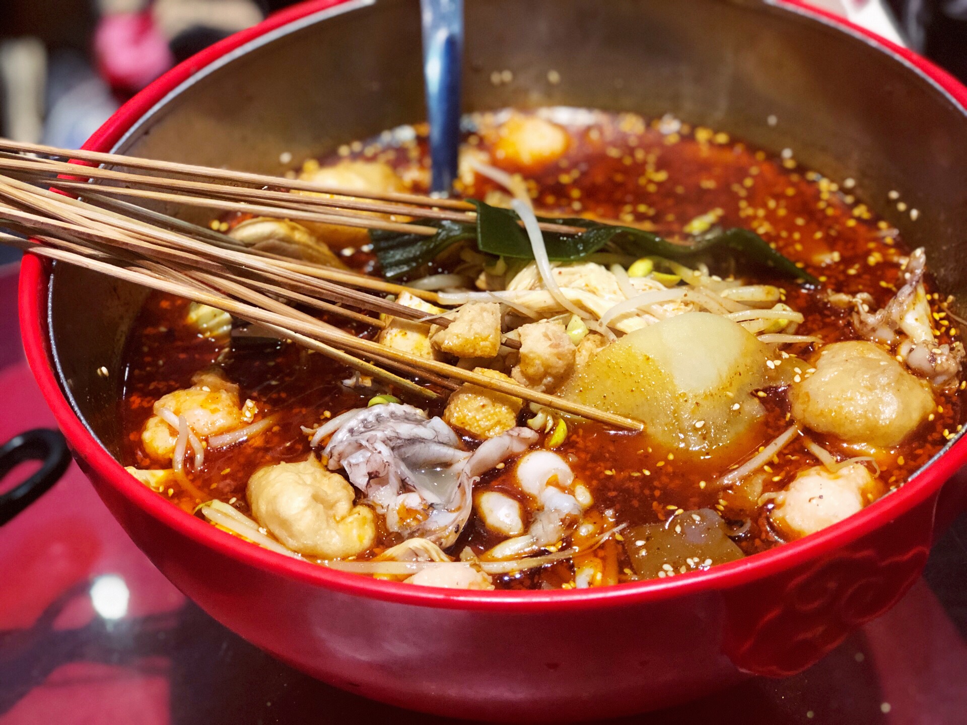 锅底依旧喜欢老成都红油锅底,鲜辣够味,牛蛙必点,肉质灰常鲜嫩,虾滑很Q弹很好吃,牛肉有点老了,点的蔬菜豆制品还不错非常入味,推荐鸭血豆芽腐竹土豆片油面筋。 烧烤也很赞,点了很多烤海鲜,带子生蚝扇贝裙边,都点了蒜蓉味的,新鲜够味好好吃。 现烤鲜牛蛙,喜欢吃牛蛙所以锅里涮了还点了烧烤的,觉得烧烤得更加好吃哦,超香嫩的。 同兴巷冷吃兔,也算是成都特色小吃了,看到了就点一份吃吃,兔兔肉肉也好香哦,配小酒喝喝。 红糖锅盔,一份三个,小小的很可爱,红糖馅儿的,锅盔趁热吃非常的香脆可口,不错的点心哈。