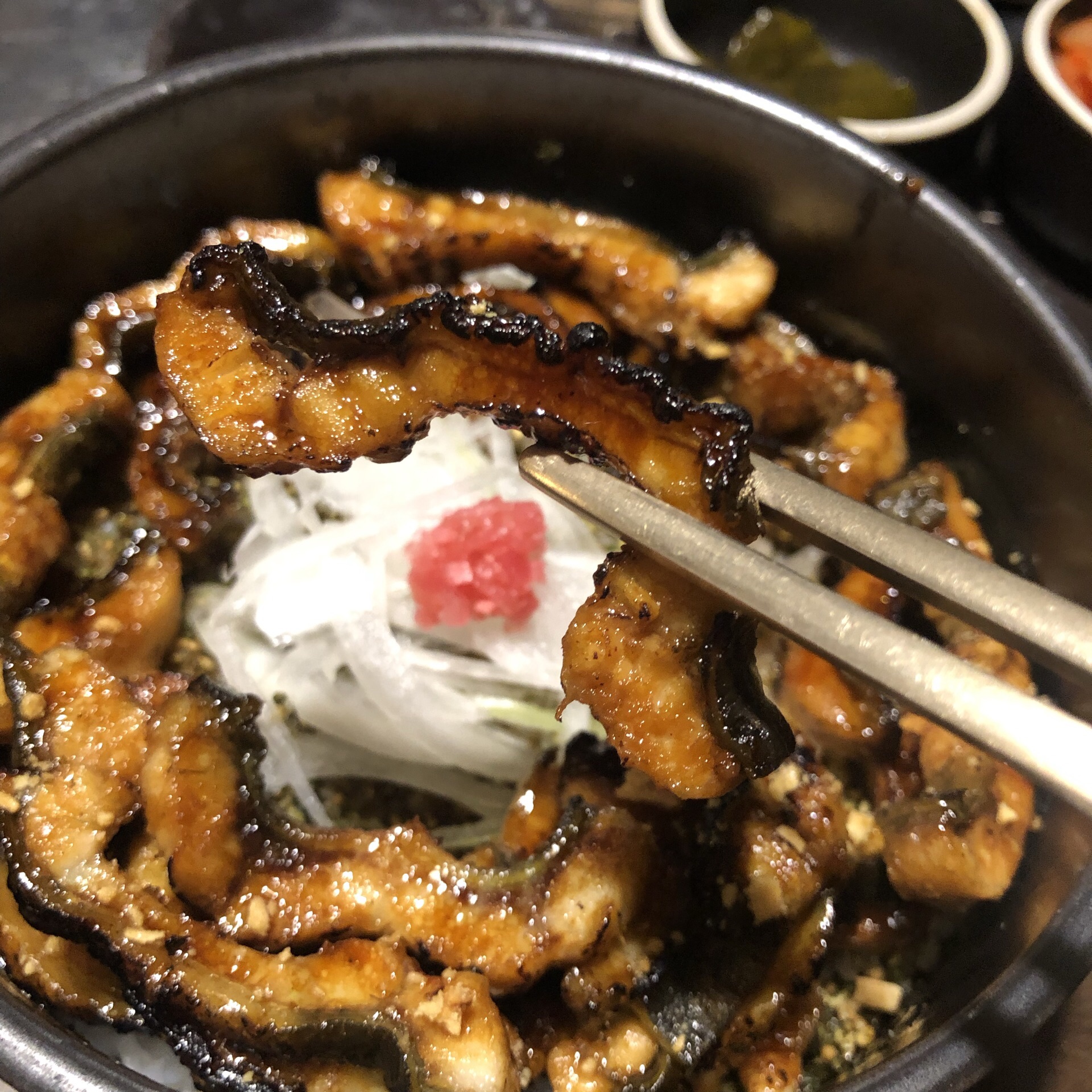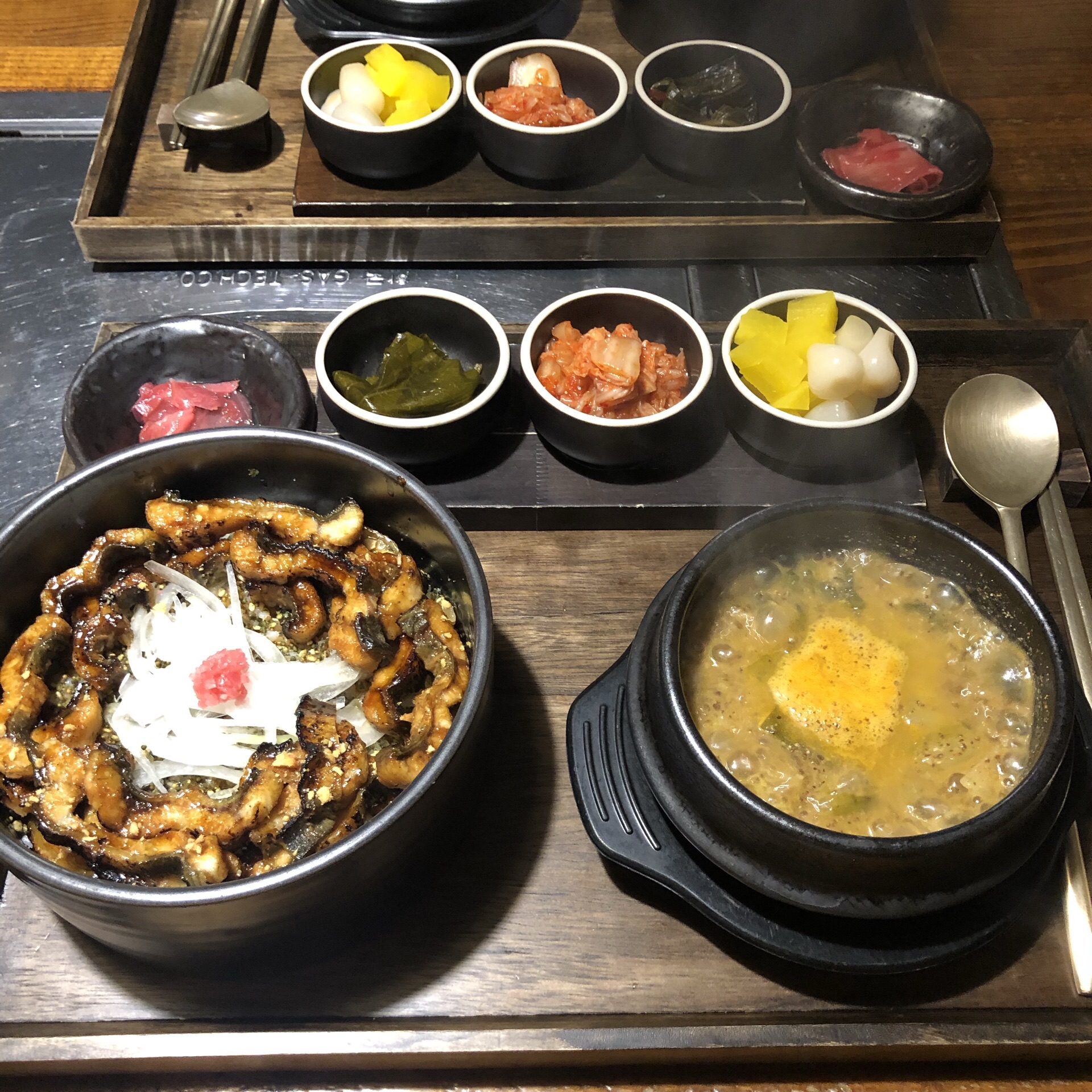 种草了很久的鳗鱼饭!终于趁着这周末有时间来弘大打卡了!鳗鱼量很大,口感很Q弹,不过汤喝的不是很习惯,送的小菜很解腻,鳗鱼空碗认证~店员服务态度很好,而且店内很贴心的有配毯子和衣服防油烟的防护套蛮加分的,下次想来试试烤鳗鱼!