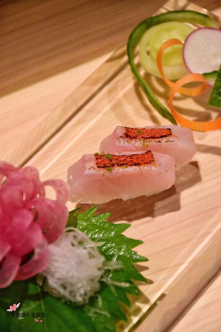 刺身的选材上,没有选择大家日常吃的三文鱼刺身,而是选择了肉质细腻肥美的「金目鲷」,口感爽脆的「真鲷鱼」很大胆的搭配菊花花瓣做点缀,肉质细腻的「金枪鱼背部」,微微炙烤依旧鲜嫩无比的「秋刀鱼」,鱼皮的光泽度明显能感受食材的新鲜程度,「象拔蚌」的鲜甜大家都懂,「贝类裙边」的鲜脆,我倒是第一次品尝。