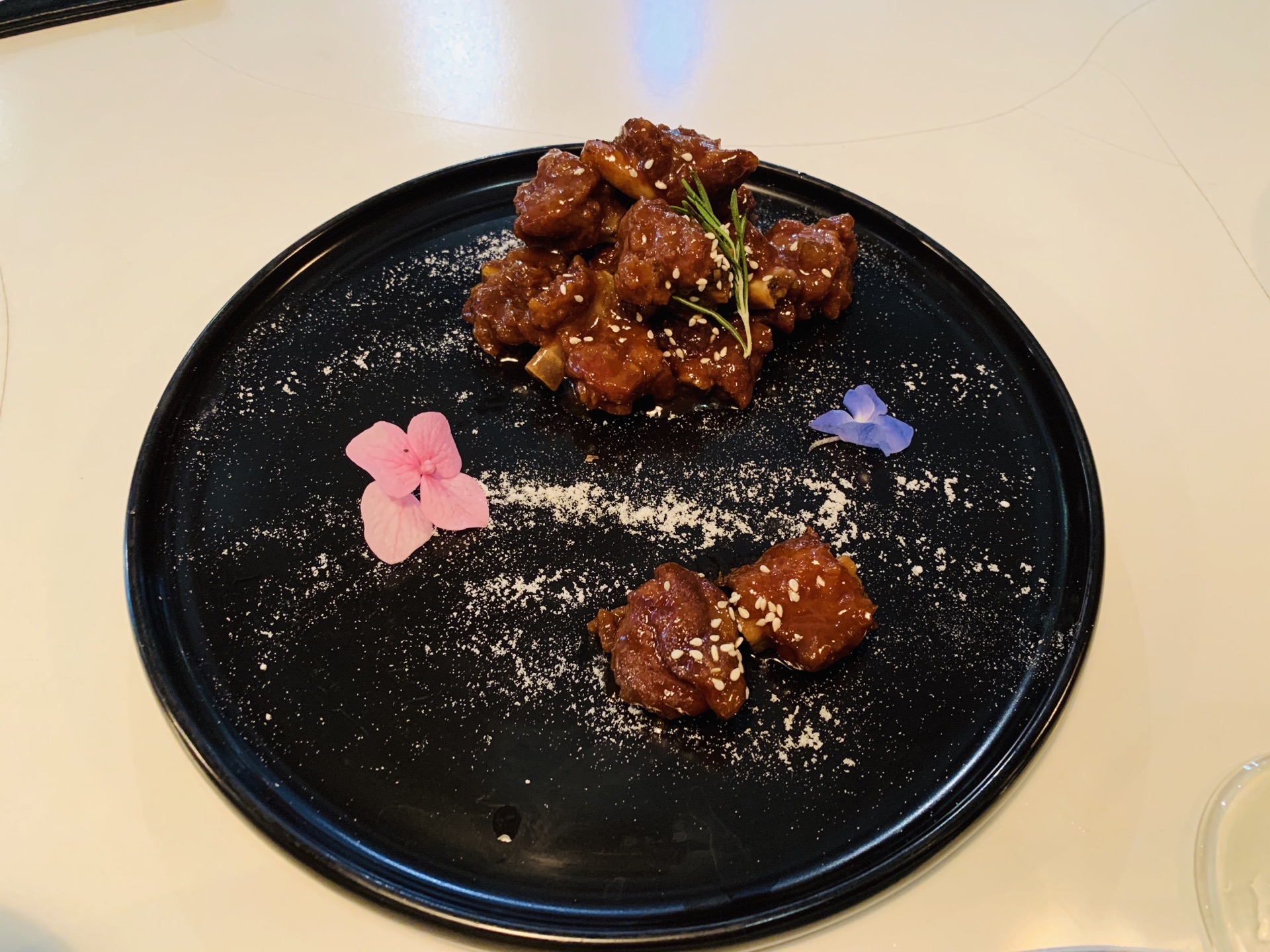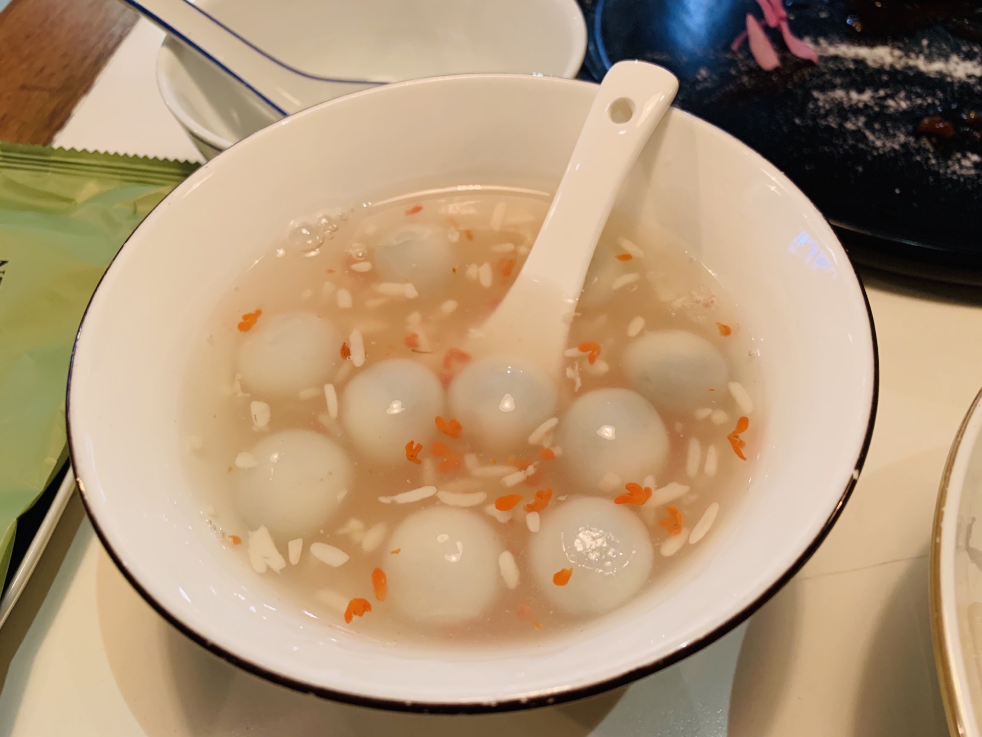 中午小奢了一把。从美容院出来,不想走远,转身上电梯就看了这家店就进去吃了。 由于就一个人,点了一份葱油拌面,一份糖醋小排,会员价送了一份小甜品。 葱油拌面+糖醋小排的组合很不错,送的酒酿圆子是我喜欢的味道,甜甜糯糯香香的。