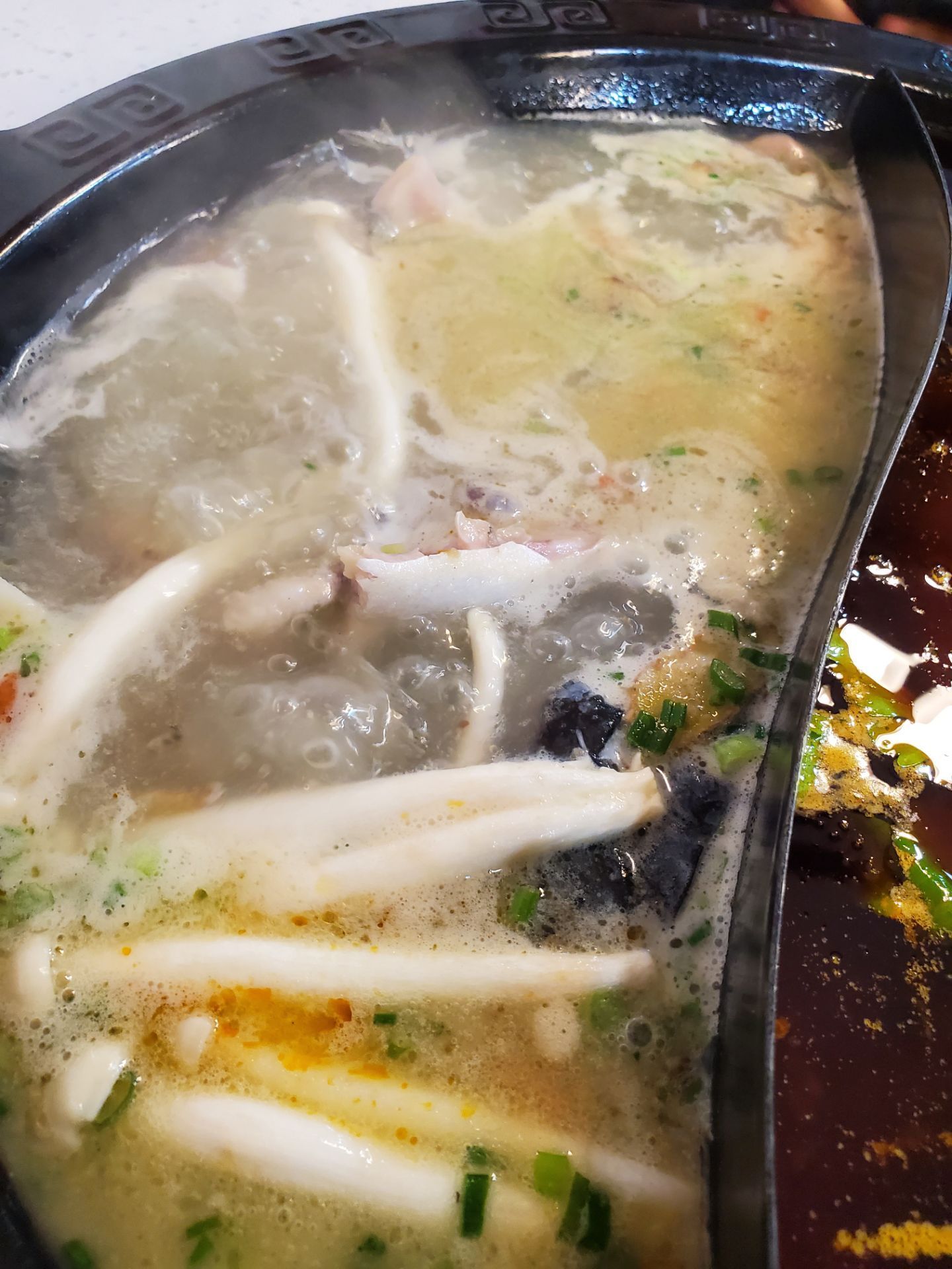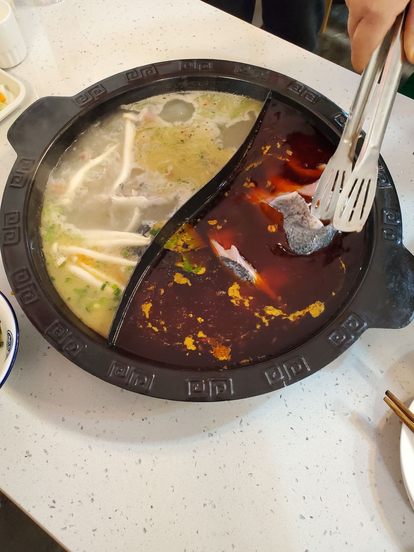 这家上品渔家火锅就在楼下,开了大概有一个多月了,每天从这里路过,他家生意都还可以,今天过来试试,他家是自助形式的,有火锅和芋儿鸡竹笋鸡,从20到38一个人随便吃,锅底费的油碟酒水另算,味道还可以,店面虽然没有咋个装修,但是很亮,看起来干干净净的,性价比很高。