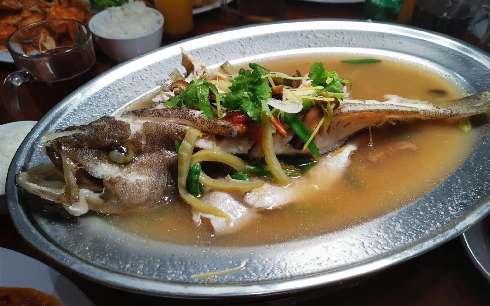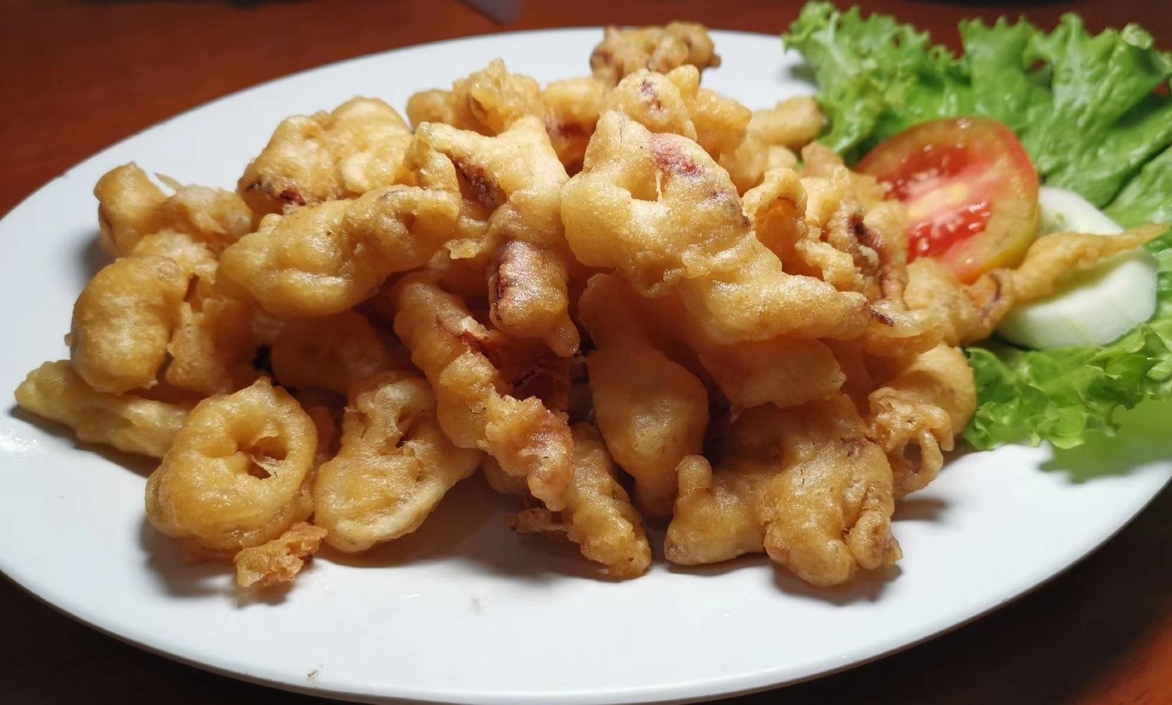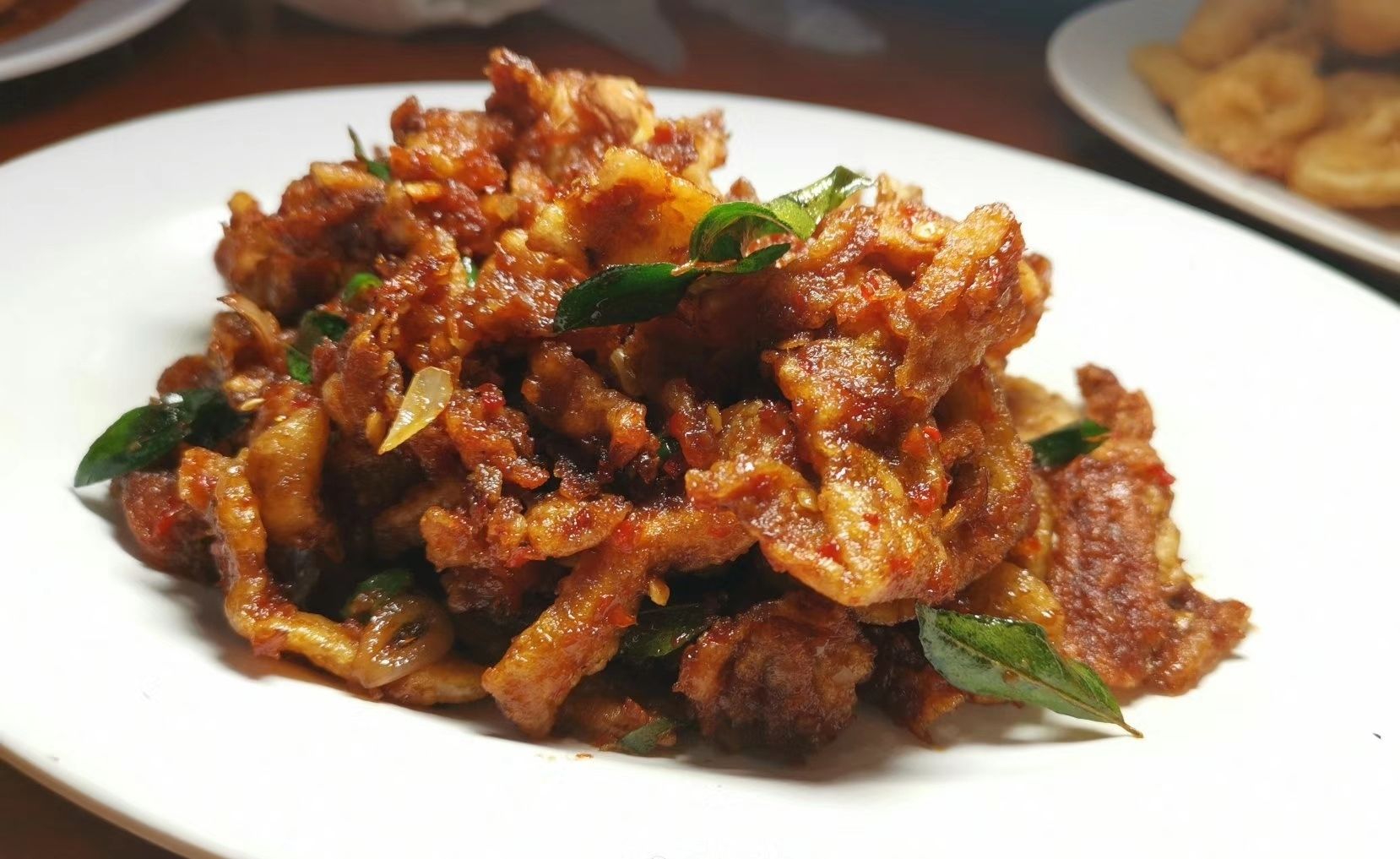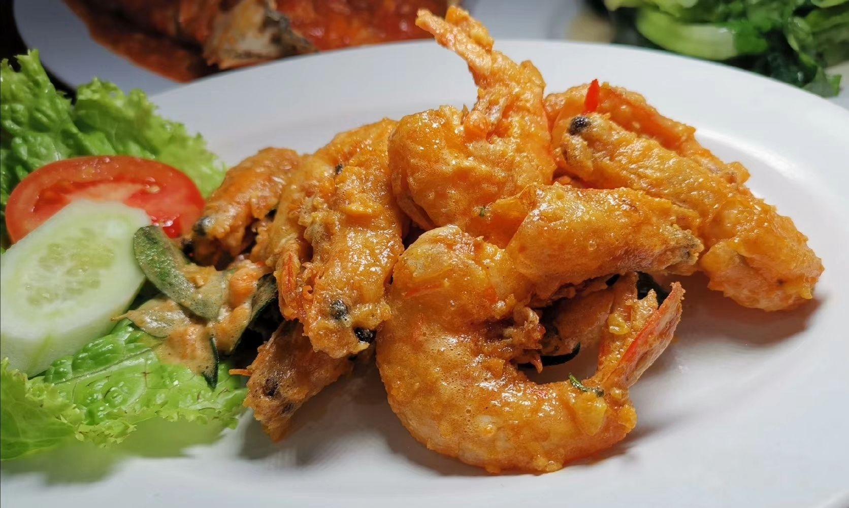 蛋黄虾、炸鱿鱼也好吃。鱼不太行,味道淡,口感老。问老板才知道那叫巴东酱