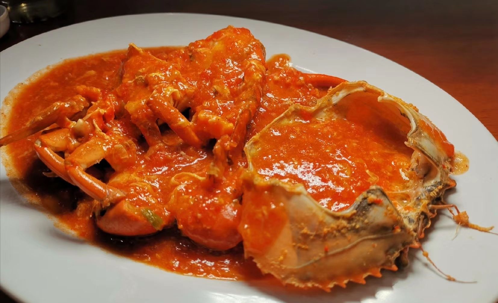 吃了好几顿飞机餐,今天正式吃当地菜,这家名叫Rasa seafood的餐厅,蟹是主菜,一人一盘,看起就是番茄炒蛋和蟹的组合,其实应该加了细细的辣椒酱,回味微辣微甜。问老板才知道那叫巴东酱。吃完蟹,再扣一碗米饭进去拌着吃,完美。蛋黄虾、炸鱿鱼也好吃。鱼不太行,味道淡,口感老。