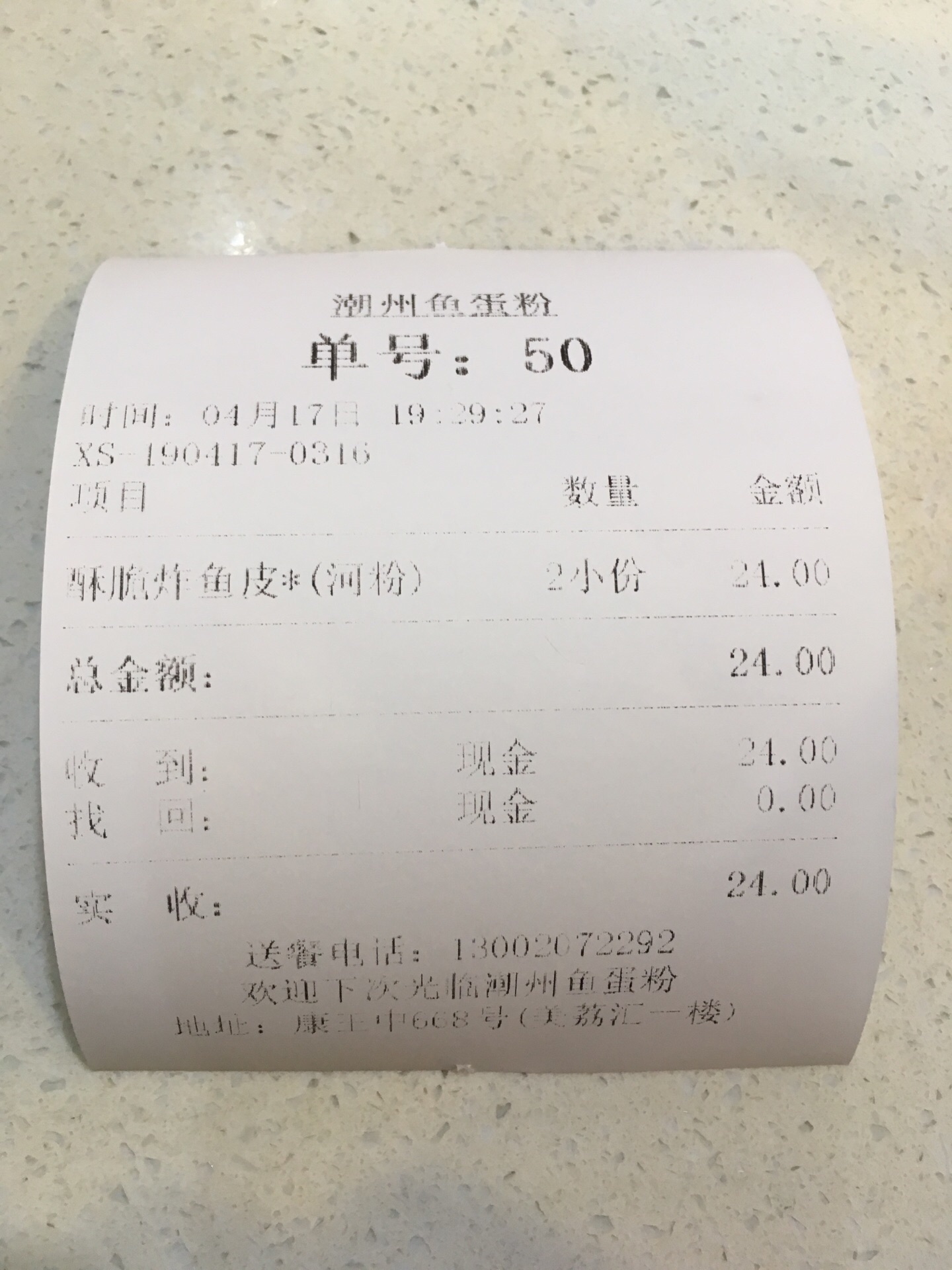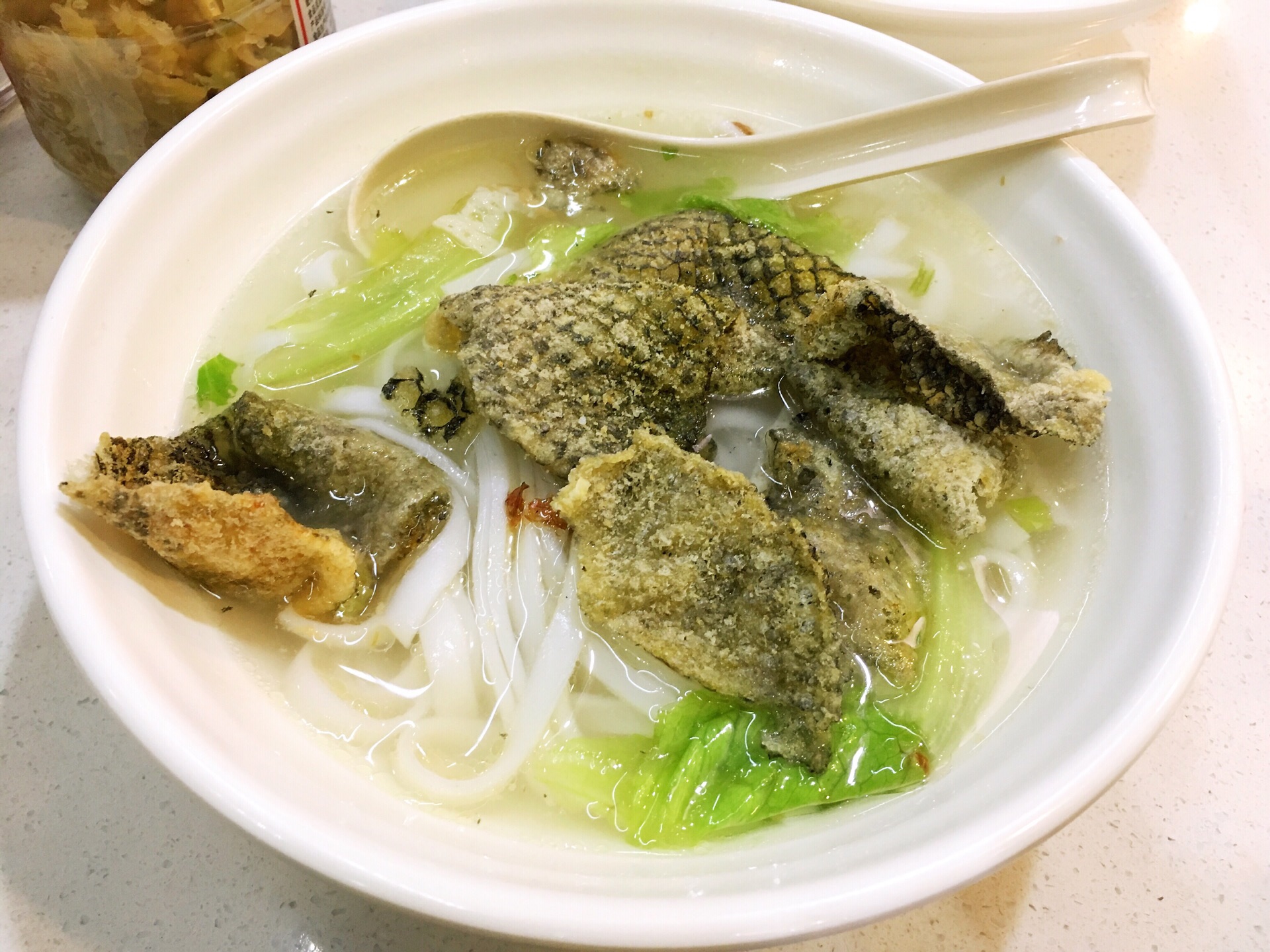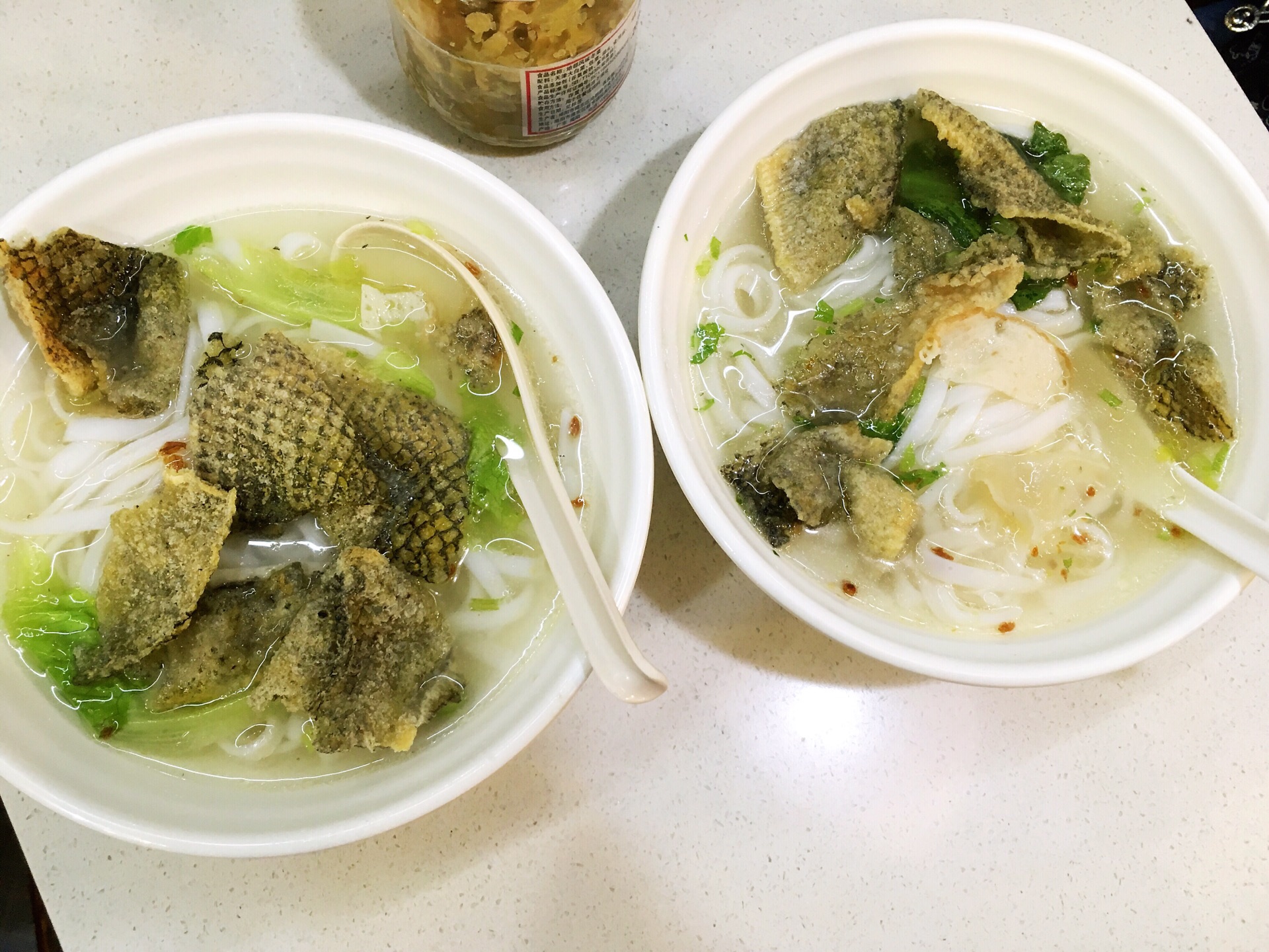 每次来广州,都一定要来他家吃鱼蛋粉,真的是特别喜欢。那为什么这次评分不是很高呢?是因为服务问题。 [环境]虽然有二楼,但是楼梯比较狭小,不愿意上楼梯,一般都会在一楼用餐。一楼的用餐位置很少,人多是需要排队,还比较拥挤。 [服务]本身我有一张优惠券,但是等我用的时候,店家就说这不是一家店,真搞笑,连门牌号都是一样的,为了这五块钱就这样说话吗? 「酥脆炸鱼皮粉」我们最爱的酥脆炸鱼皮粉,每天来广州都会特意来吃。 「爆脆鱼皮」当然还有麻麻心心念念的爆脆鱼皮,不过它涨价了。
