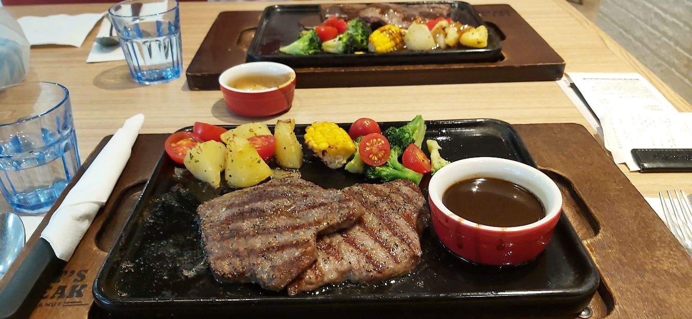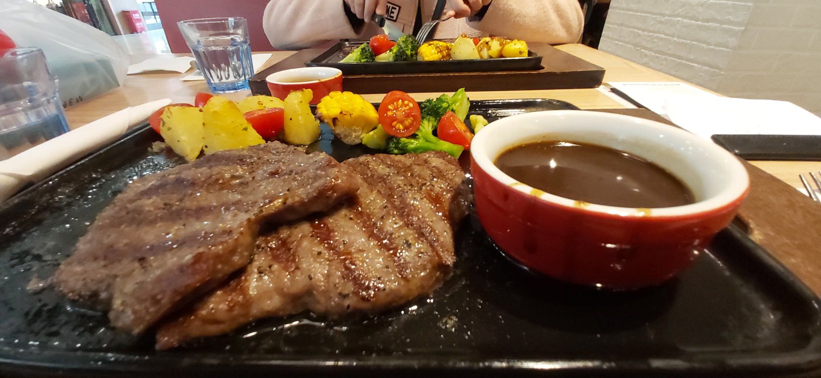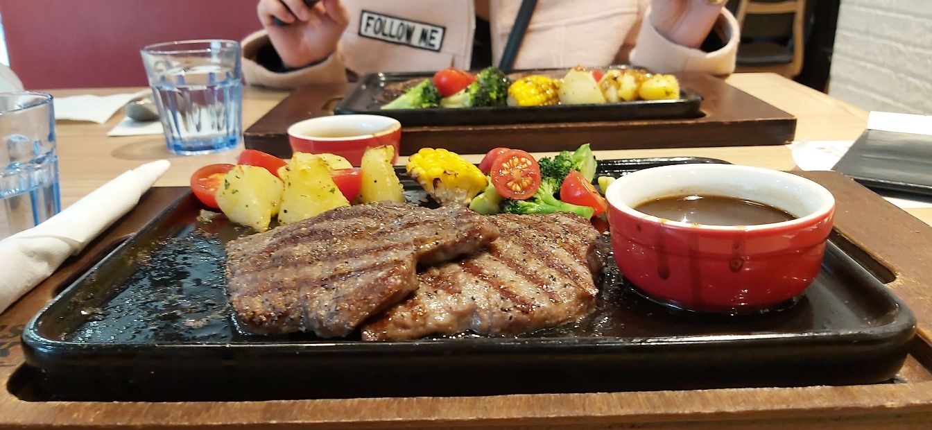 网友2019-12-04今天中午去必胜客,点了两份牛排和一份披萨,牛排堂食,披萨打包今天中午去必胜客,点了两份牛排和一份披萨,牛排堂食,披萨打包。这次点的牛排和以前不同,价格比较贵,两块牛排,不过感觉不一定比以前的多,毕竟两块都很小。