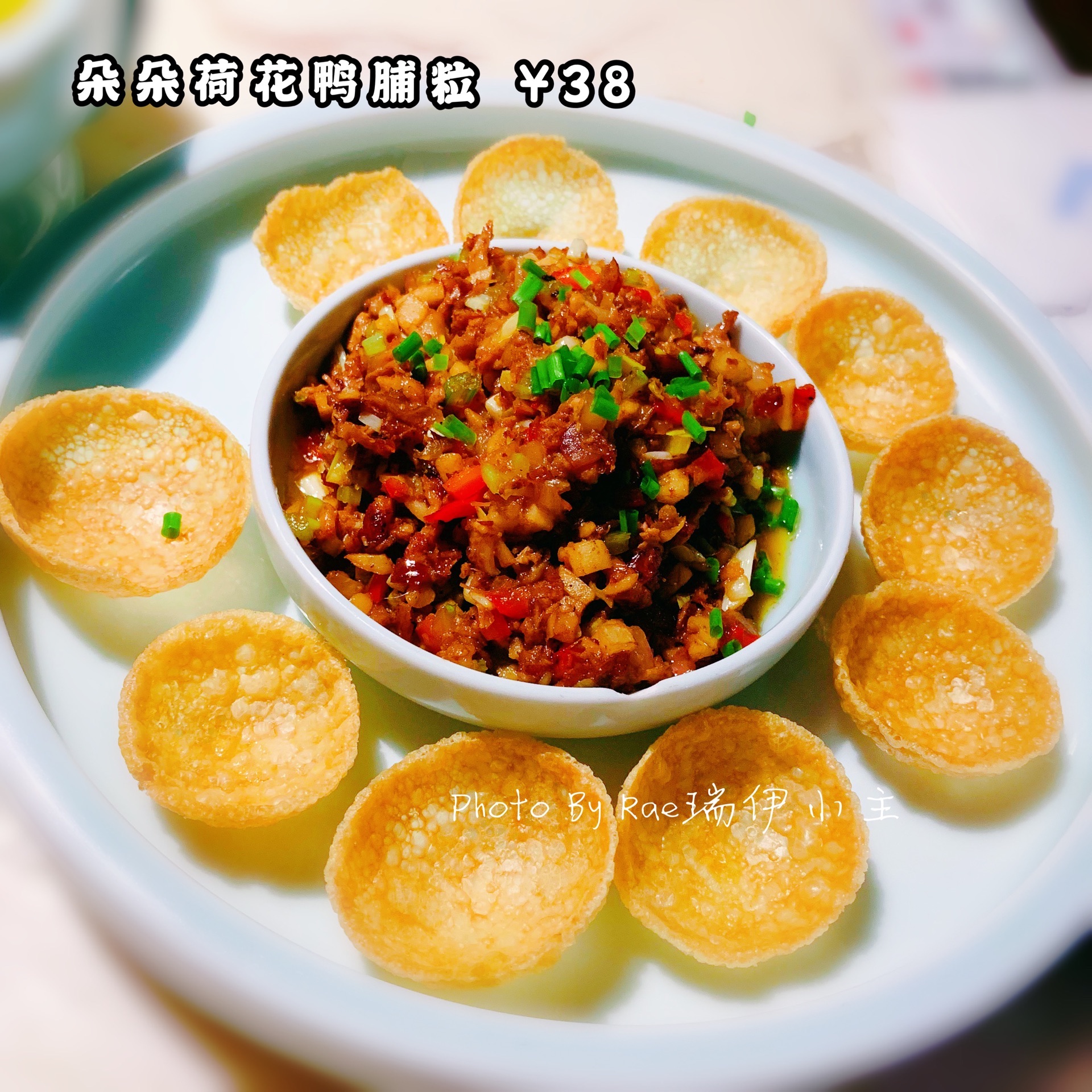【韵秋荷(宝山龙湖店)】 【吃货】【48】2019.9.7 跟西兰花先森拔草本帮江浙菜新店,龙湖天街现在也算是宝山地区的又一个商业新坐标了 他家的用餐环境特别诗情画意,小桥流水人家,很赞 「桃之韵」 他家的主打特色桃子造型还真挺萌的~外壳是巧克力,内里是水果色拉 「秋荷片皮鸭」 烤鸭的最经典吃法,蘸酱包饼皮,不得不说,刚出炉热乎乎味道还是无敌的 「西湖煎酿藕饼」 搭配蒜蓉辣酱,外脆里香 「梅笋杏鲍菇」 性价比不错,佐餐冷盘小菜首选 「酸菜黑鱼片」 鱼片大概10片左右吧,酸菜豆芽白萝卜泡在汤汁里还是挺辣的 「朵朵荷花鸭脯粒」也是他家特色,不放壳里直接吃也不错 「西瓜汁」 鲜榨饮料