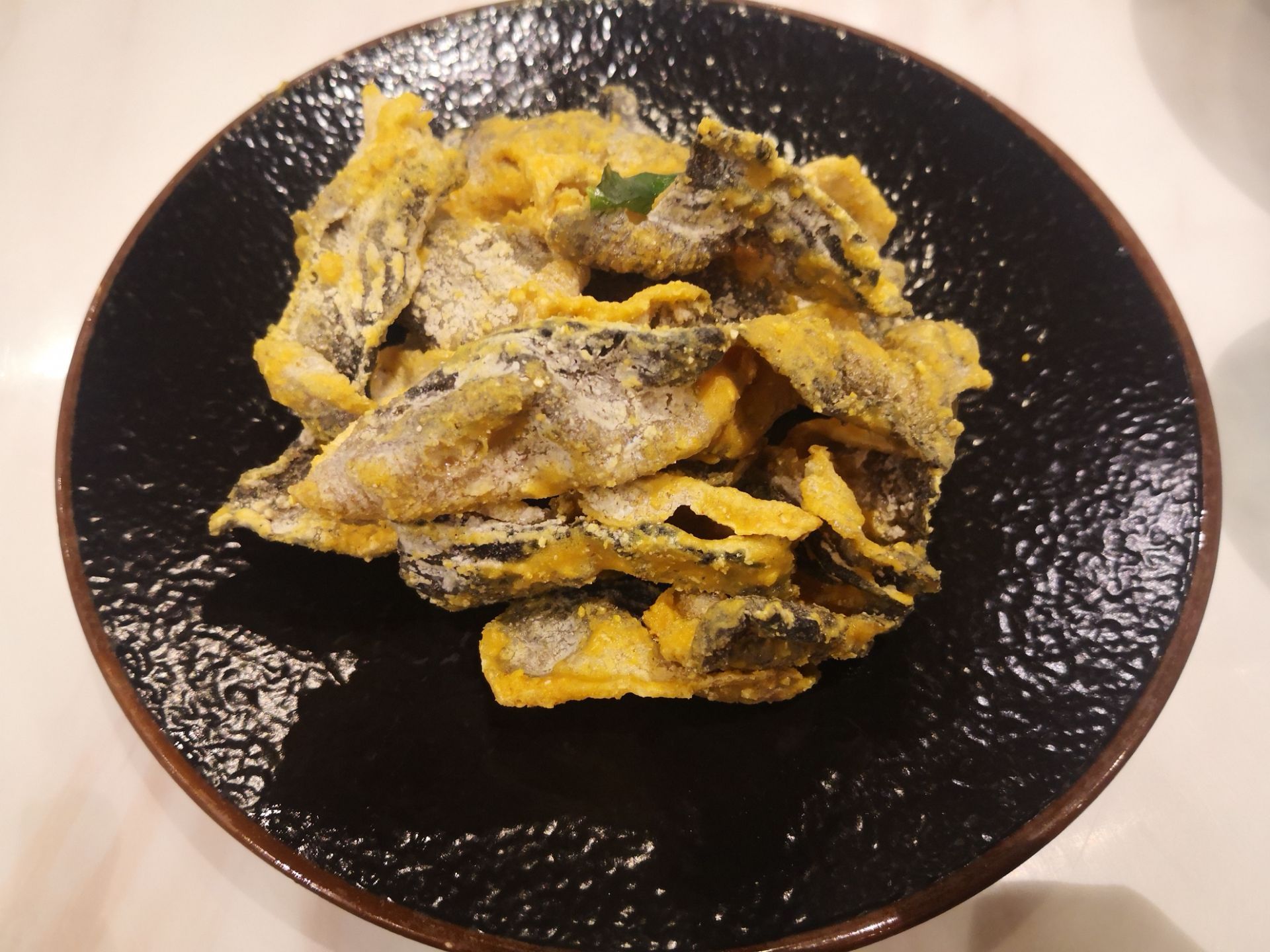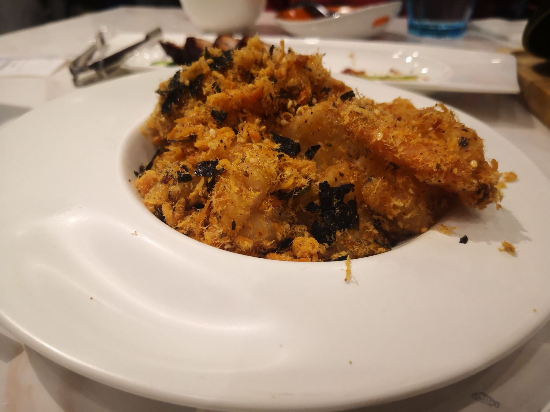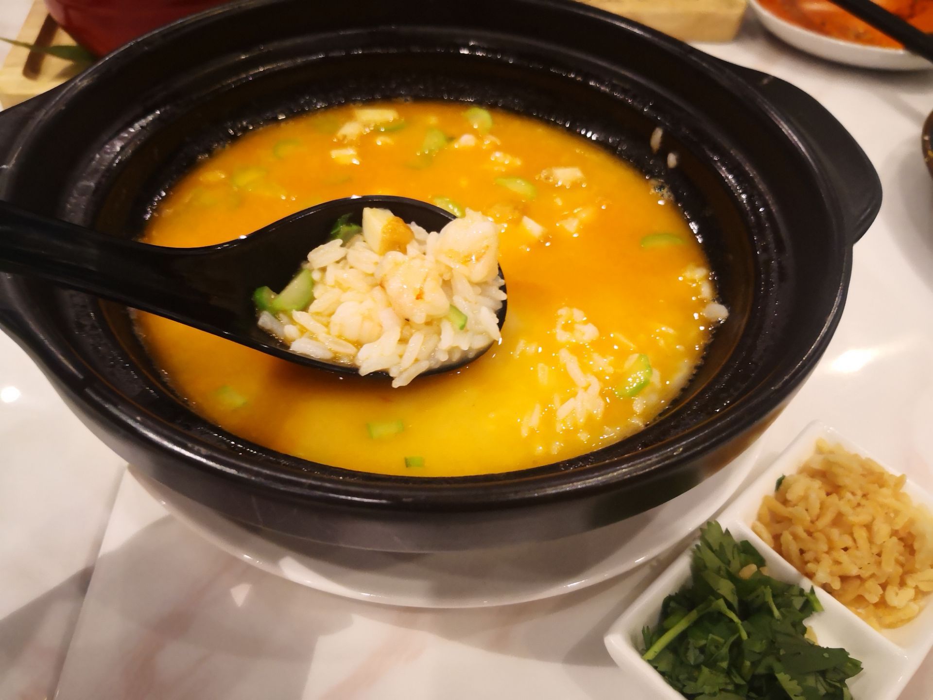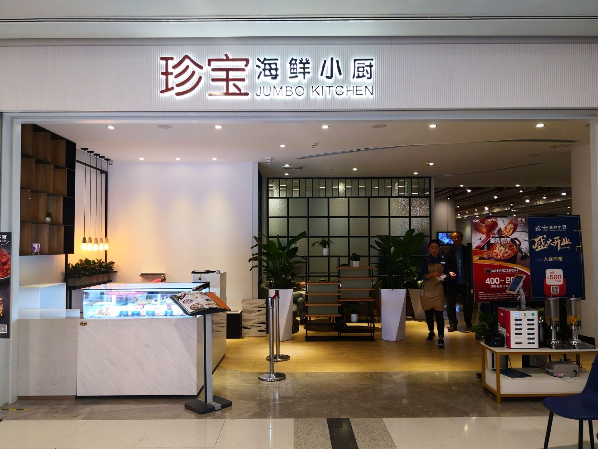 虽然还没去过新加坡,可在上海也能吃到珍宝蟹了。 店家开在人广人气颇旺的来福士广场六楼,走进餐厅,脚下踩着松软的地毯,坐在同样松软的沙发上,准备开始享用一顿美食。 懒人辣蟹配炸馒头 这道菜的确是不爱拨蟹壳的懒人们的福音,蟹肉厚厚的在砂锅上铺了一层,用虽然炸过、但口感松软的馒头片蘸起裹着酱汁的蟹肉,那感觉,很奇妙。据说这颜色深红的酱汁,是用来自东南亚的香料制作的,吃起来微甜微辣。 紫菜肉松虾球 不知道店里用的是那种虾,个头真心大,拣起一只就足以塞满嘴巴。虾肉弹性十足,裹着肉松和紫菜,嚼得满口生香。 肥婆黑叉烧 肥婆肥不肥我不知道,但黑叉烧是不肥的。叉烧边缘的焦肉色泽乌黑且光泽透明,叉烧肉不肥不腻,口感香甜。 新加坡咸蛋鱼皮 这道菜有会员福利,8元一份,很是划算。而鱼皮炸得酥脆,外面裹得那层咸蛋黄厚度适中,即突出了咸蛋黄咸香的味道,也不会过厚而影响鱼皮的口感。 贵妃泡饭 汤头很鲜美,食材很丰富,个人可以根据喜好加入脆米和香菜,两也不算少,至少可以盛四小碗。 榴莲心太软 都说喜欢吃榴莲的人闻到的榴莲味道都是香的,我便是如此。闻到隔壁桌的榴莲味道之后,我就在期待这道甜品了。塞满了榴莲果肉的蛋糕立马让我挖空了。 现在办会员还有五张百元的餐券送,下次可以来半价吃蟹了。
