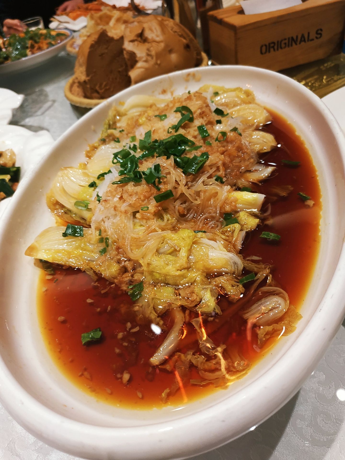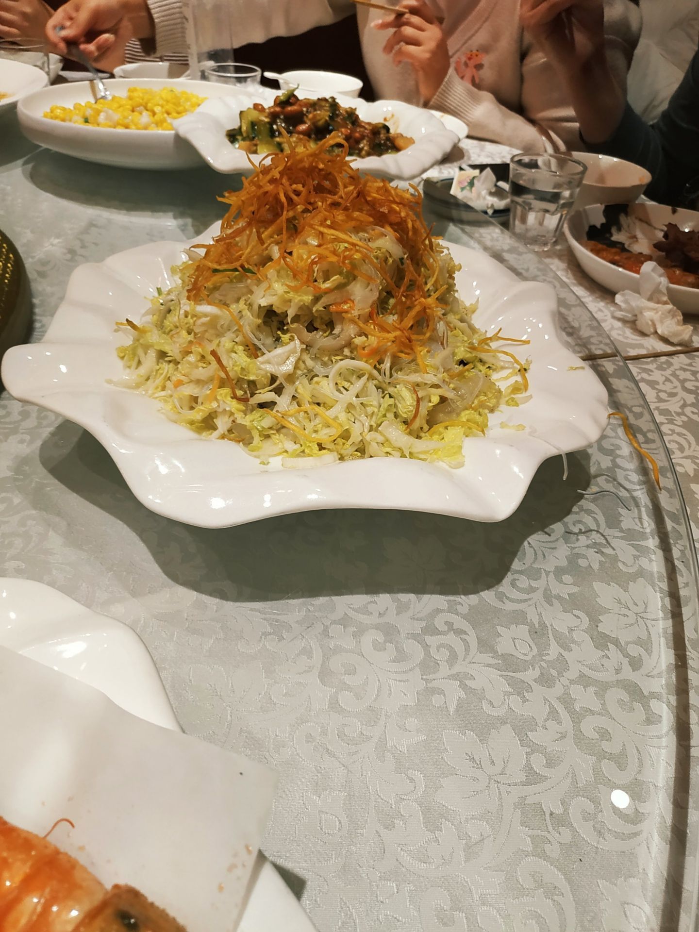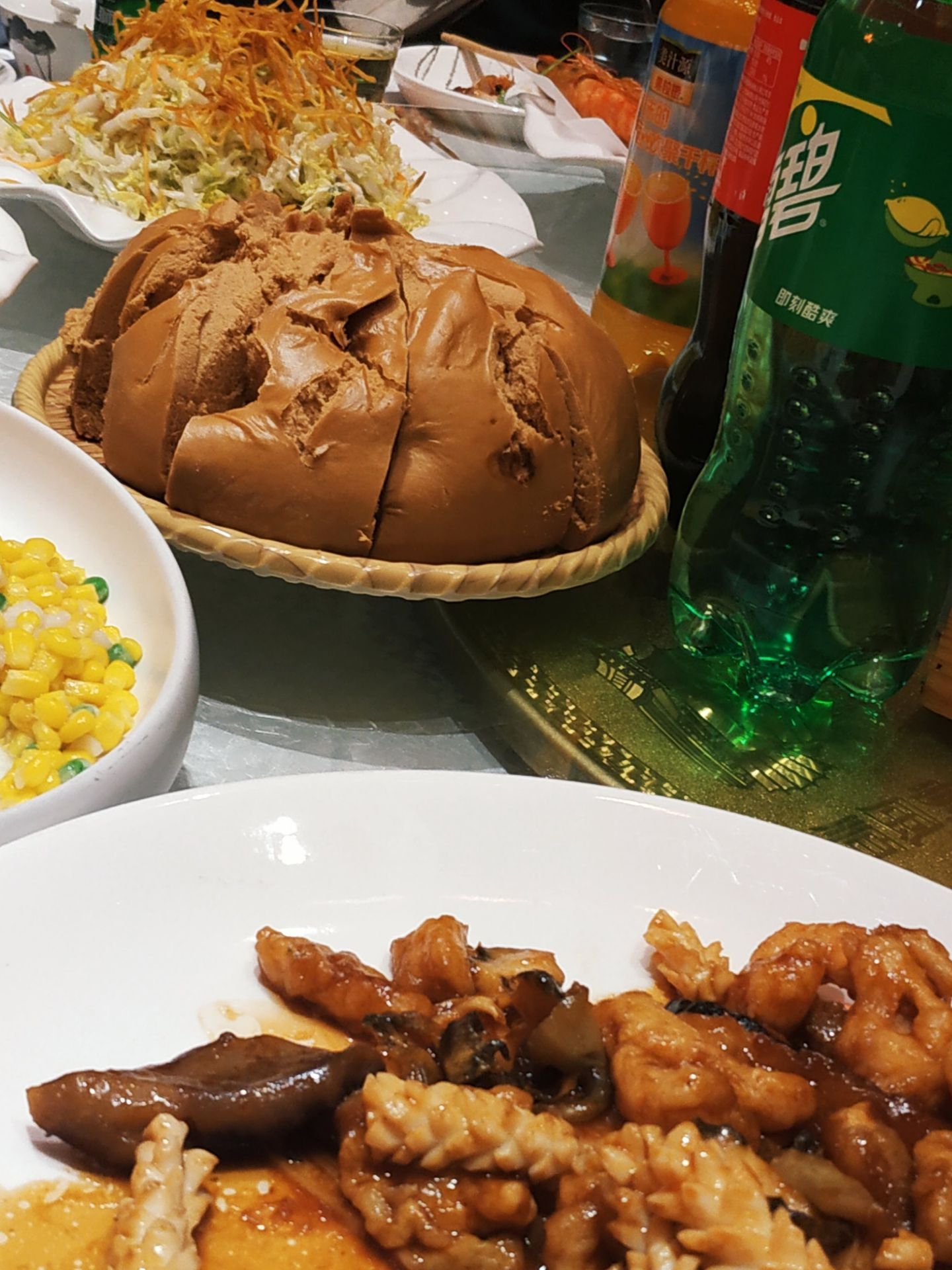 朋友婚礼后当天晚上答谢宴选在了大年初一,大年初一在咱们华南商圈也是早已名声响亮了。华南广场转盘南侧菜府酱骨旁边就是了,特别有咱们中国风的大红色门头透着过年的喜庆劲儿。 进门二楼包间隔断可以打开,每桌可以坐15个人。每桌18个菜吃的相当满意,量大实惠,而且跟台服务人员态度也很好,适合家庭聚会。 熏酱拼盘里面的猪蹄子,排骨都是现在的抢手货啊一上桌我就控制不住的抢了块猪蹄子,味道棒棒哒,有嚼劲,熏得刚刚好。哈哈现在点的起猪肉都是非富即贵了吧[呲牙] 红枣开花馒头强烈推荐哈 一肚子菜都没抵抗住它的诱惑,入口软韧适中,浓浓的红枣香味,略带甜甜的味道,哈哈没吃了的都让我打包了[偷笑] 有个绿色的凉皮推荐哈 麻酱里面有肉松,第一次吃到的口感和味道,都是店里自制的凉皮,吃起来也放心。 老式樱桃肉 哈哈这是个有故事的菜哈 服务员推荐这是今天大家必吃的菜品,因为是猪肉制作的哦最近跟二师兄贴边的食材都涨价或者换主料了。没想到她们家都是实在,本来不爱吃甜口的我,也没忍住吃了一块,火候不错,肉质鲜嫩
