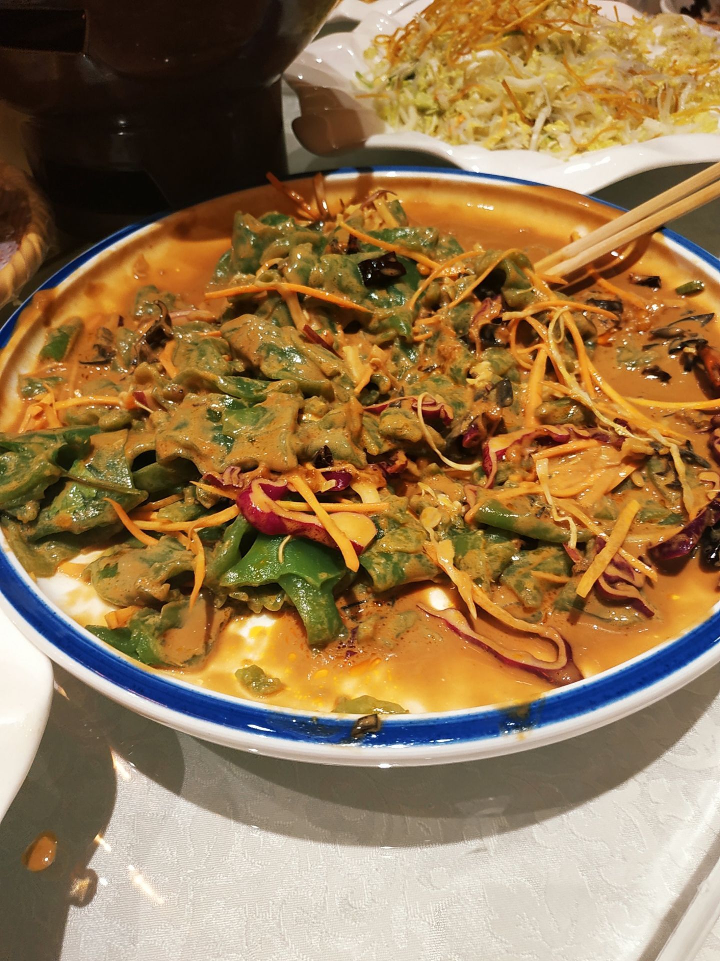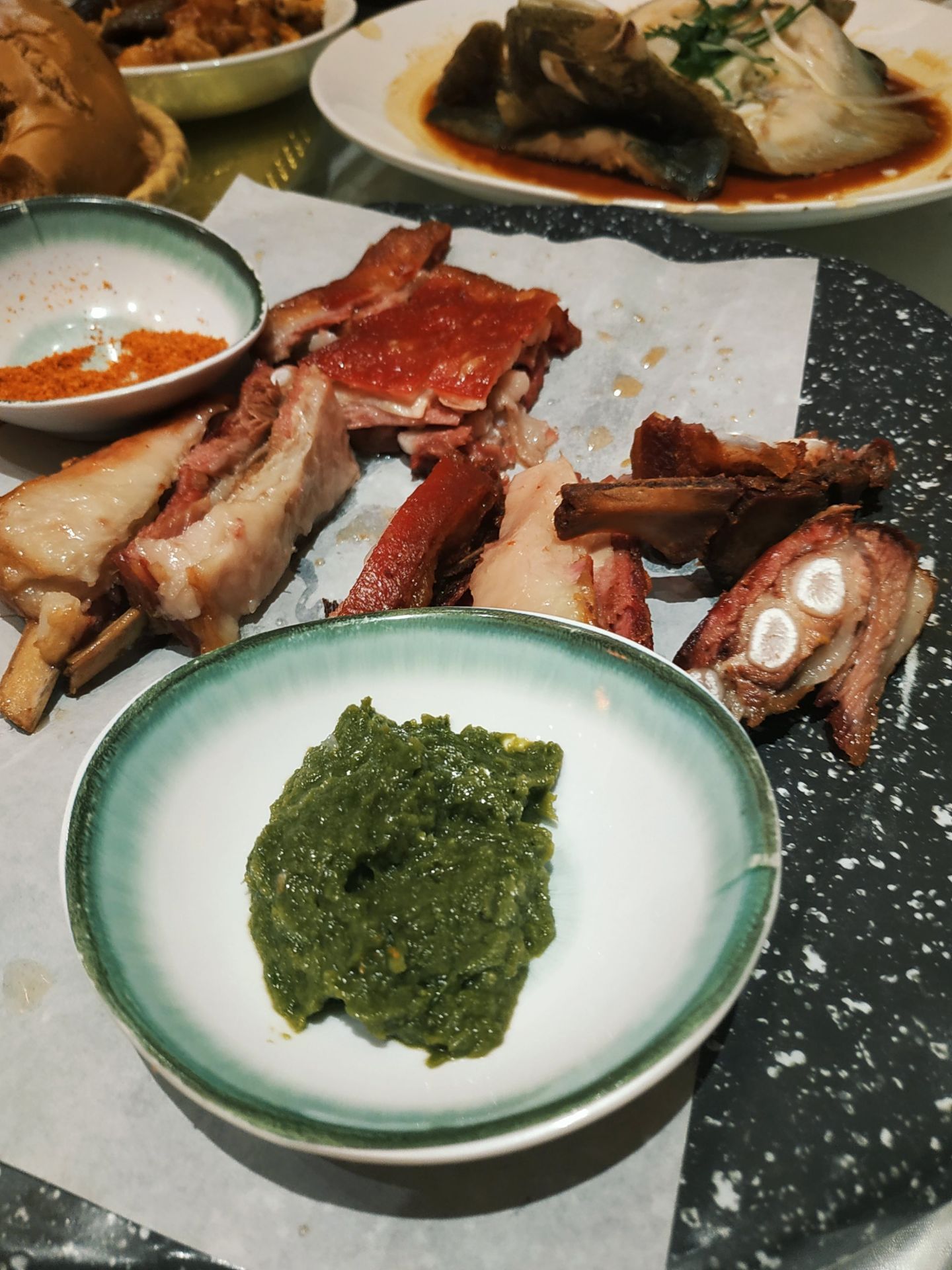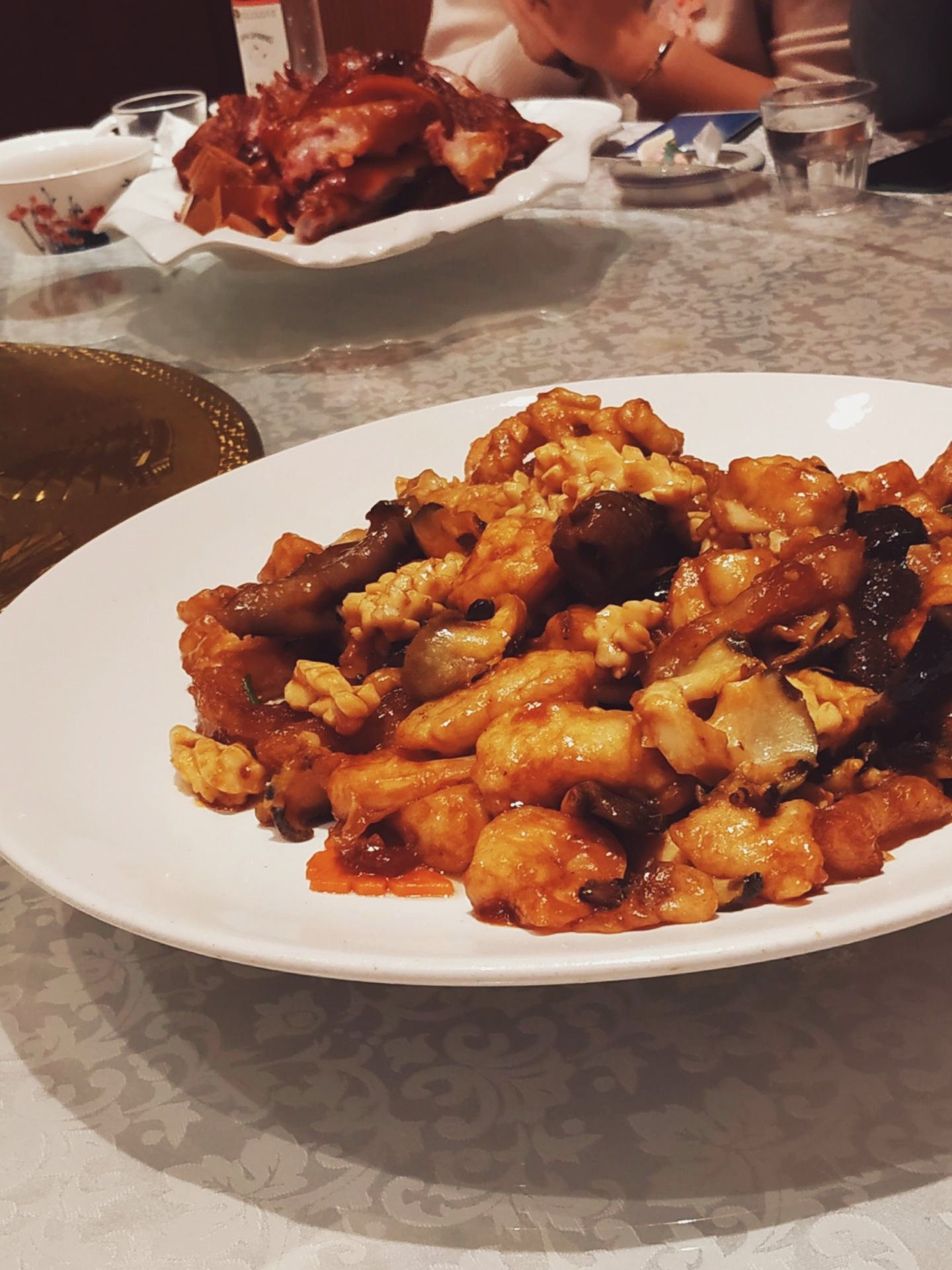 朋友婚礼后当天晚上答谢宴选在了大年初一,大年初一在咱们华南商圈也是早已名声响亮了。华南广场转盘南侧菜府酱骨旁边就是了,特别有咱们中国风的大红色门头透着过年的喜庆劲儿。 进门二楼包间隔断可以打开,每桌可以坐15个人。每桌18个菜吃的相当满意,量大实惠,而且跟台服务人员态度也很好,适合家庭聚会。 熏酱拼盘里面的猪蹄子,排骨都是现在的抢手货啊一上桌我就控制不住的抢了块猪蹄子,味道棒棒哒,有嚼劲,熏得刚刚好。哈哈现在点的起猪肉都是非富即贵了吧[呲牙] 红枣开花馒头强烈推荐哈 一肚子菜都没抵抗住它的诱惑,入口软韧适中,浓浓的红枣香味,略带甜甜的味道,哈哈没吃了的都让我打包了[偷笑] 有个绿色的凉皮推荐哈 麻酱里面有肉松,第一次吃到的口感和味道,都是店里自制的凉皮,吃起来也放心。 老式樱桃肉 哈哈这是个有故事的菜哈 服务员推荐这是今天大家必吃的菜品,因为是猪肉制作的哦最近跟二师兄贴边的食材都涨价或者换主料了。没想到她们家都是实在,本来不爱吃甜口的我,也没忍住吃了一块,火候不错,肉质鲜嫩