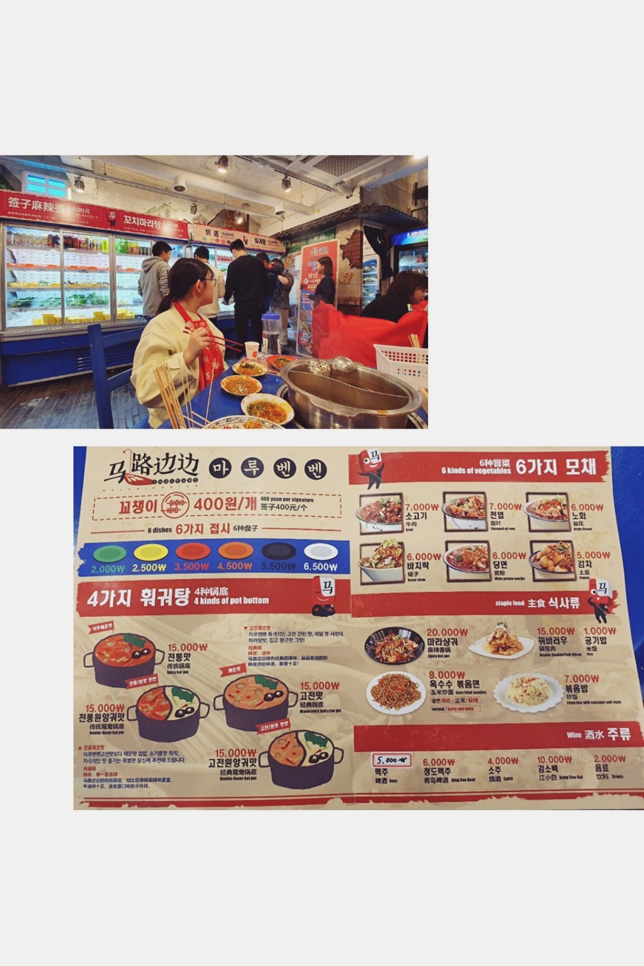 去明洞的时候无意中看到马路边边,真有家的感觉 【口味】跟国内一样正宗,有辣有不辣,串串有40多种类 【环境】跟小时候的感觉一样,好经典 【服务】小姐姐很好,还帮我调出很好吃的酱料 都是中文服务,没有需要障碍 有麻辣烫,炒面等主食