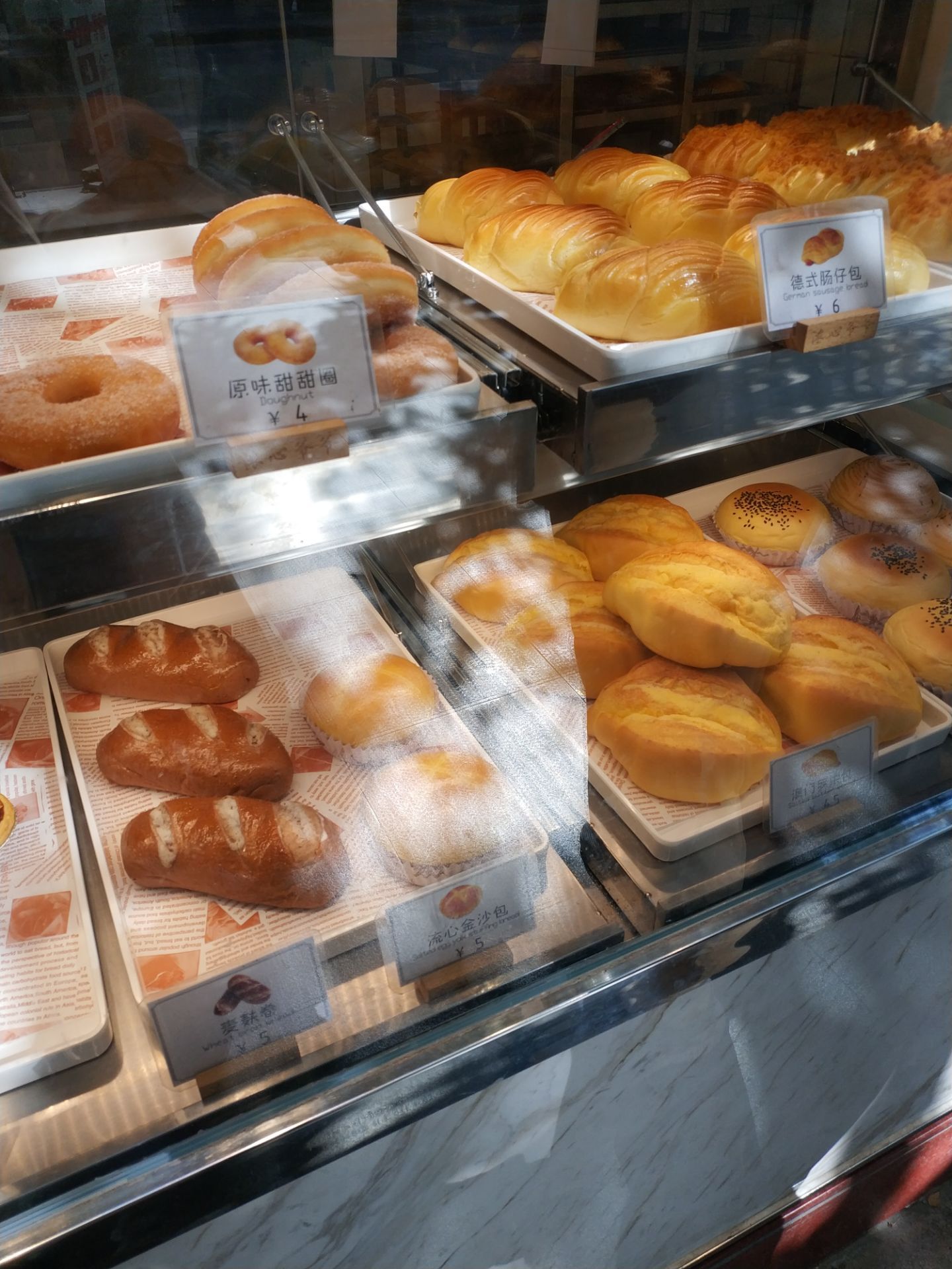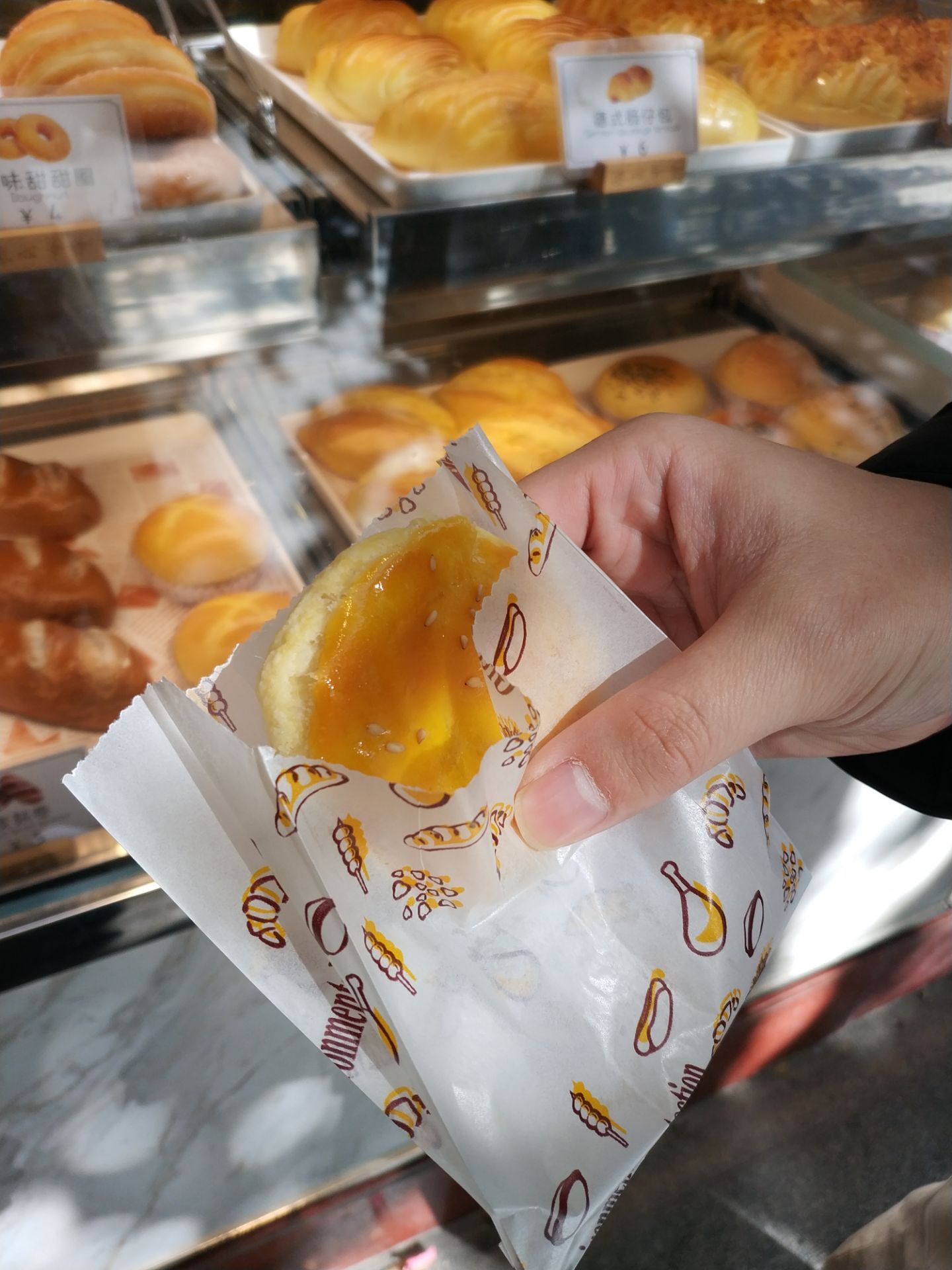 甜度刚好,也不会腻,挺好吃的。路过小区门口的浓心爷爷闻到面包香味,忍不住驻足买了一个路过小区门口的浓心爷爷闻到面包香味,忍不住驻足买了一个。看到橱柜上面的面包价格觉得还好,买了两个老婆饼,一个2.5元,味道真的挺不错。甜度刚好,也不会腻,挺好吃的。