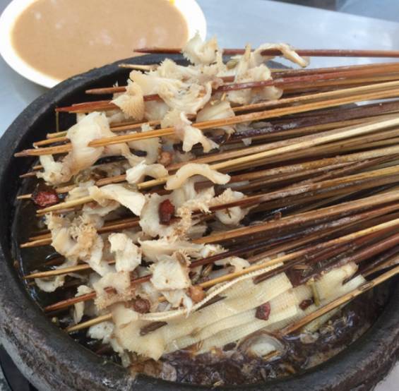 这家位于老城区左安街11号青年宫广场东侧的宋园涮牛肚在洛阳可是出了名了美味,很多人在这里一吃就是几十年,而且牛肚都是从砂锅里煮出来的哦!味道极其鲜美,经蘸料调味,口感倍增。来这涮牛肚必须带上它的好搭档豆腐皮,牛肚Q弹有嚼头,豆腐皮绵软入味,再加上一锅老汤,开涮!每根签字上都有一指长左右的牛肚,而且都是每天早上才取到的新鲜牛肚。辣椒油香而不燥,把涮好的牛肚在碟子里来回翻转几下,拿起时还滴着油,牛肚鲜嫩脆韧,一口下去三五串,别提有多过瘾了。