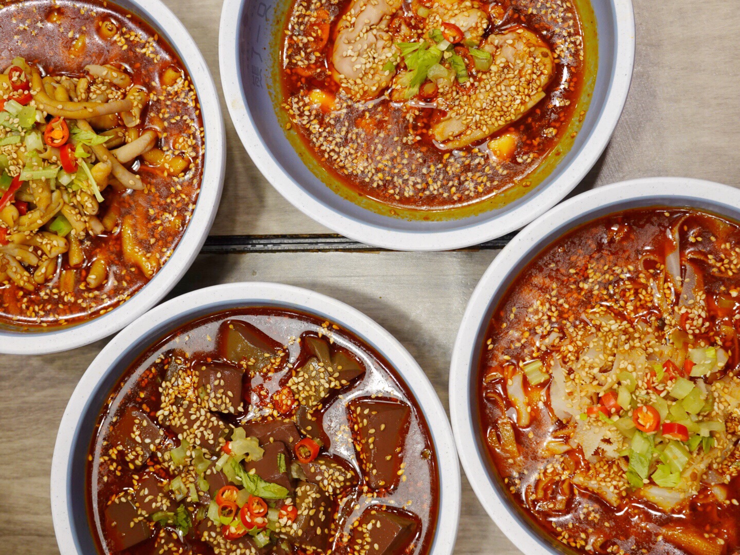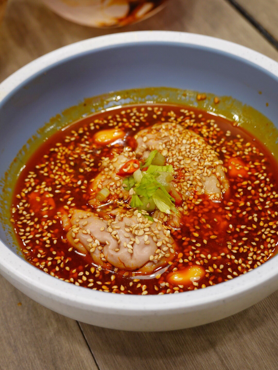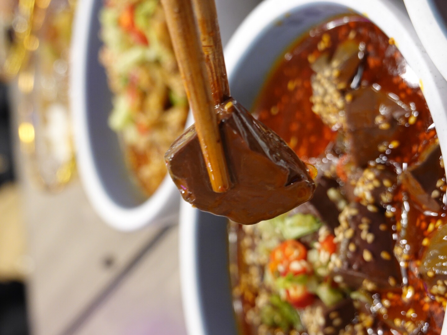 金陵鸭血,嫩滑入味; 红油散发着香气,鲜辣扑鼻,标志性的红汤和白芝麻,圈粉无数