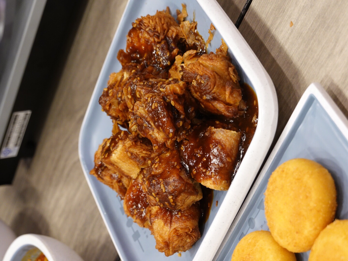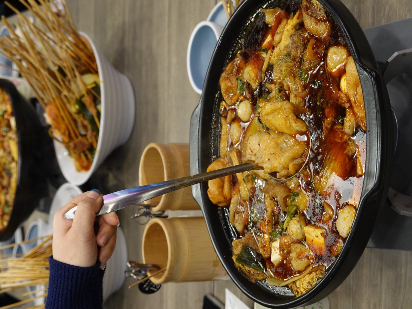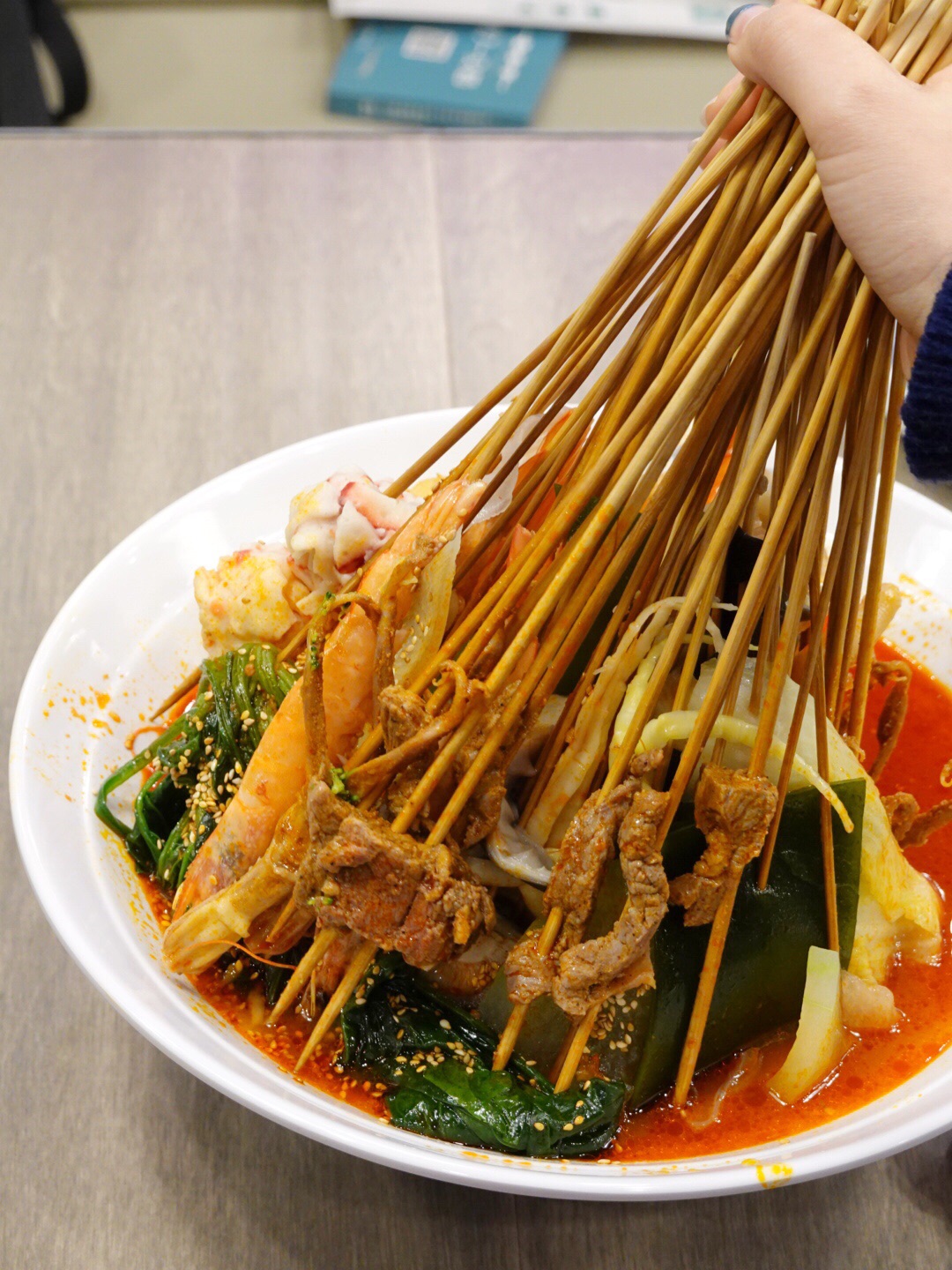 人均80+,100+种串串,收割无数串串控!吃一次就沦陷了! 熊了一只猫,江宁地区网红串串店,竹山路公交站这儿,很方便。 店内环境舒适,超大的电子屏幕,可以观看综艺、比赛。 串串自选,种类很丰富一应俱全,100+种串串撸到爽! 特色番茄、金牌高汤,麻椒柠檬,三款锅底可供挑选。 红油散发着香气,鲜辣扑鼻,标志性的红汤和白芝麻,圈粉无数。 鸭舌弹性十足,小郡肝Q弹有嚼劲,香肠带着腊味香,无骨鸭掌吃起来特方便,鲜虾,肉质饱满。 金陵鸭血,嫩滑入味;山城脑花,红油浸满看见就流口水,嫩到不行。 峨眉山酥肉,香脆不油腻:红糖糍粑,浓浓的豆香,焦脆的外皮,软糯的口感,太好吃了! 油炸素鸡腿,表皮金黄、内里柔软,吃出了肉的感觉。 成都手搓冰粉,玫瑰味,8元一份,性价比爆棚。 葡萄干、花生碎、山楂、酒酿,满满的铺在冰粉上,看着就欢喜! 冰粉细滑的让人感动,不自觉地一口接着一口吃下去!