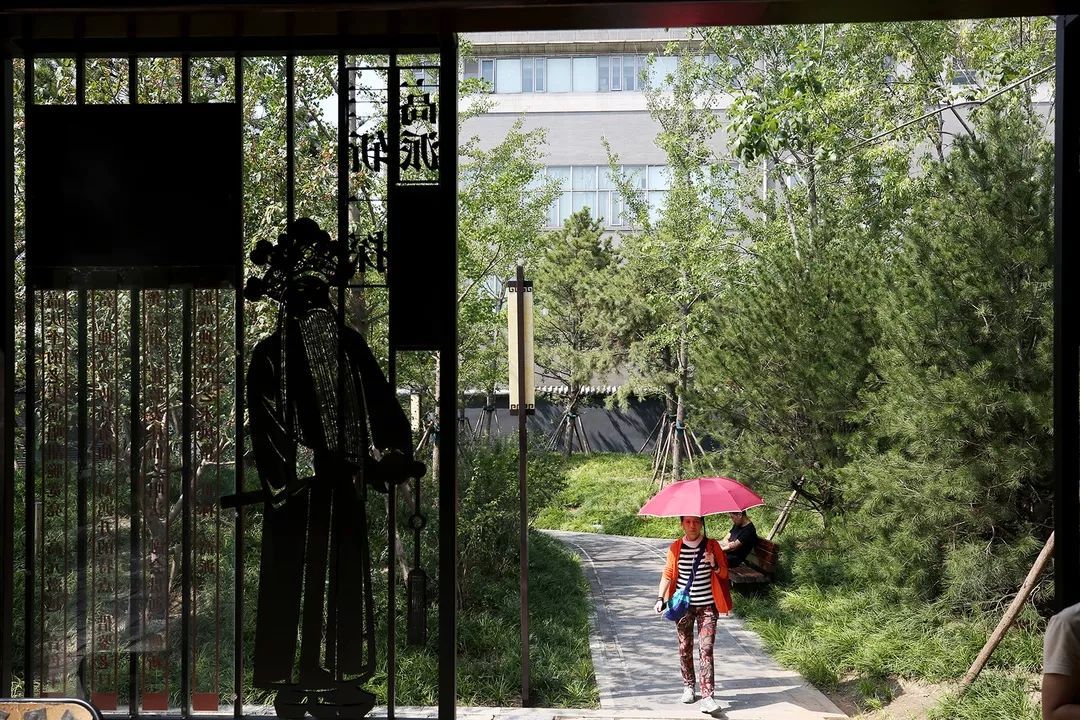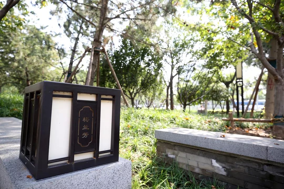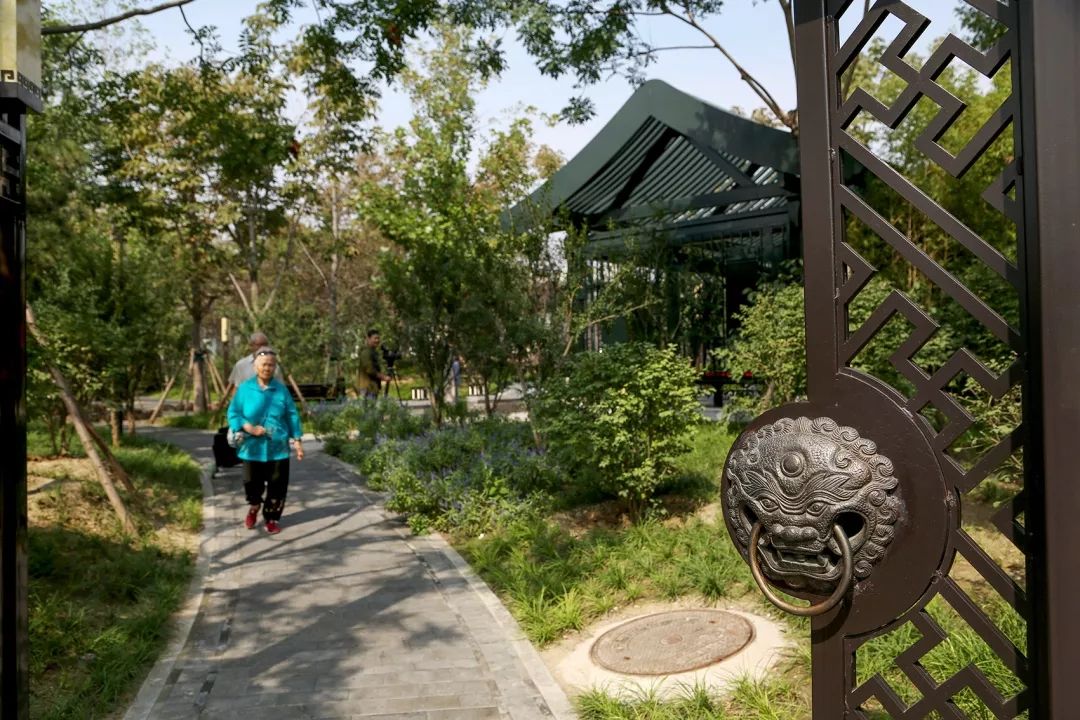 “京韵园”虽小,但是借景纪晓岚故居,背靠大栅栏老街,此处历史上又是京剧发祥地,因此文化底蕴十足。公园内处处可见京剧的身影——三间歇山式敞轩,只有皇家园林公园才有的格局,既可以供平日里几个老友吹拉弹唱,又可以当戏台用;古朴的铁质兽面门环、大理石的下马桩恍似推开了大宅门;马连良、言菊朋、梅兰芳等京剧名家的雕像印在紫藤廊架上,将国粹文化巧妙地融入其中。