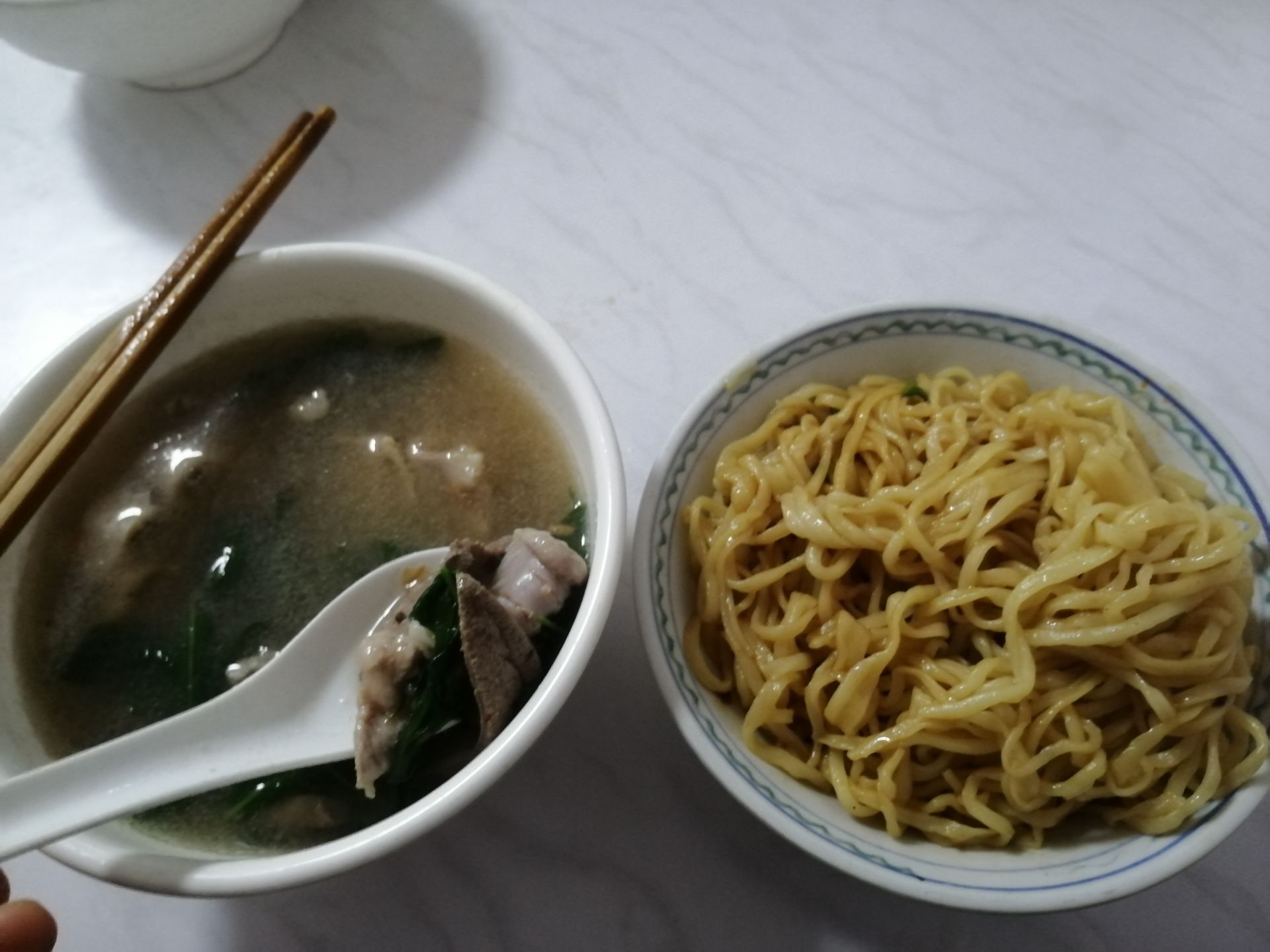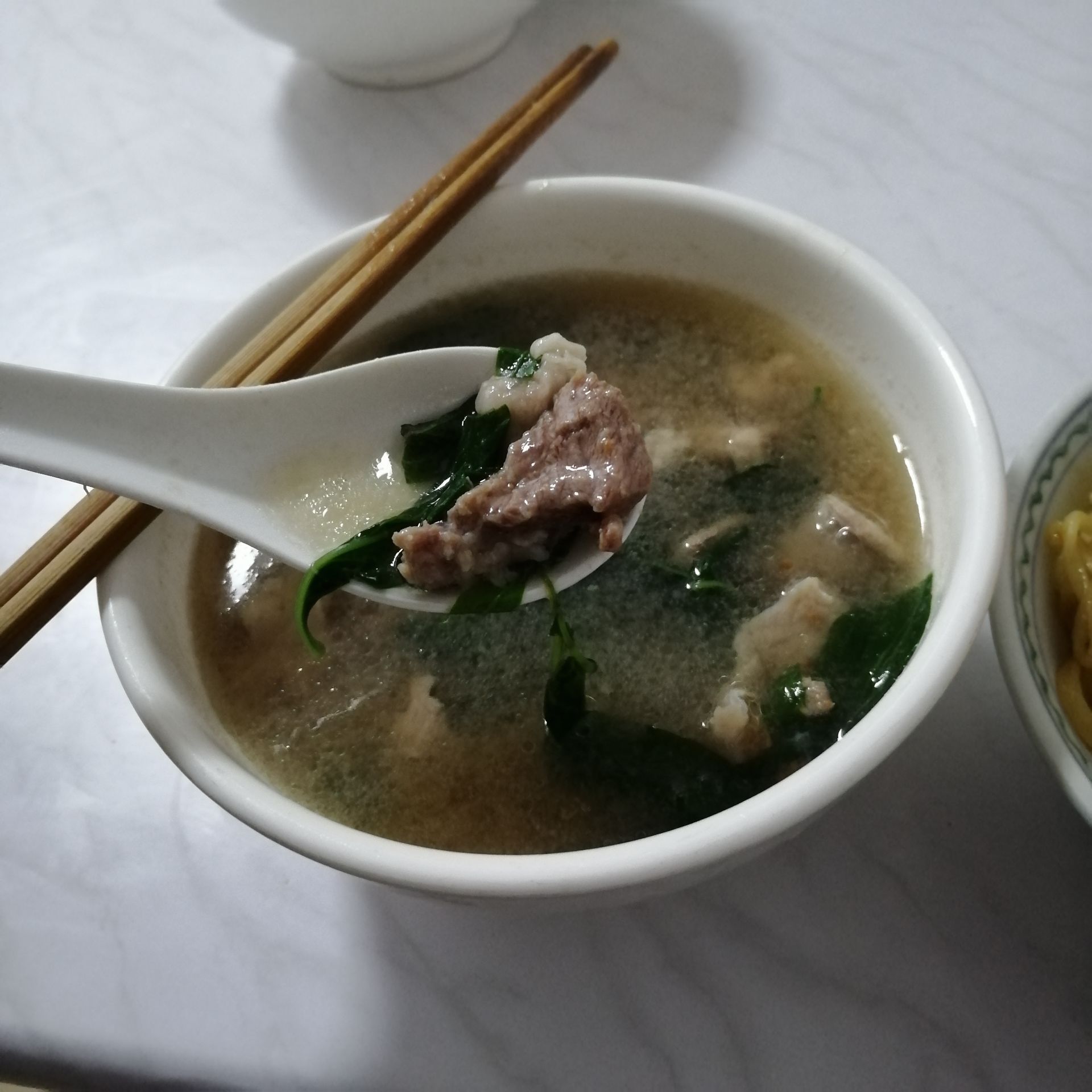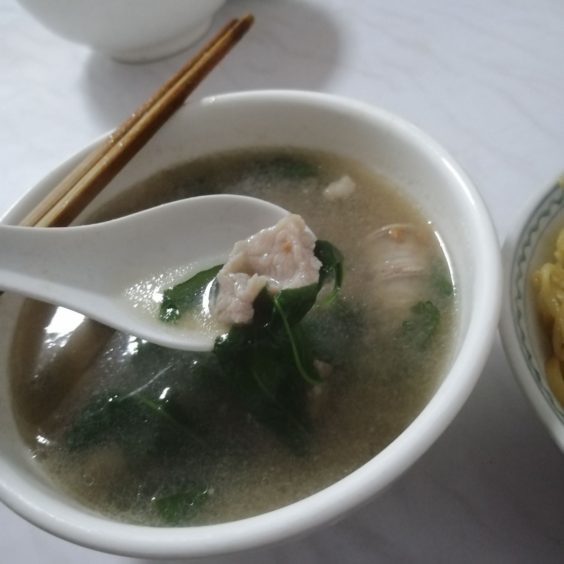 这碗汤也是经典搭档。猪内脏和猪肉片,滑嫩鲜香,枸杞叶第一次吃,入口有点滑滑的,很好吃