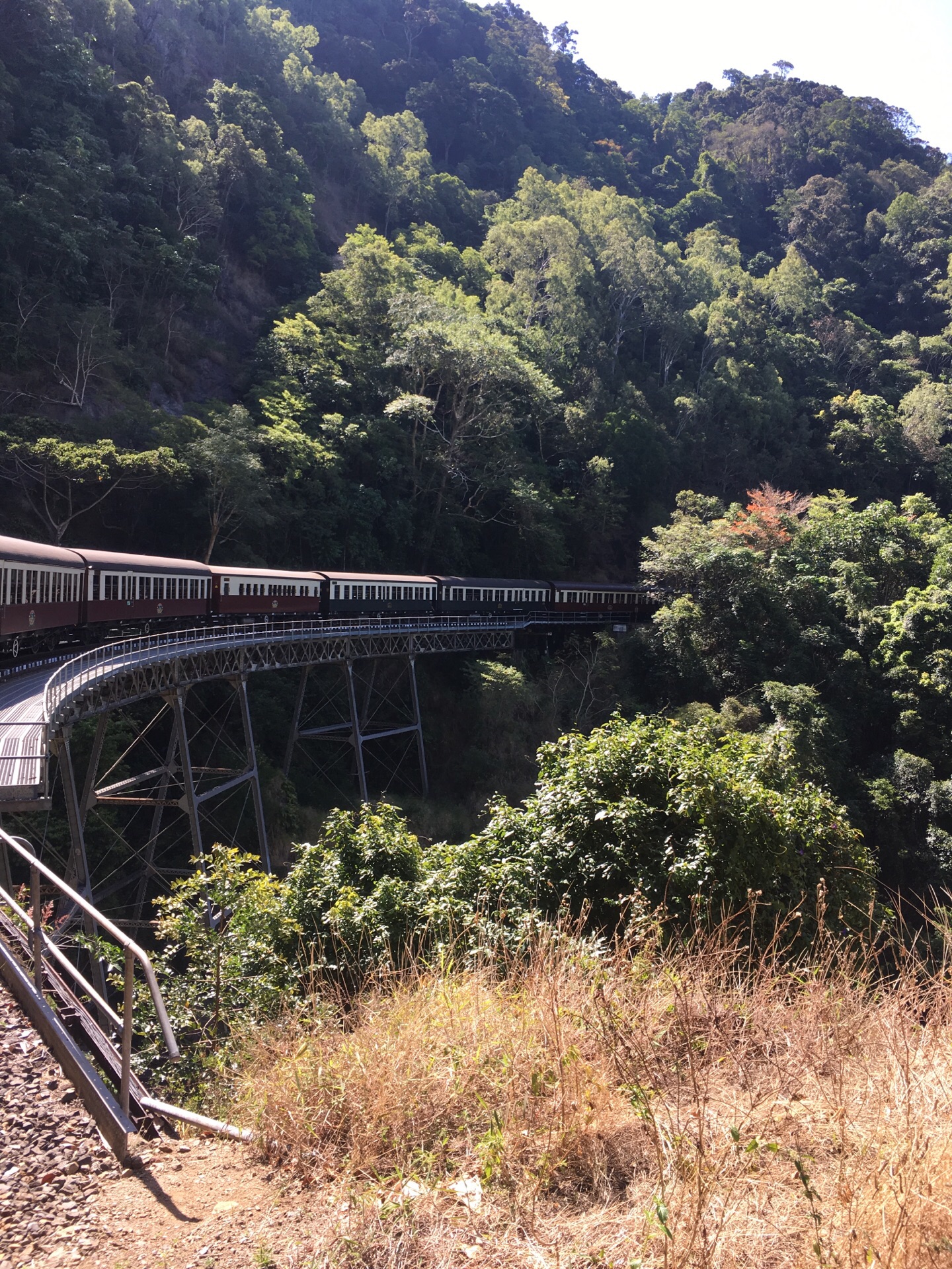 路上风景不错,在大瀑布的地方还会停几分钟让大家下去拍照。非常值得一坐库兰达小火车是从库兰达小镇到凯恩斯的观光火车,全程37公里,大约二个小时左右到达。路上风景不错,在大瀑布的地方还会停几分钟让大家下去拍照。非常值得一坐。
