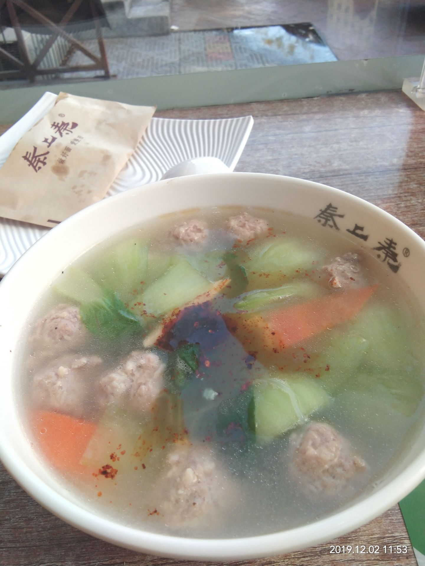 天冷也阻挡不了吃货的脚步,和朋友约个饭饭,秦上秦走起 第一次吃生汆肉丸子,好暖胃,里面还有青菜和胡萝卜片,营养丰富,在寒冷的冬天来一碗,吃的暖暖和和 腊汁肉夹馍,哈哈,俺的最爱,以前喜欢配凉皮,天冷了改丸子汤啦~