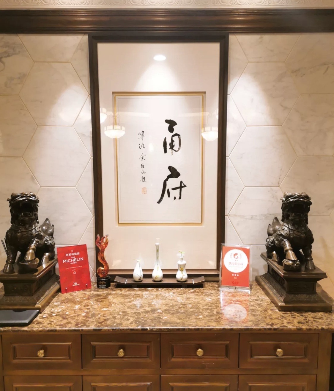 历史,文化,优雅,美味,这个可以这几句话可以描述这家餐厅了。是浙菜,环境很高大上,真的很美丽的,很高档,很喜欢,是米其林餐厅,五星推荐,真的太喜欢了。味道就更不用说了,点的菜都很棒的!都很好吃~很美味。服务人员也都很可爱,很热情的,随叫随到的那种,去之前一定要预约好,不然没位置的。五星推荐,特别的日子去一次这家餐厅,真的幸福感满满的~