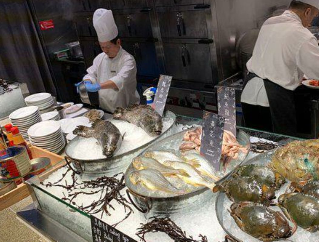 晚餐自助餐的任食龙虾当然是卖点,其它海鲜包括鱼,虾蟹,蚬,鲍鱼等,另蔬菜等,都是可个别点选烹调方法,即叫即做,送到餐桌,所出不要一次过同时要太多,一并上菜吃不完就凉了。推介龙虾汤及龙虾包。日式鱼生虽然种类不算太多,但也很好,个人喜欢甜虾及三文鱼。甜品要试梳乎里,心太软,焦糖椰青。