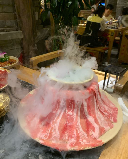 龙头锅,怎么拍都好看,纯牛油锅底+番茄锅底 「花千骨」就是大块的排骨,去之前朋友说是必点系列,肉很大块扎实, 但是入口很嫩的,有惊艳到。 「麻辣牛肉」过了一层厚厚的辣椒,这个也是超级大片的纯牛肉片 「大侠上上签」吃起来很爽,有点辣。 「大侠水牛毛肚」非常新鲜,放下去微微打卷就可以捞出来了,入口q弹爽脆,筋道有嚼劲。 「贵妃牛肉」服务员会帮我们下菜,吃之前倒上牛奶浸泡,牛奶很好锁住肉的 质感