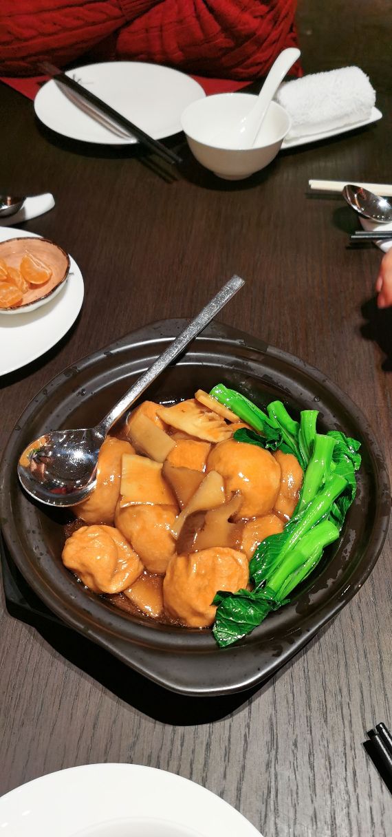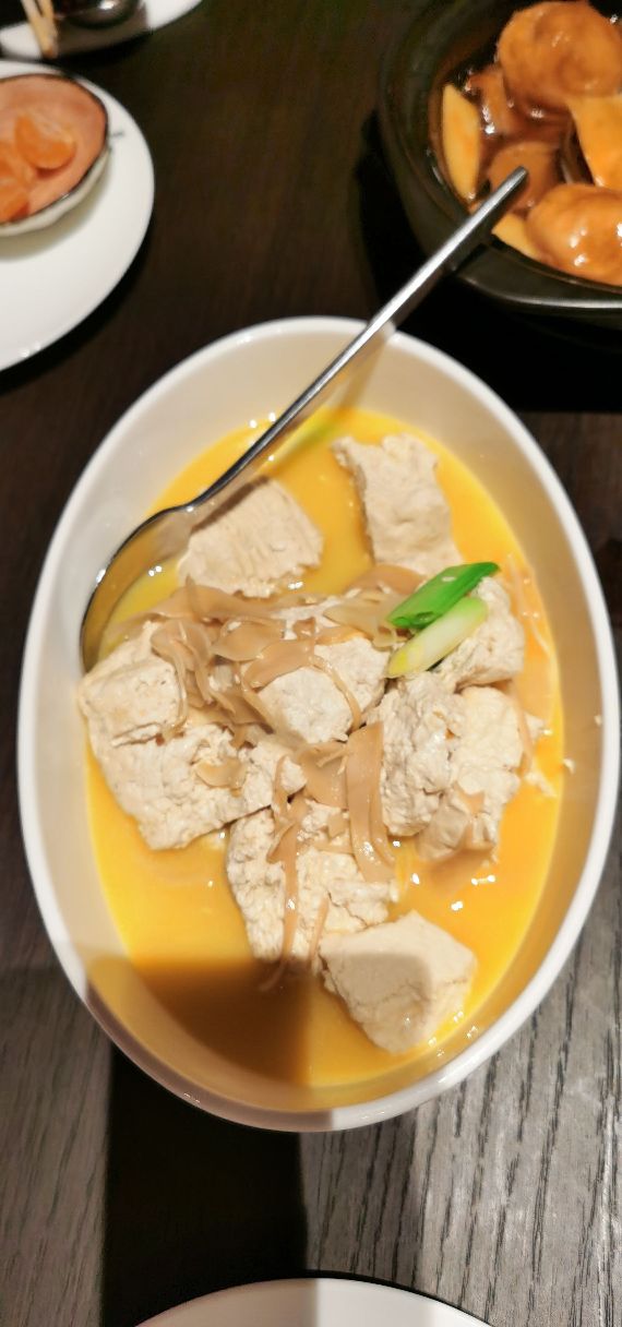 彩丰楼环境很棒,吃饭的人不是很多,菜的品种好像不是很多,看了一下菜单,价格不是很亲民的,点了一份面筋煲,好像是78元,点了一份豆腐也是80左右,味道真心不错,豆腐是那种老豆腐,用鸡汤煨出来的,很鲜美,他们家除了价格贵点其他都不错。