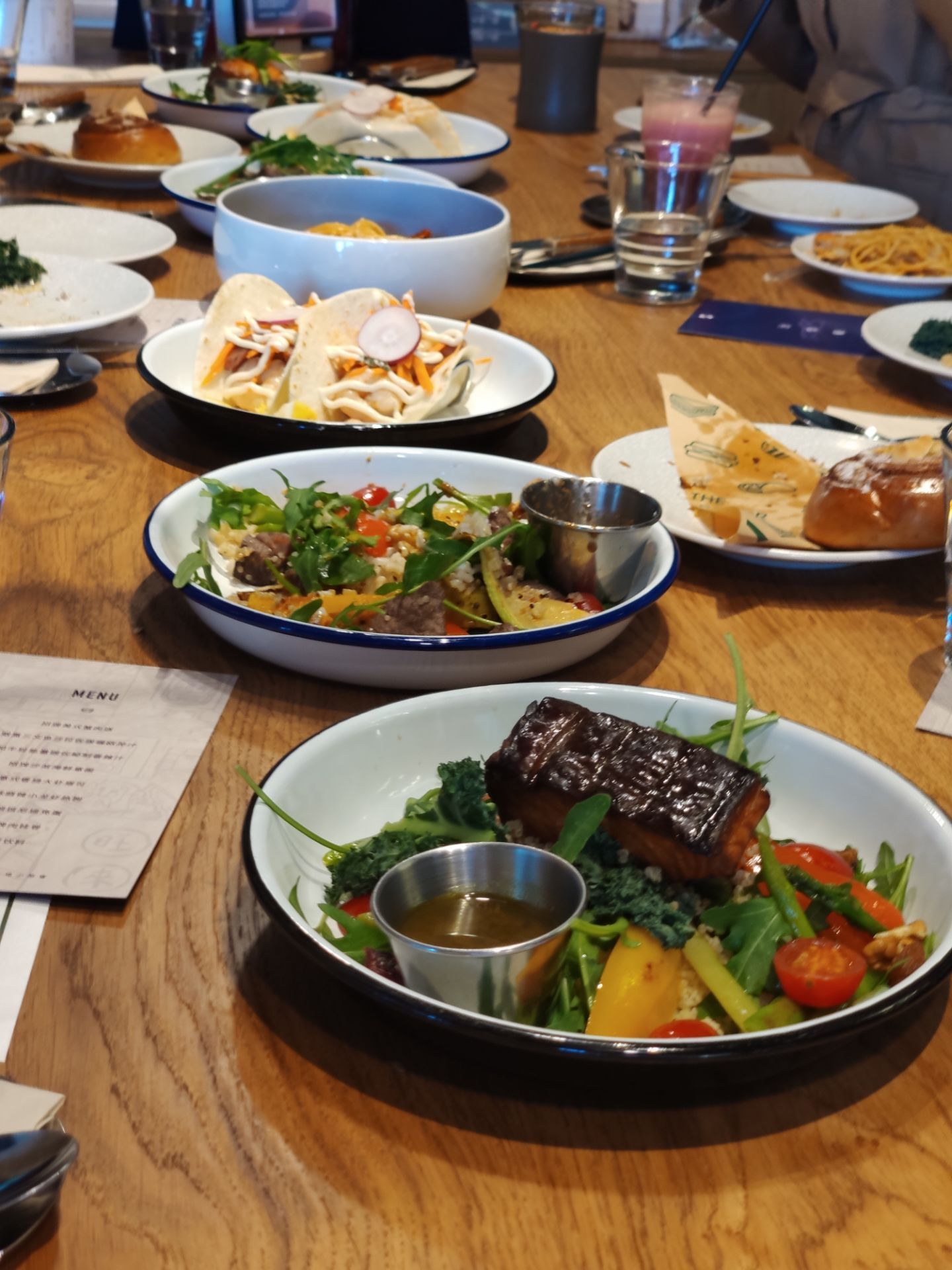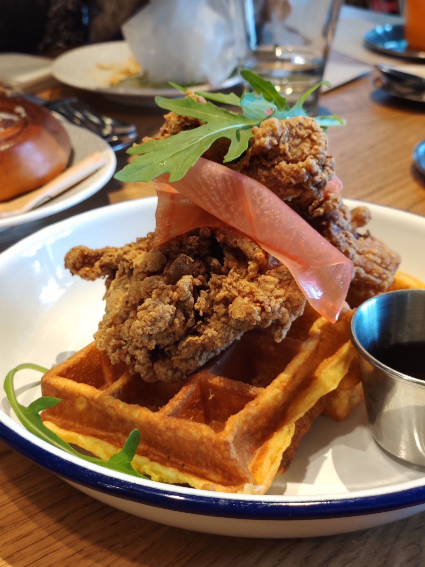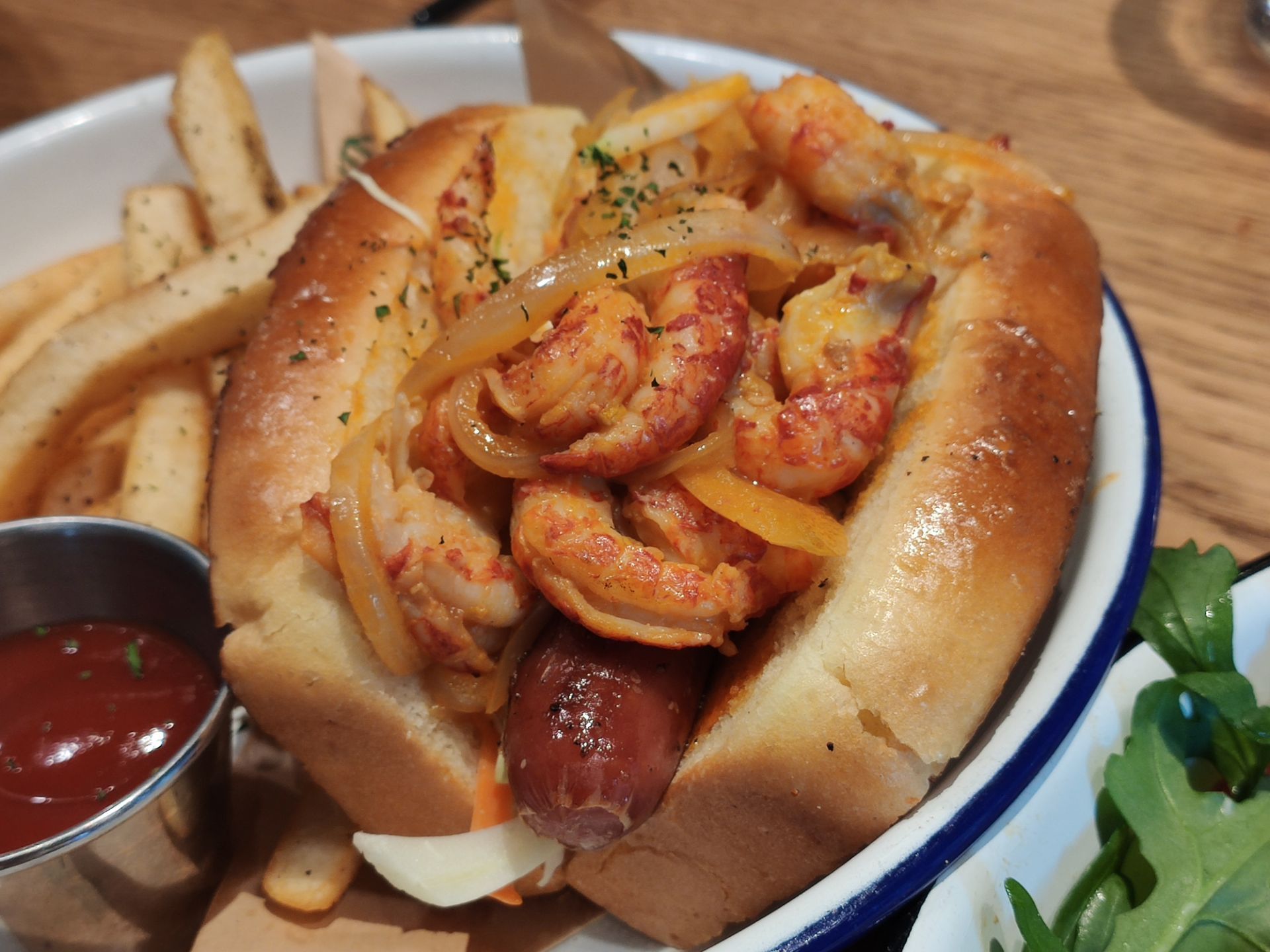 暖冬的周末很适合睡到自然醒,约个小资的西餐于JFC品尚中心,选择The Spoiler Cafe黄石是因为这里有室外的花园,可享受美食又沐浴午间阳光的暖意,更是期待这款朋友安利许久的“沙茶海鲜意面”,当然其他款小吃也深得我意,推荐大家几款哦 【沙茶海鲜意面】不愧是招牌,这款带有闽南本土风味与西式意面完美结合的产物,吃一口就今人爱上,鲜嫩的大虾,Q弹的意面,微微辣的酱汁,融合出意想不到的美味! 【和牛粒能量碗】颜值就不用说了,看到一大粒的牛肉就让人食欲大增,特别说的是他们搭配的蘸酱,现在还意犹未尽,好想偷偷学下配方! 【美式炸鸡华夫】炸鸡香酥脆嫩,鸡汁鲜甜,第一次搭配华夫吃,很有新意也不觉得腻,很神奇的搭法! 【川味麻辣小龙虾热狗】想说中西结合的产物总是让人惊喜,一定要一大口咬下去,才能吃出精髓,单吃小龙虾不会很麻辣感,主要是酱汁融入的面包里再搭上热狗的椒香,你们试试看就知道哦! 【玫瑰海盐卷】面包小尝了一口还是体现出西点师的用心了,搭配一杯咖啡☕ 很是不错,餐后跟朋友坐外面聊聊天,饮品多种选择,挺好的下午茶都搞定啦!