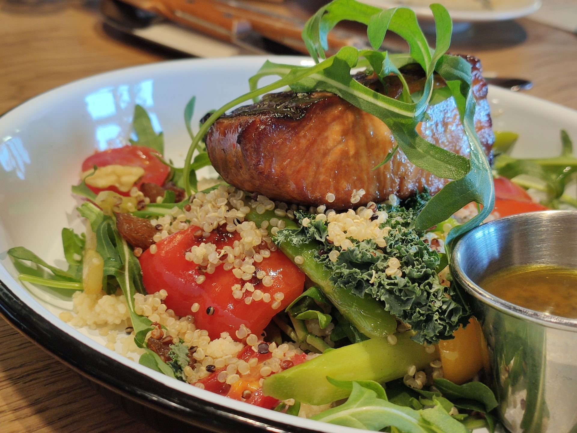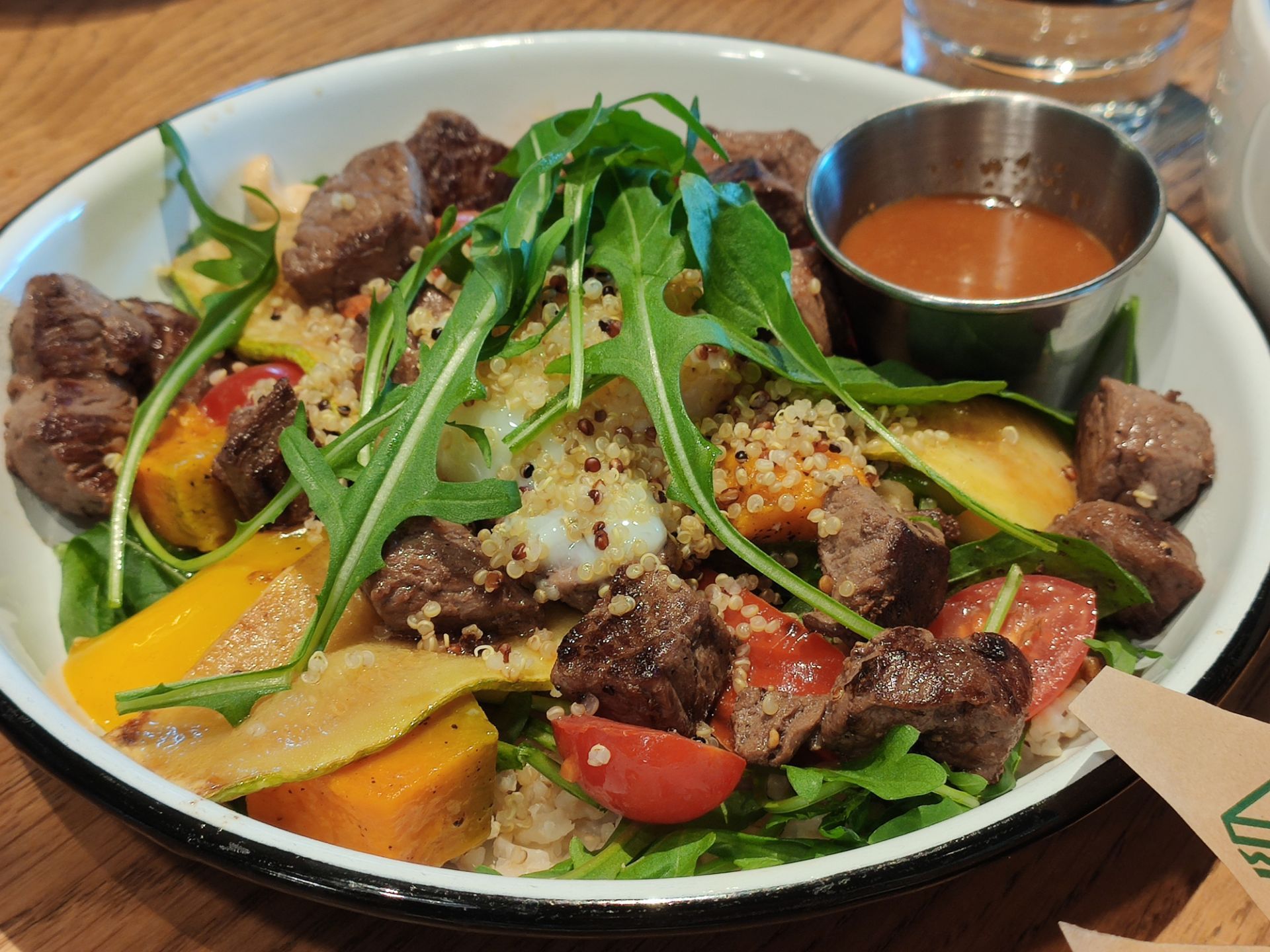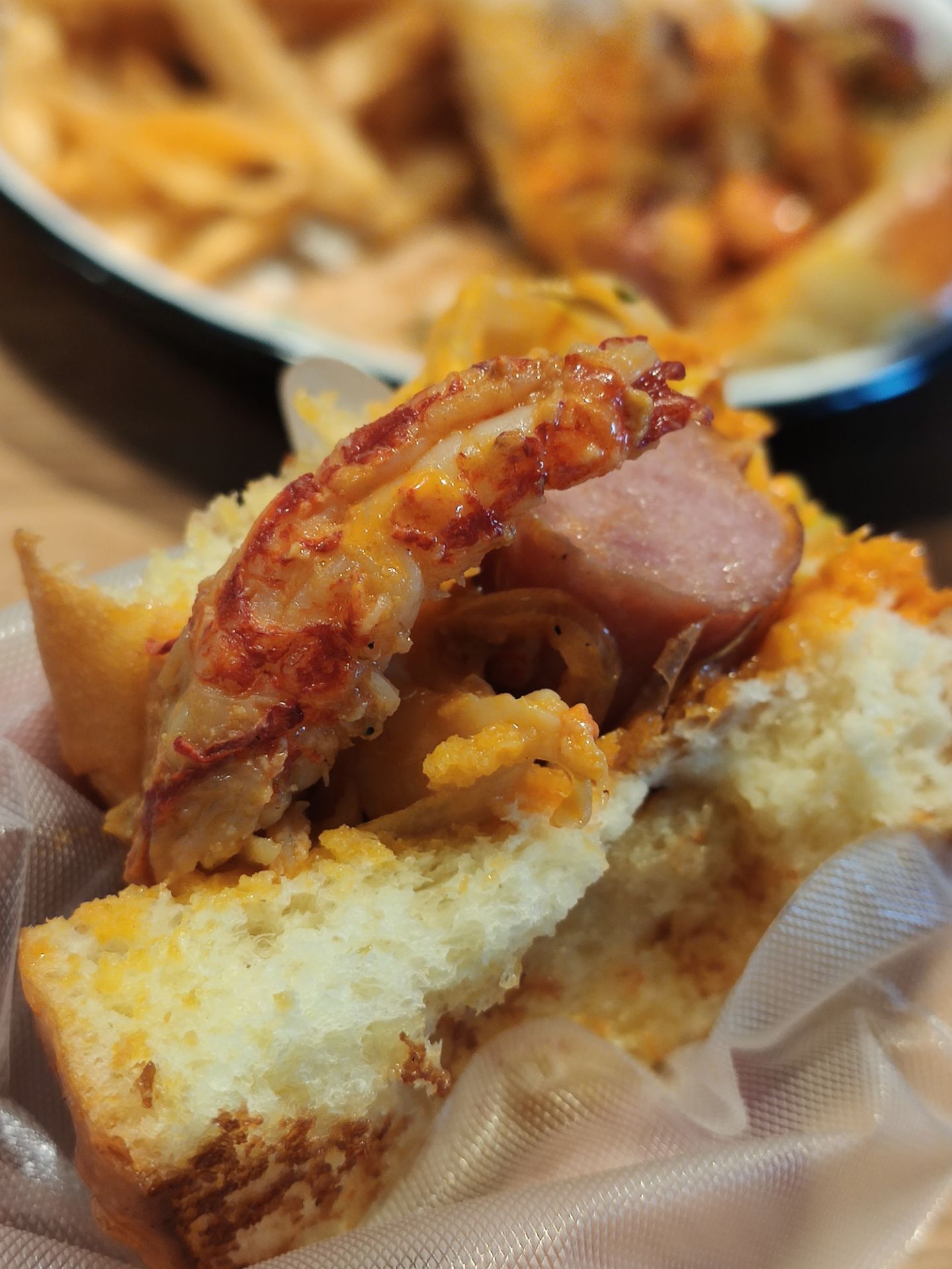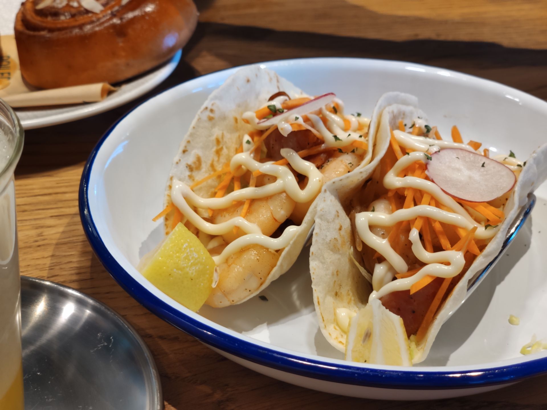 暖冬的周末很适合睡到自然醒,约个小资的西餐于JFC品尚中心,选择The Spoiler Cafe黄石是因为这里有室外的花园,可享受美食又沐浴午间阳光的暖意,更是期待这款朋友安利许久的“沙茶海鲜意面”,当然其他款小吃也深得我意,推荐大家几款哦 【沙茶海鲜意面】不愧是招牌,这款带有闽南本土风味与西式意面完美结合的产物,吃一口就今人爱上,鲜嫩的大虾,Q弹的意面,微微辣的酱汁,融合出意想不到的美味! 【和牛粒能量碗】颜值就不用说了,看到一大粒的牛肉就让人食欲大增,特别说的是他们搭配的蘸酱,现在还意犹未尽,好想偷偷学下配方! 【美式炸鸡华夫】炸鸡香酥脆嫩,鸡汁鲜甜,第一次搭配华夫吃,很有新意也不觉得腻,很神奇的搭法! 【川味麻辣小龙虾热狗】想说中西结合的产物总是让人惊喜,一定要一大口咬下去,才能吃出精髓,单吃小龙虾不会很麻辣感,主要是酱汁融入的面包里再搭上热狗的椒香,你们试试看就知道哦! 【玫瑰海盐卷】面包小尝了一口还是体现出西点师的用心了,搭配一杯咖啡☕ 很是不错,餐后跟朋友坐外面聊聊天,饮品多种选择,挺好的下午茶都搞定啦!