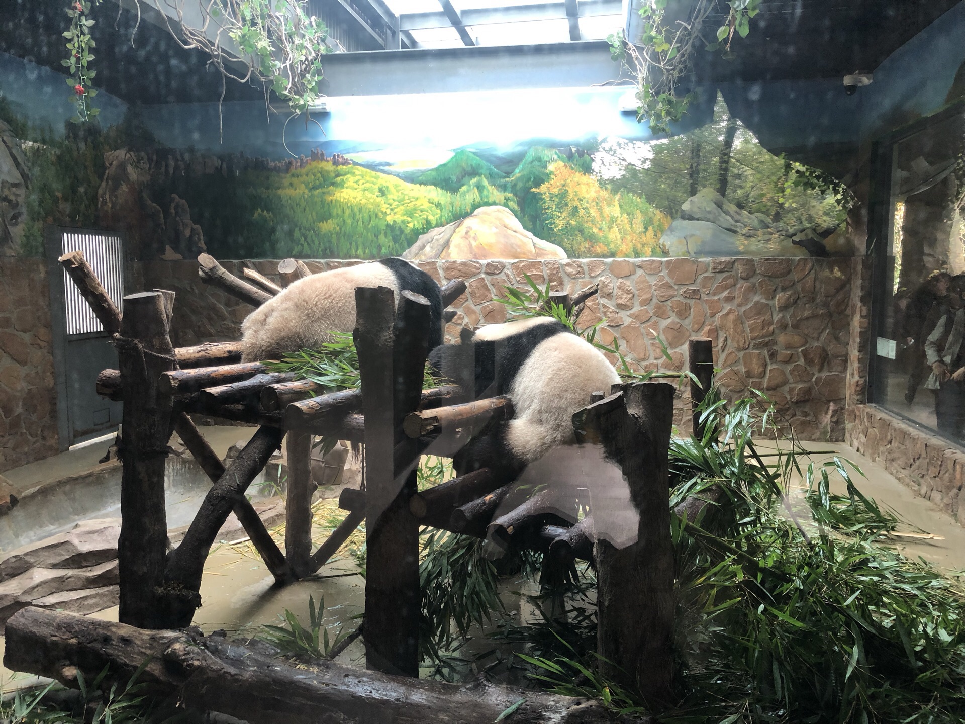 如果是步行参观的话,第一个参观到一号别墅,大熊猫懒懒的躺着。