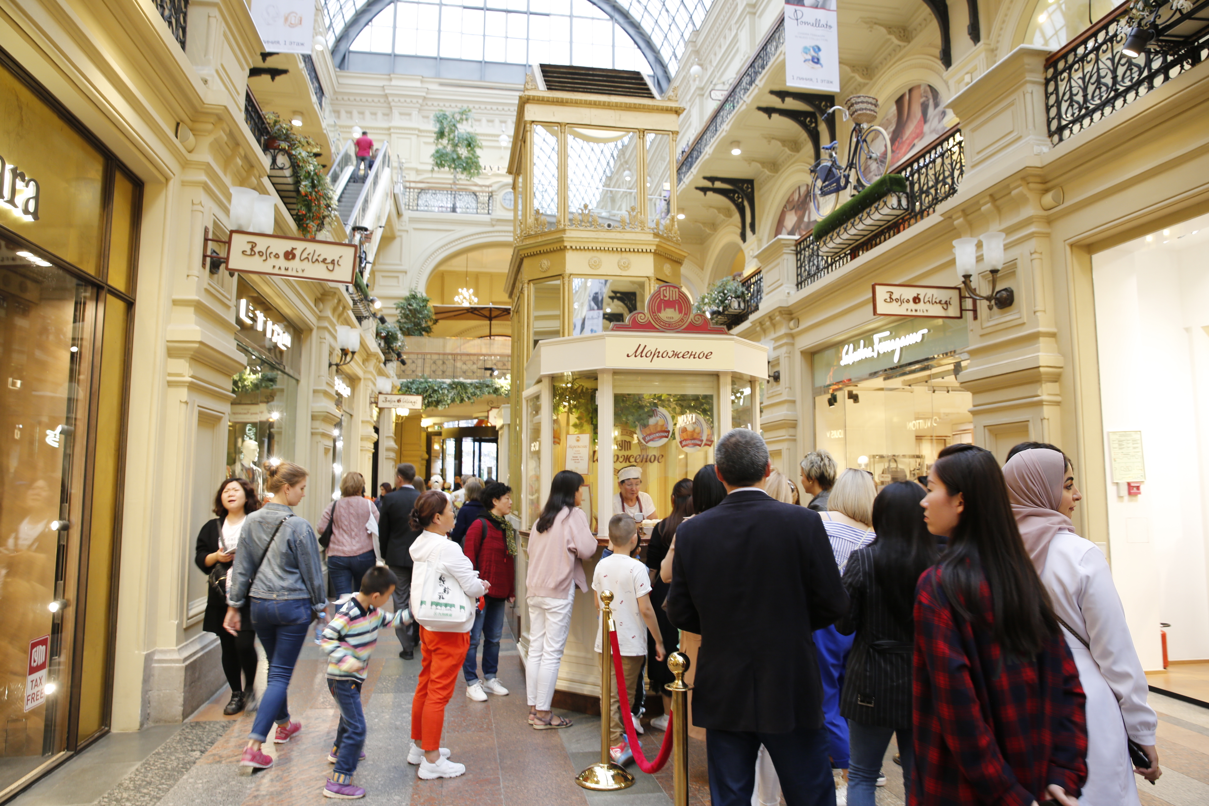 在莫斯科,不得不去古姆百货商场(GUM),这曾是莫斯科最大的国营百货商店,装修得像皇宫般富丽堂皇。虽说主要面向游客消费,商品价格偏贵,但吃个“网红”雪糕、来一顿俄罗斯特色简餐、休闲地喝一杯下午茶,还是值得体验的!值得一提的是,商场有免费和收费的洗手间,有一个特别用中文标明的豪华版洗手间,收费150卢布,主要是给好奇宝宝去消费的。