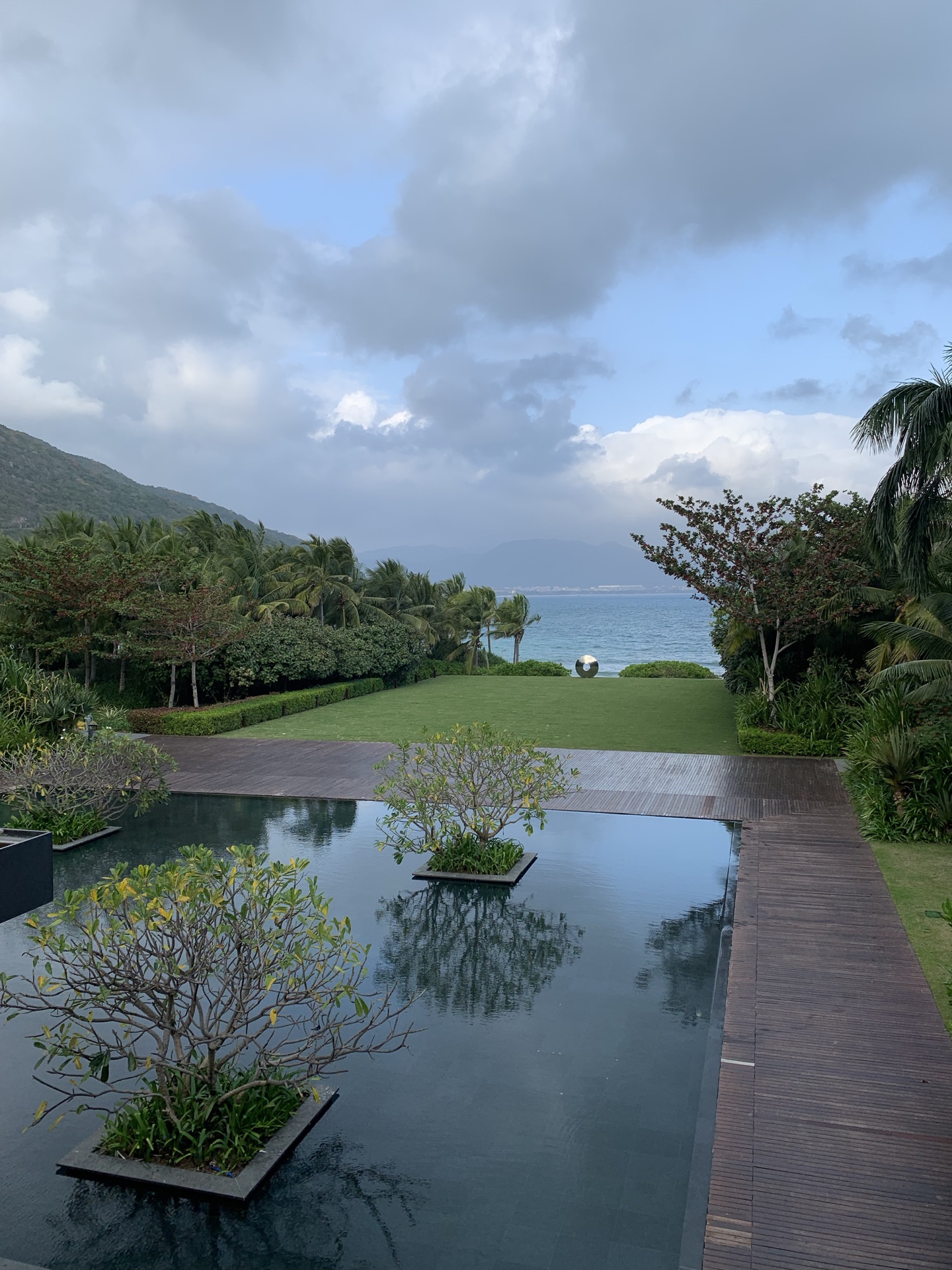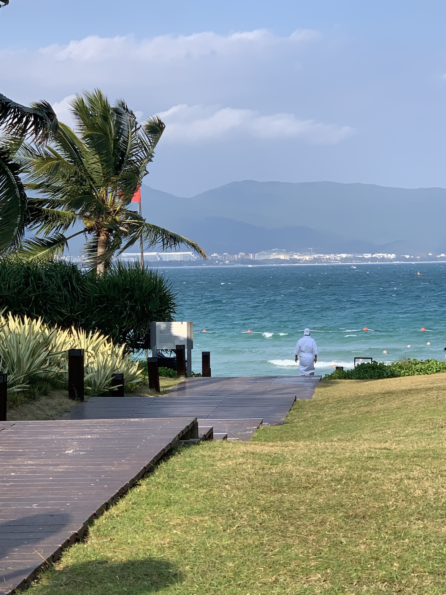 奢华大气的柏悦酒店大隐于太阳湾。2栋高层房间面朝大海,共有7栋,大堂在6层,餐厅和泳池在2层。室外泳池有130米,很漂亮。酒店里有韩国、香港大师的艺术作品。早餐还不错,兼顾西式和中式,可以用餐到11点,品尝到新鲜的椰青。