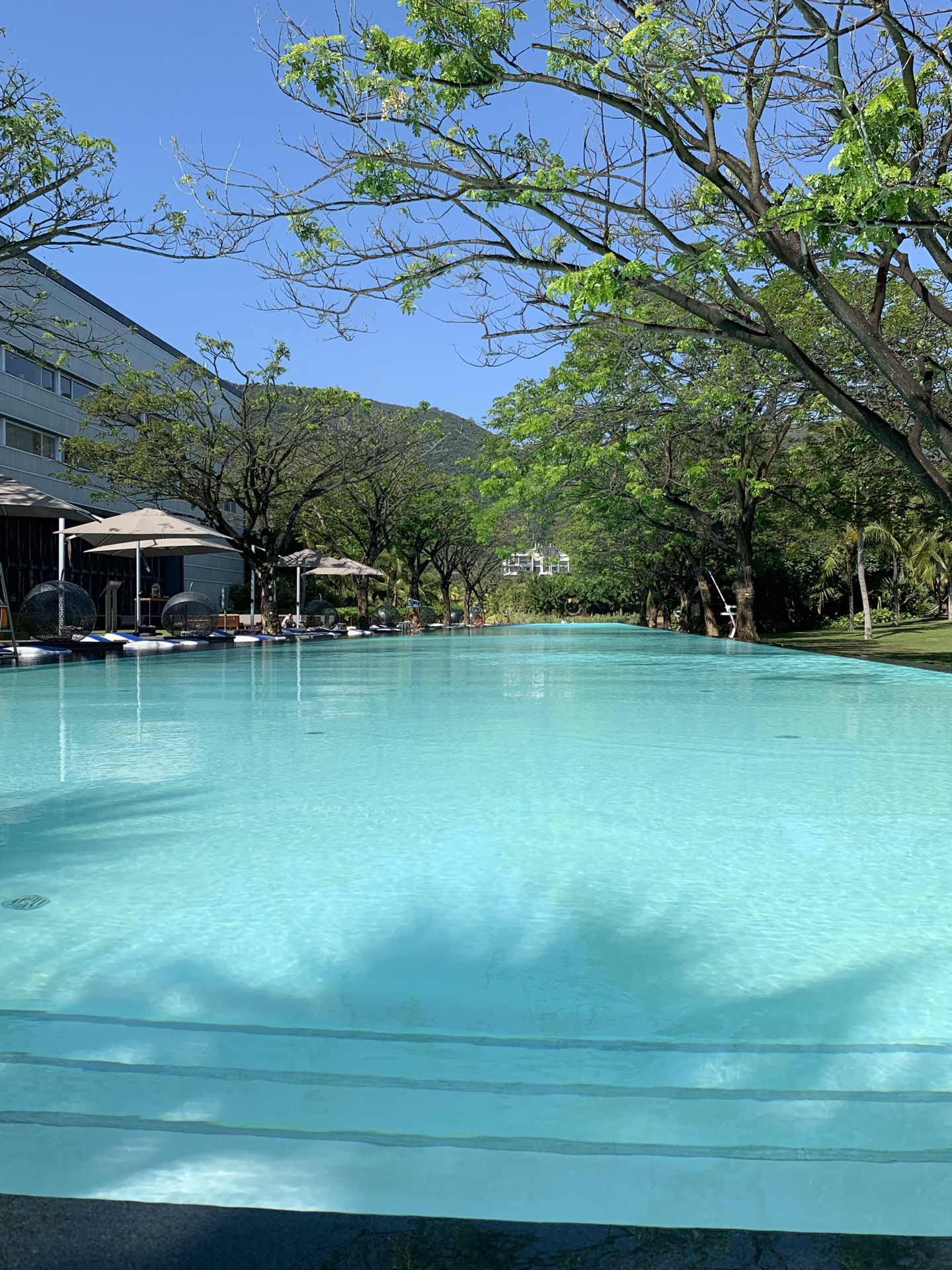 早餐还不错,兼顾西式和中式,可以用餐到11点,品尝到新鲜的椰青。室外泳池有130米,很漂亮