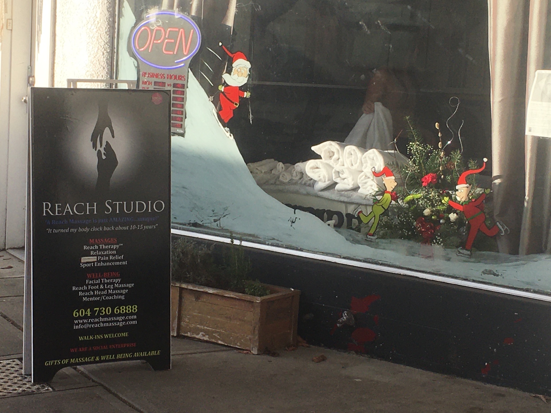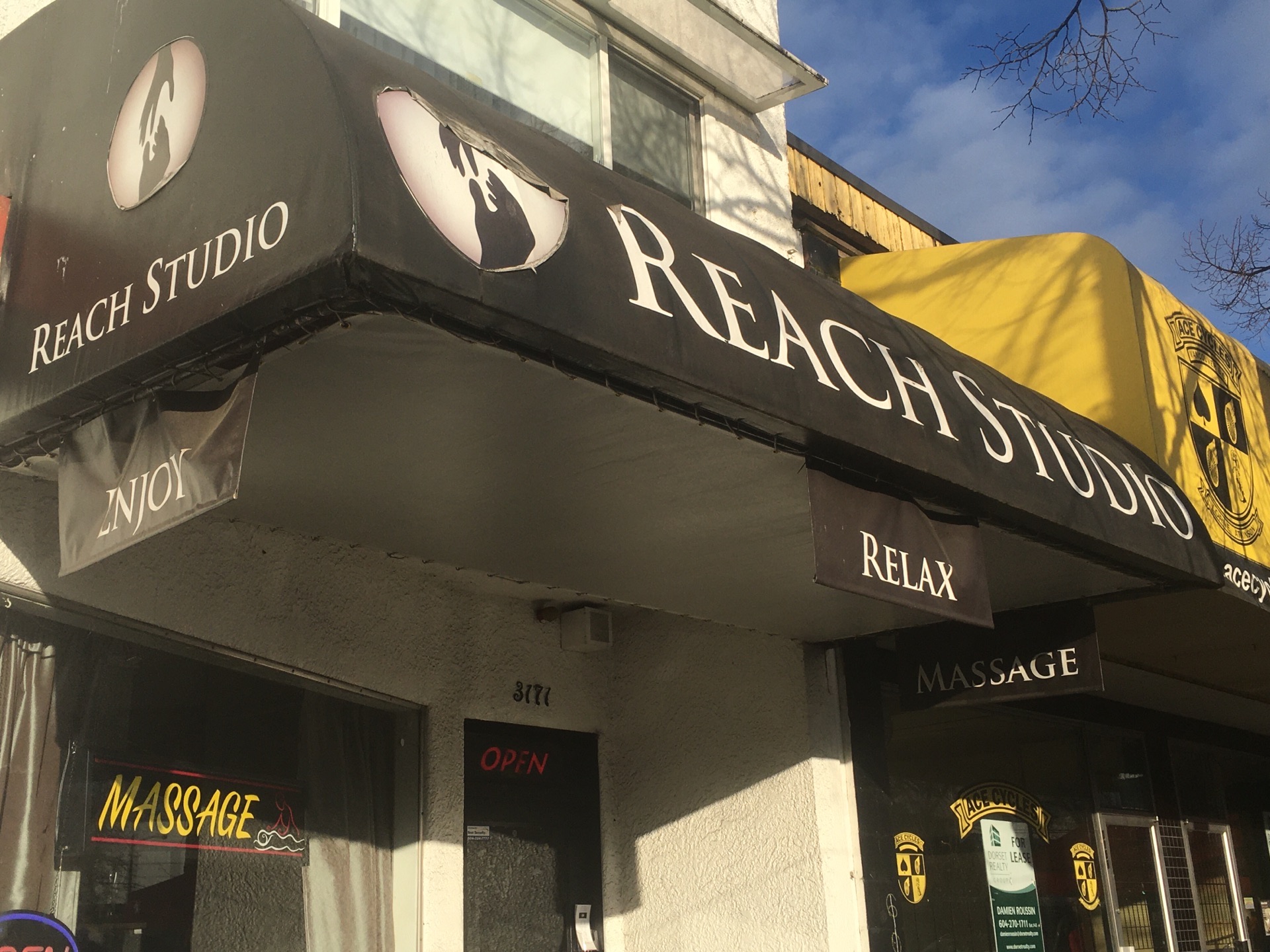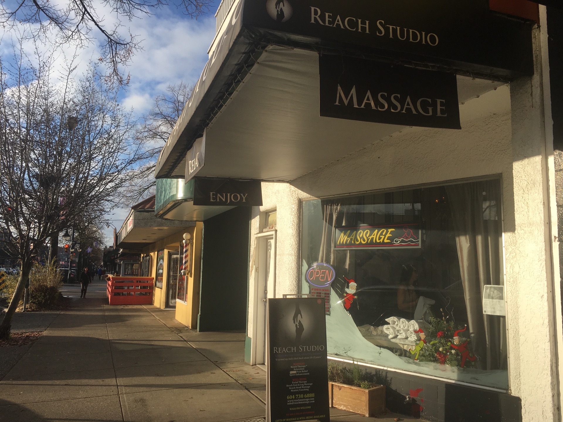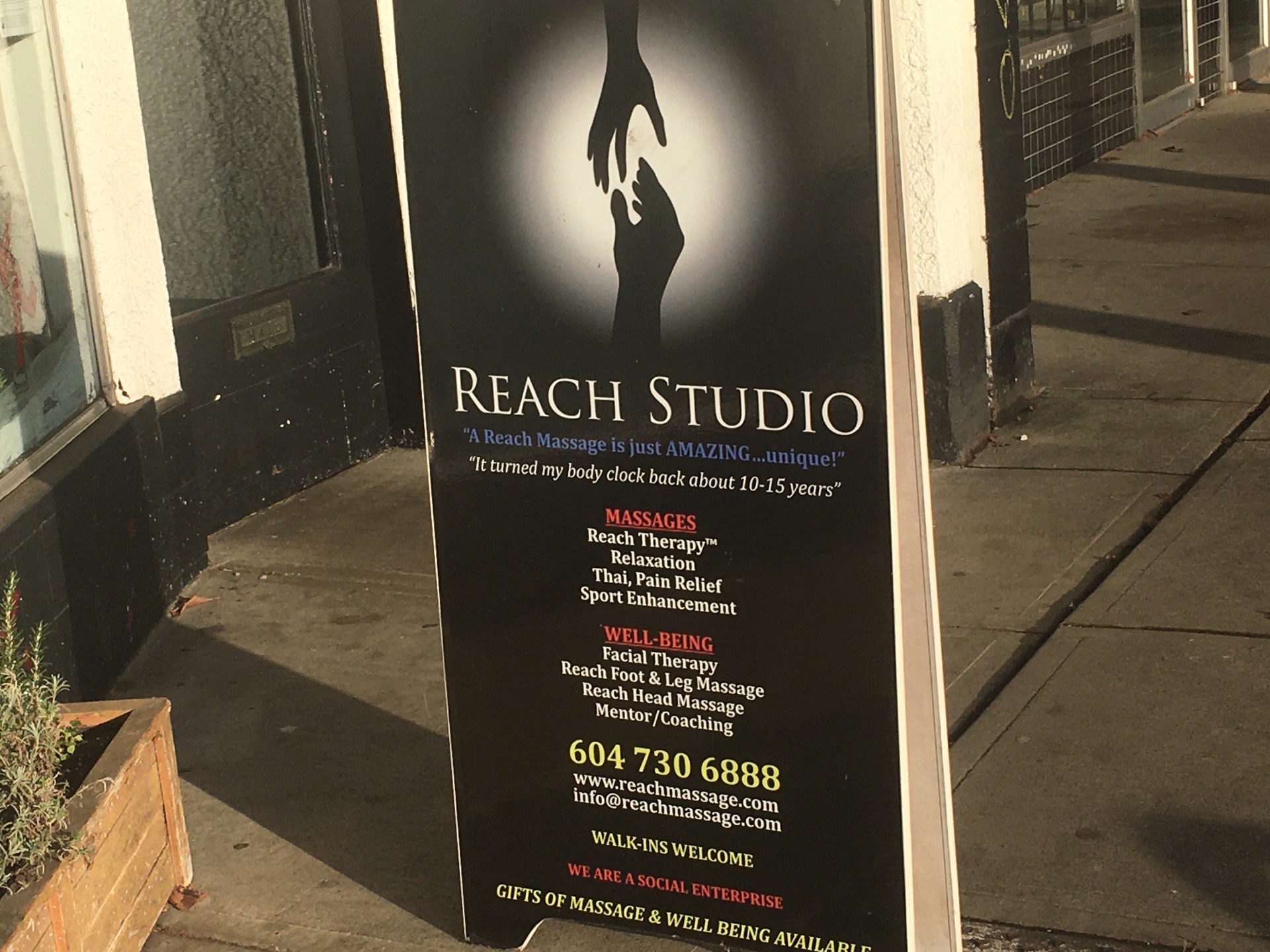 Reach Stuio的主要业务写得很清楚:Massage(按摩)。可以不需预约Reach Stuio的主要业务写得很清楚:Massage(按摩)。这里有泰式按摩、脸部按摩、足部按摩、手部按摩。可以不需预约。