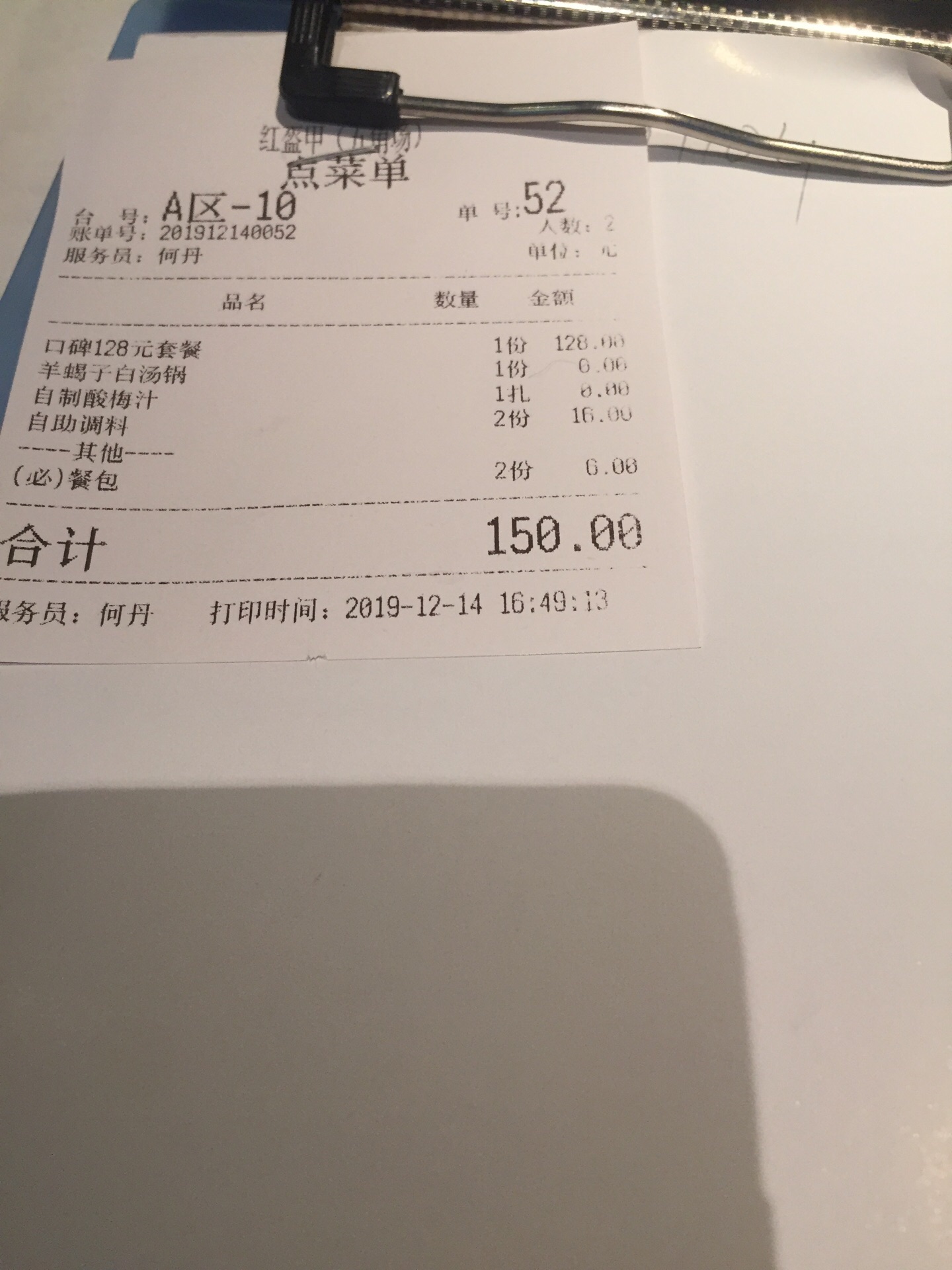 红盔甲 1)店面位置: 位于创智天地靠近迪卡侬的位置,江湾体育场站13号口。 2)店面特色: 主营小龙虾、蟹料理、海鲜、羊蝎子火锅为主的连锁主题餐厅。 招牌有椒盐濑尿虾、 经典咸蛋黄龙虾、经典秘制龙虾 、 羊蝎子火锅、 金牌花蛤 、 蒜蓉烤带子、 自制酸梅汁 、蒜蓉烤生蚝等。 3)店面环境: 店面很宽敞,装修风格酒吧风格,餐桌上有摆放整齐的一次性手套、纸巾; 有内置卫生间;明厨亮灶,墙上有很多电视机播放维秘天使的show,挂墙显示器有后厨影像实时记录。 4)店家服务: 店员比较细心,随叫随到; 入座发放围裙,女生绑头发的皮筋。 就餐期间主动更换骨碟,及时跟进锅里的汤是否煮干加汤; 吃完有擦屏湿巾和口香糖赠送。 5)用餐体验: 点单后出单速度加快。 羊蝎子火锅是北京景泰蓝铜火锅样式,羊蝎子即羊的脊梁骨是提前焖制好的,开锅既可以吃。 羊龙骨肉质细嫩,肉干香而不腻,,口味微辣以上,汤浓香而不膻。 汤底有配菜白菜、红枣、枸杞、笋等,比较浓郁。 6)餐饮价格: 人均100元左右,调料9元一位,餐具2元一包。