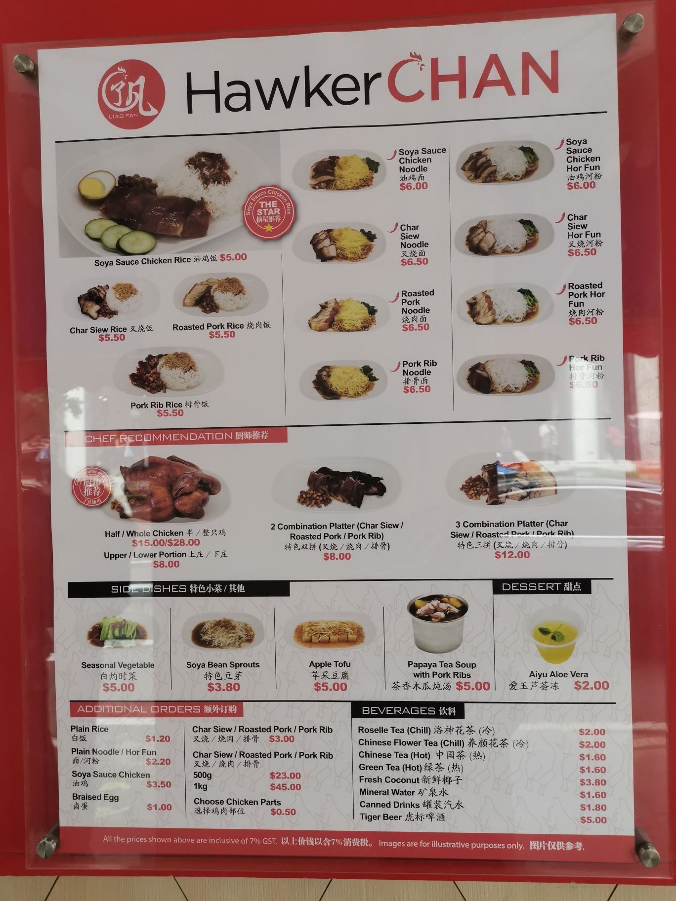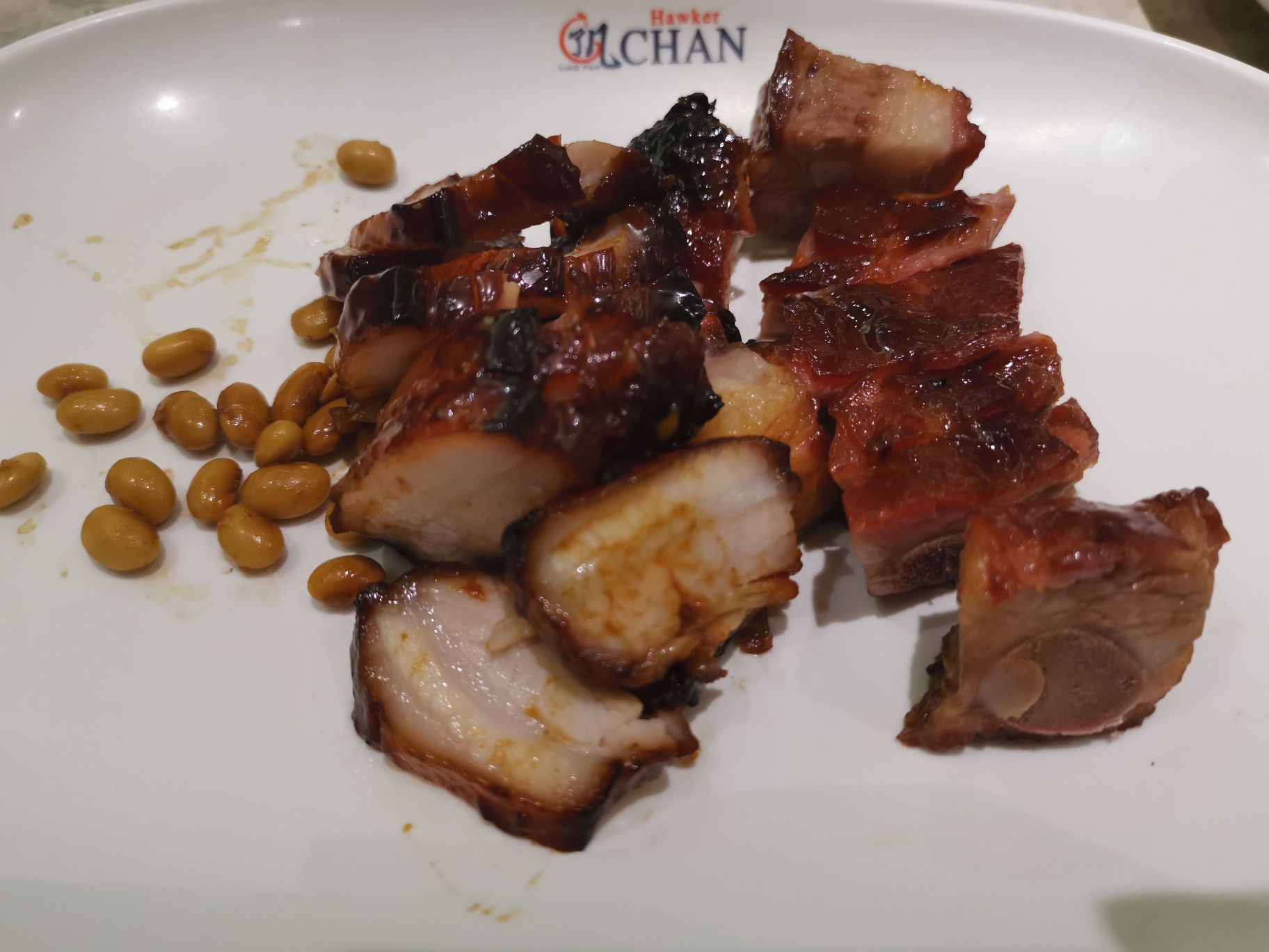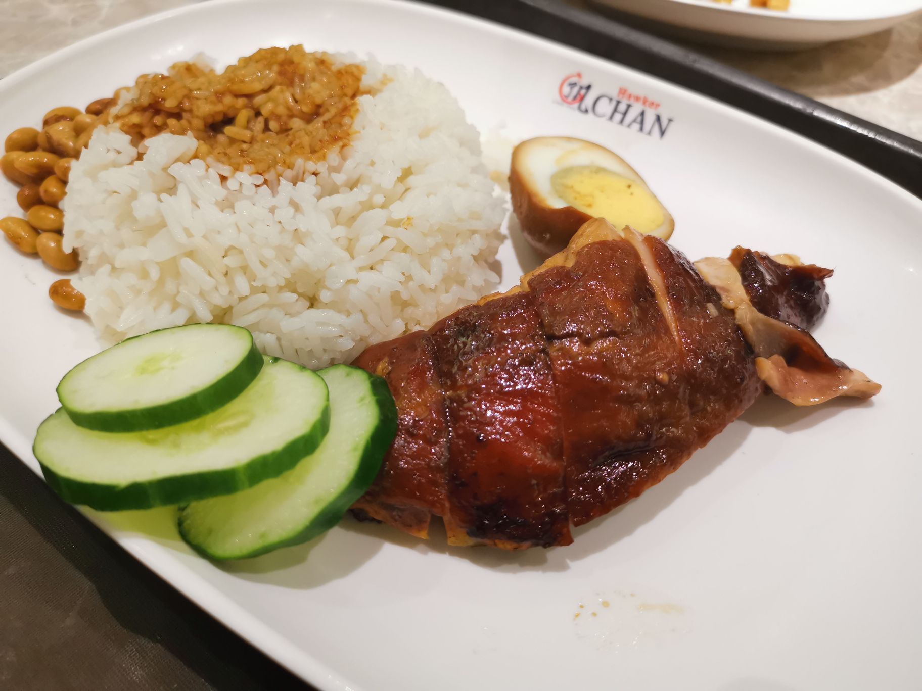 号称最便宜的米其林一星呢,先点餐付钱再落座等叫号,自己取餐。 招牌油鸡饭只要5新币,烧腊双拼也要8新币,两个人点两个套餐再加双拼差不多人民币90块,以新加坡的物价来说确实很便宜了。而且它家最近用美国运通卡还可以返现20%,超划算。 鸡肉肉质嫩,叉烧肥肉稍微多了一些,配的小菜辣椒也深得我心