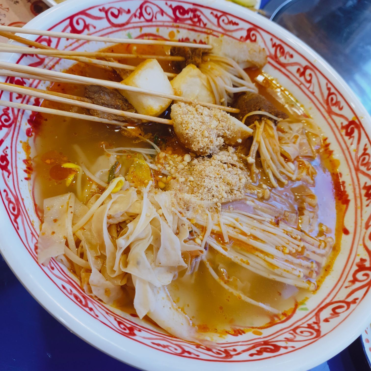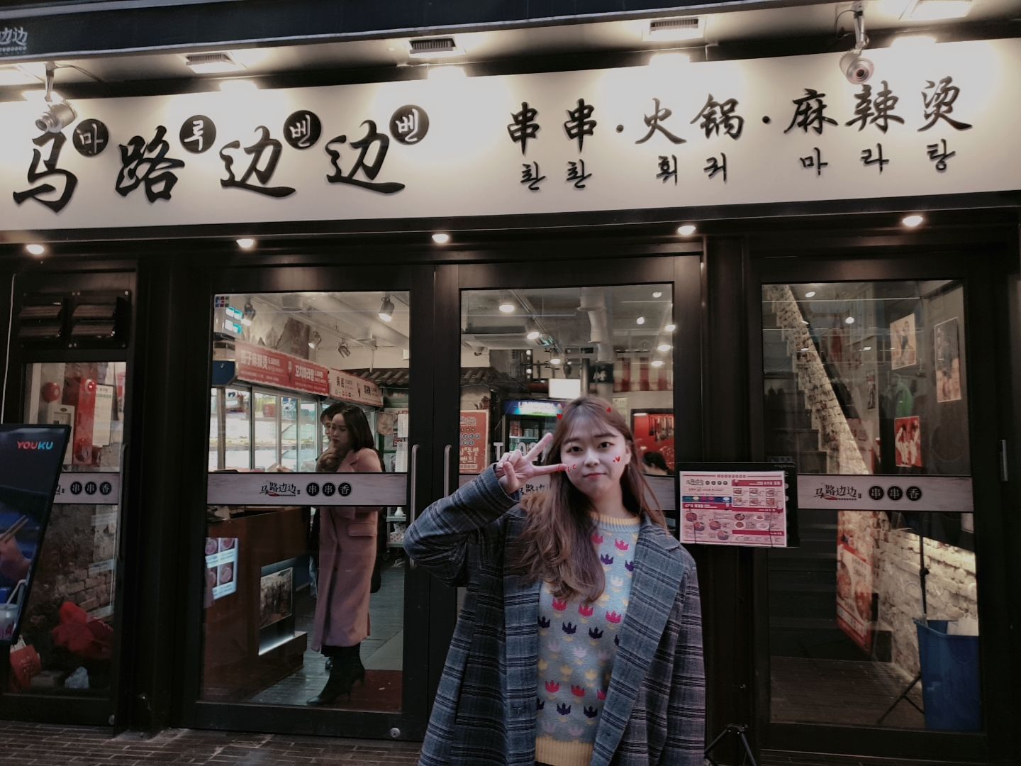 每次去明洞都会去吃各种美食 上次去的时候我发现了一家串串店~马路边边 店里风格是那种文艺怀旧风 他家有小火锅。还有麻辣烫。还有炒面 味道都超级棒 价钱也不贵 就是翻译韩语怪怪的~ 마루벤벤???벤벤??? 哈哈。不细想, 吃就完了~ [/cp]