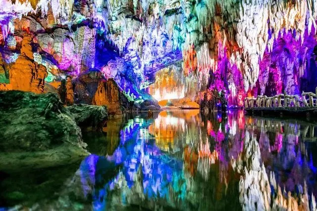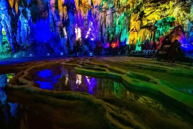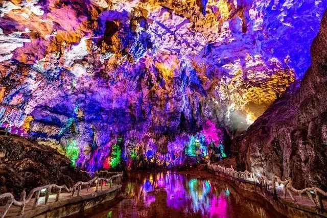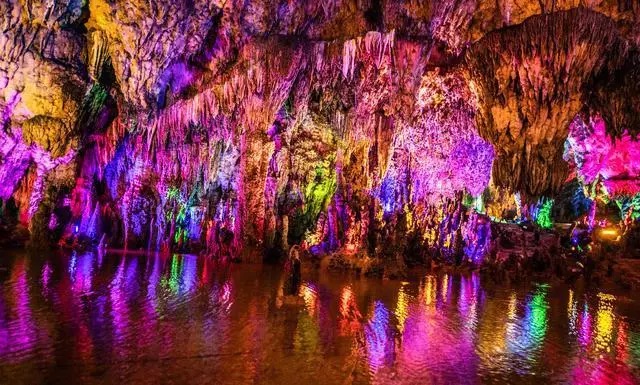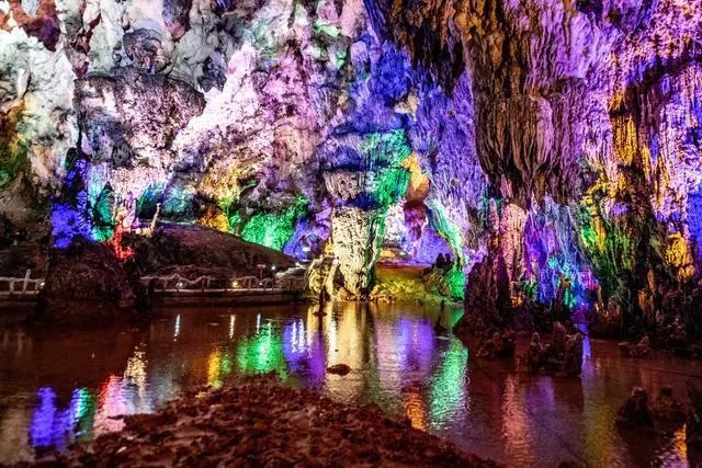 广西吉星岩溶洞位于一座深山之中,走进的途中还会听到山间涓涓细流的声音,仿佛与自然融合在一起一样,让人感到十分的舒适。来到吉星岩溶洞的洞口,很多人都会感到惊讶,明明是一座深山,却有着如此开阔的溶洞,很是神奇。