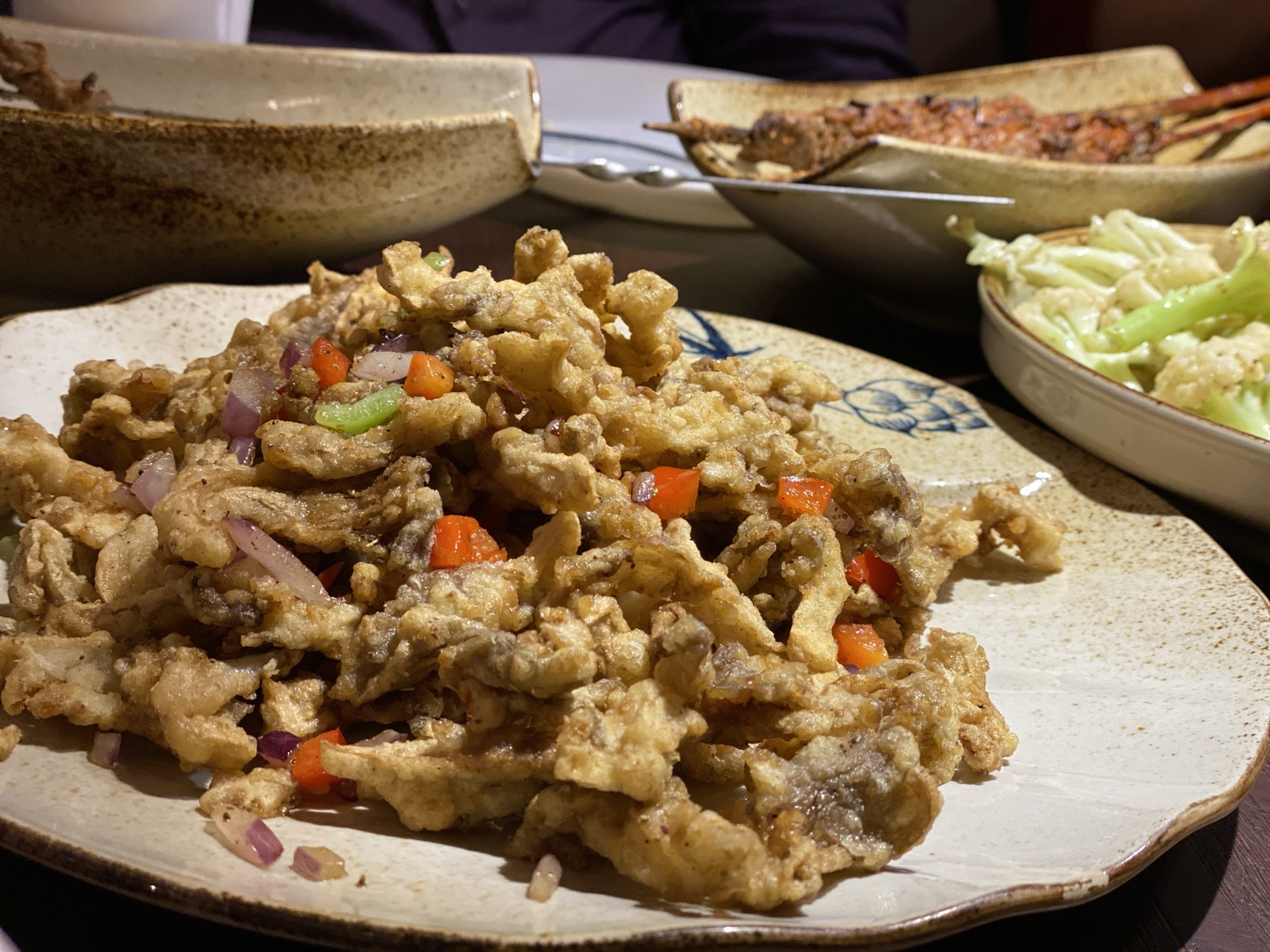 ...般 有点老 但是烤馕非常好吃 那个面包烤肉是最爱 另外就是茶水是甜的 没有不甜的 这个有点糟心非常地道的新疆菜 量也够大 推荐炸蘑菇 羊肉串其实一般 有点老 但是烤馕非常好吃 那个面包烤肉是最爱 另外就是茶水是甜的 没有不甜的 这个有点糟心