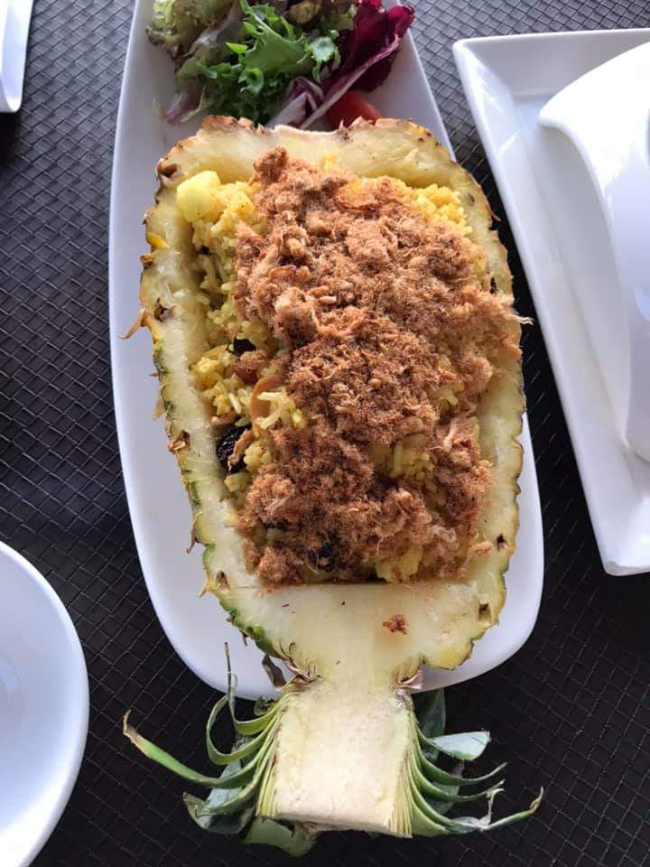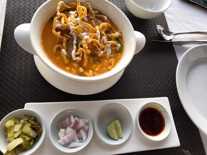就在清迈的ping河的河畔,一派田园风光,从餐厅望出去,景色非常优美,菜品以泰国美食为主,味道还不错,混合了不少西餐的做法。很新颖也很好吃。