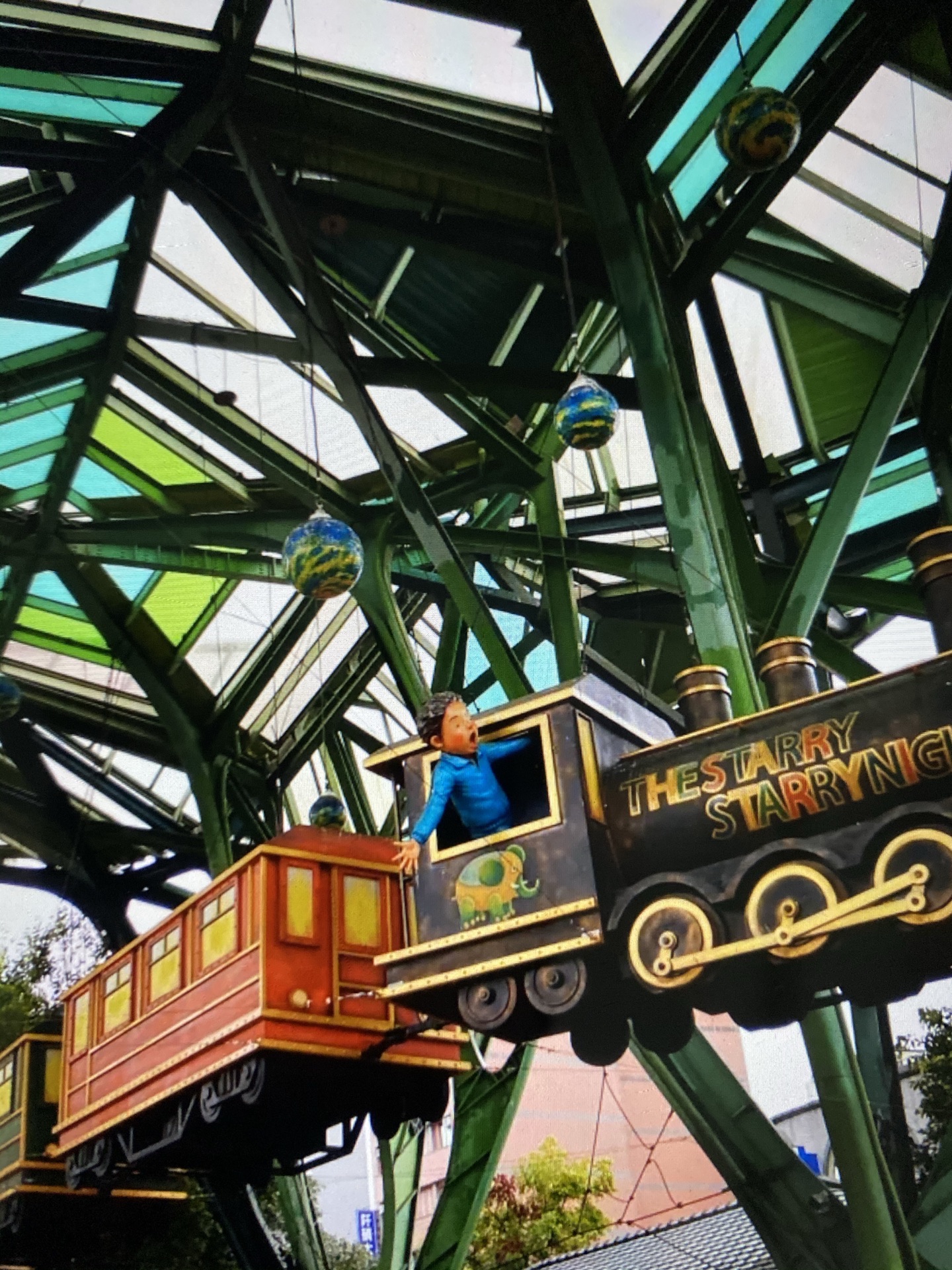 专门去就没啥必要了,这是一片人造钢铁森林,一辆星空列车就悬挂在铁棚顶上,有九棵铁树支撑着,这是...