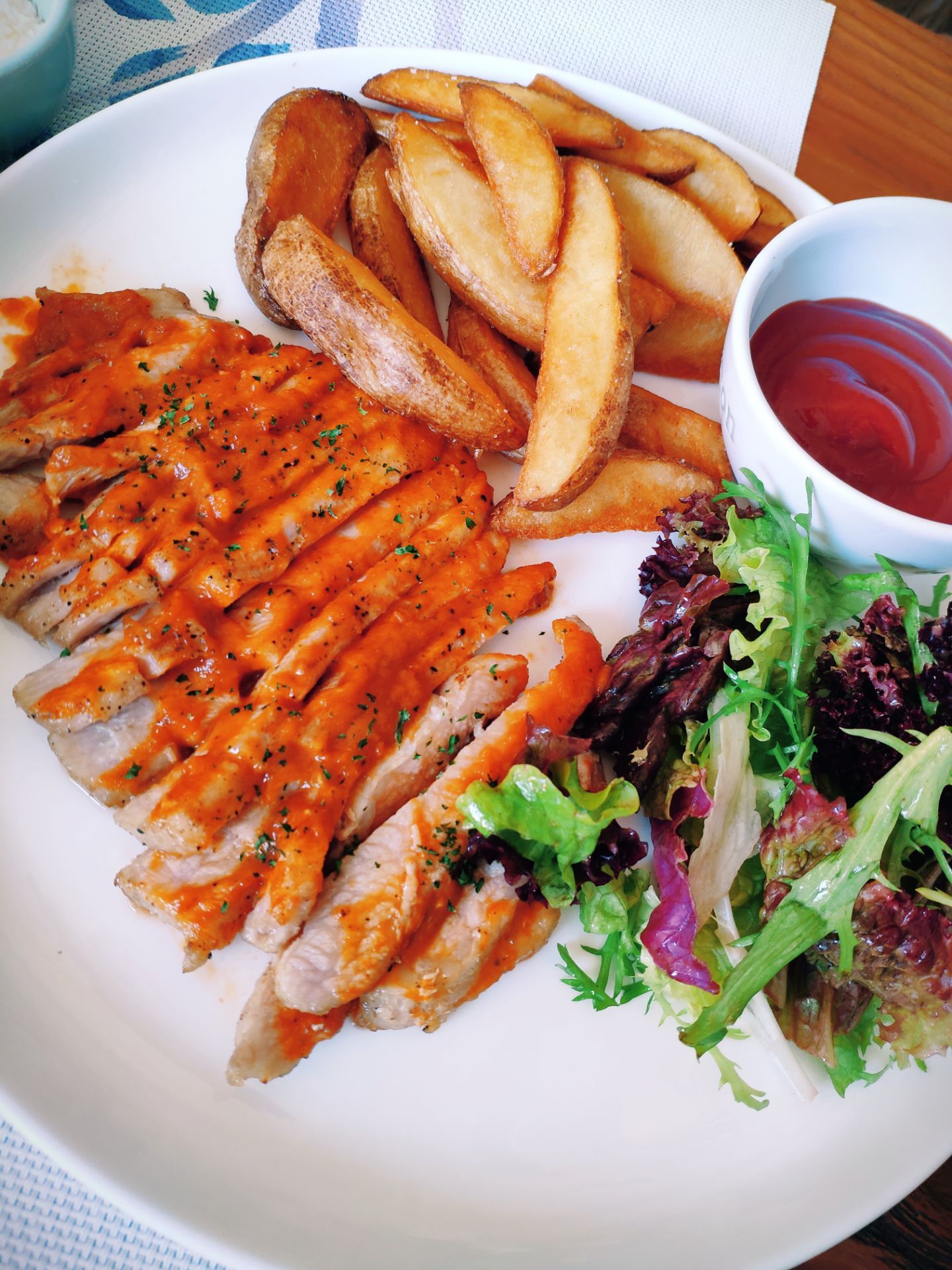香煎猪下颚配法式薯角 ¥78 猪下颚口感很好,软嫩无骨